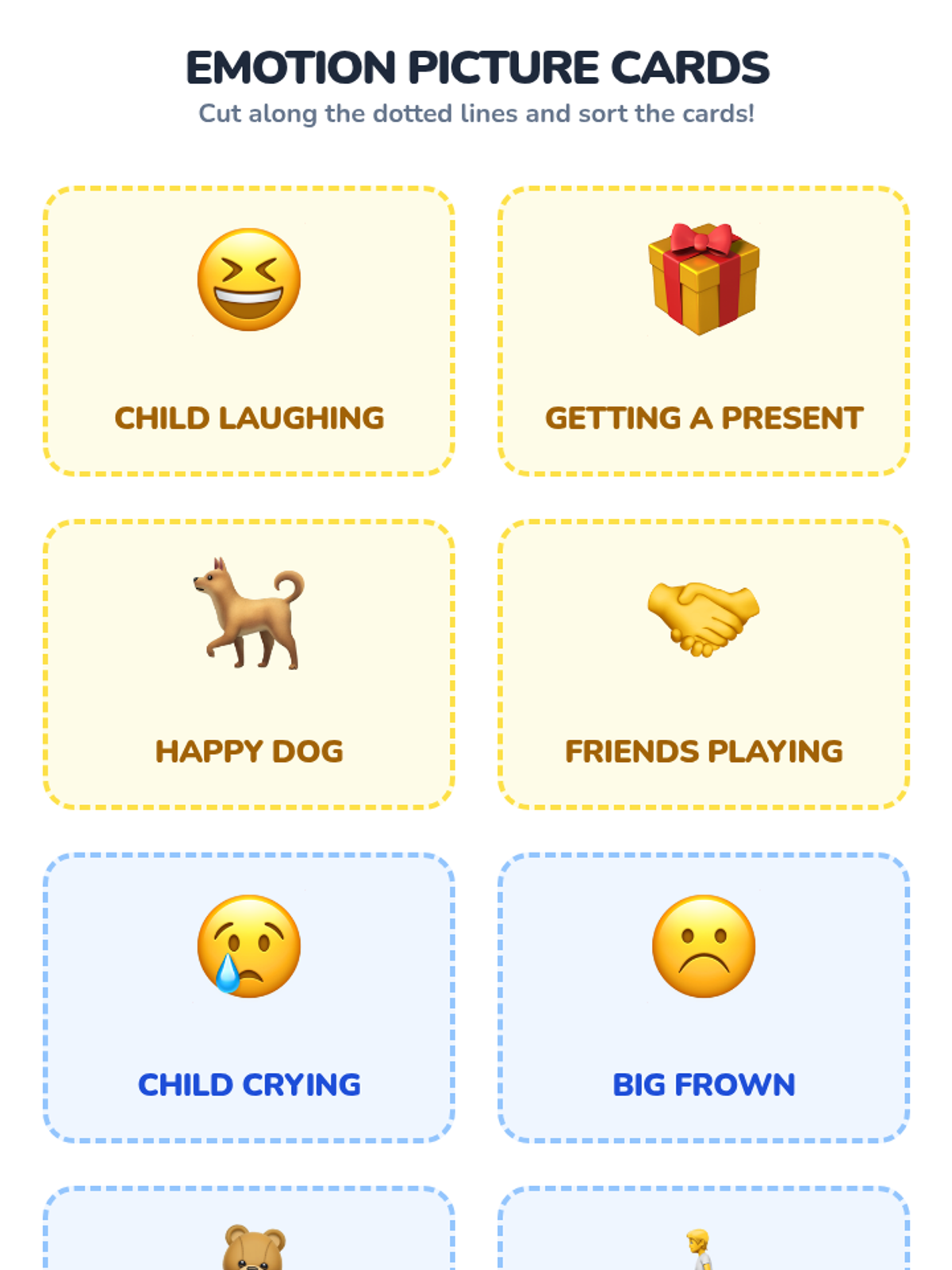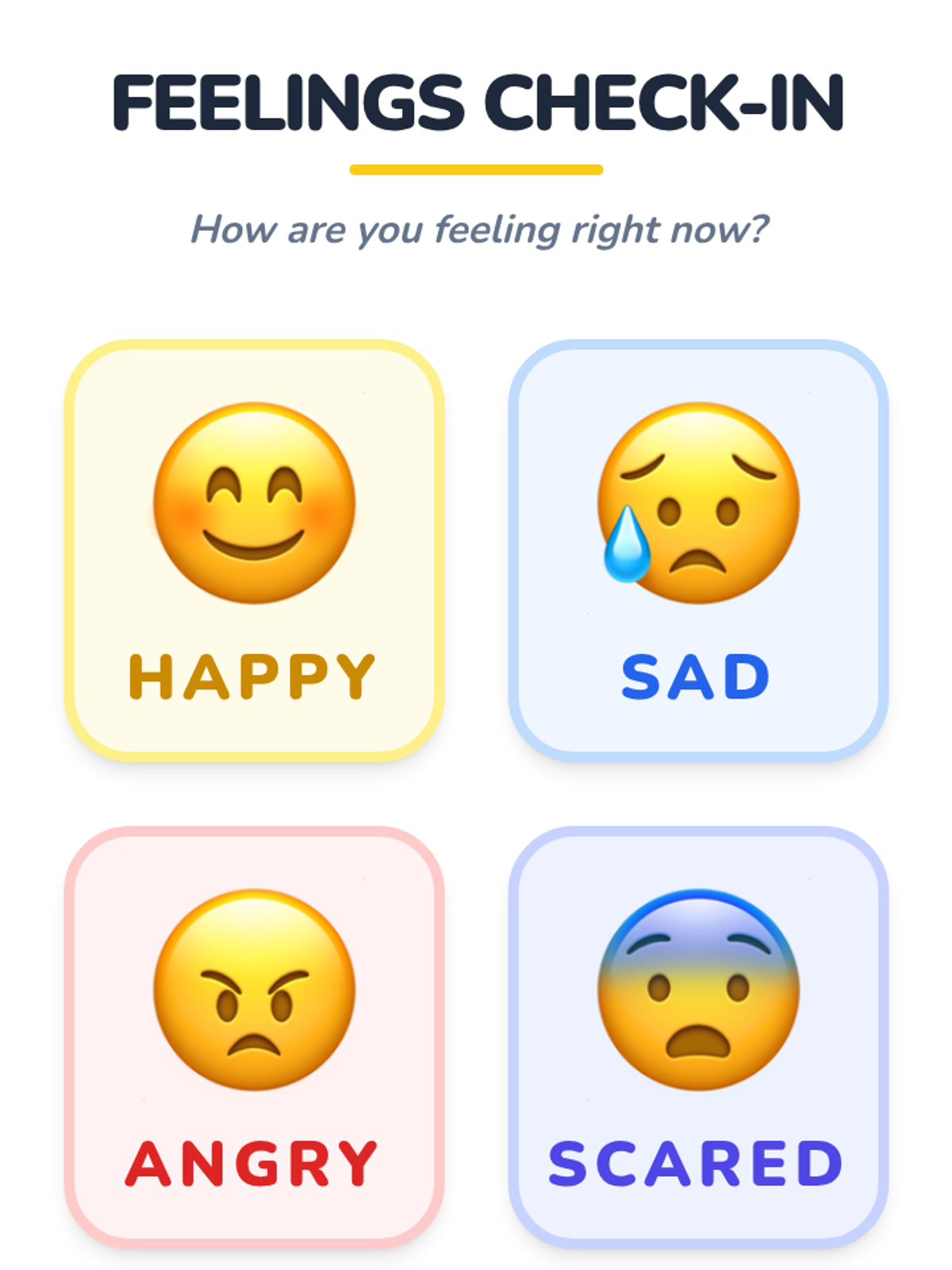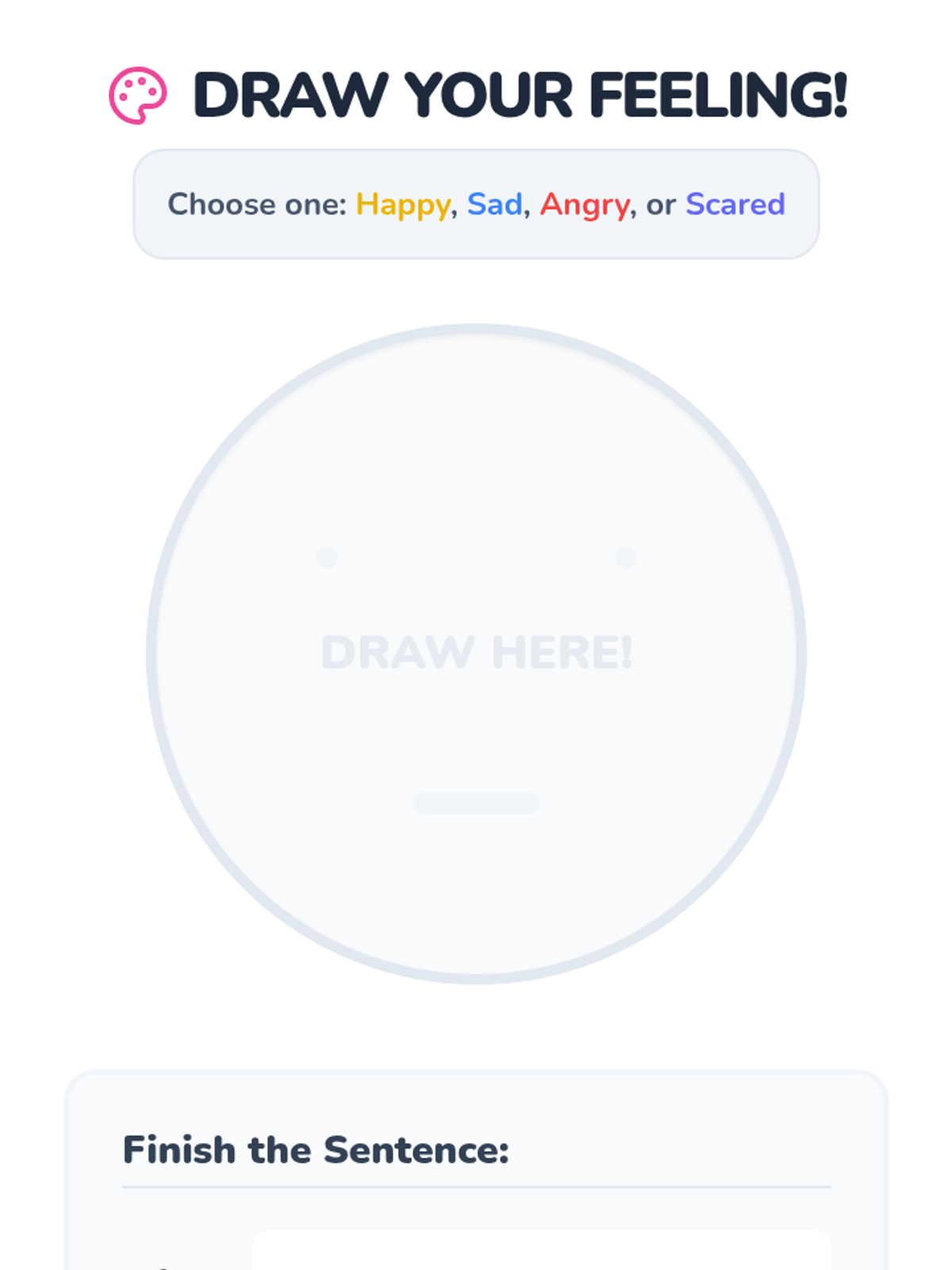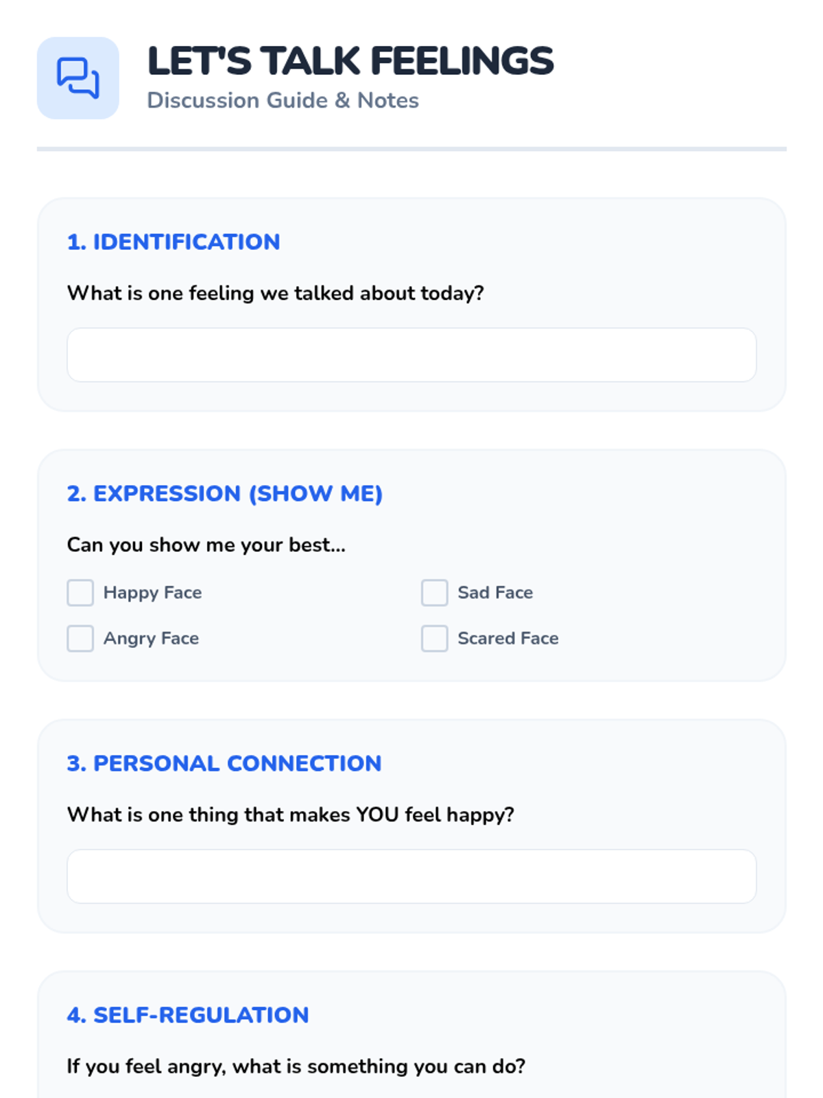 A 25-minute Tier 3 individual lesson for kindergarteners to identify and express four core emotions (happy, sad, angry, scared) through interactive activities and guided practice.