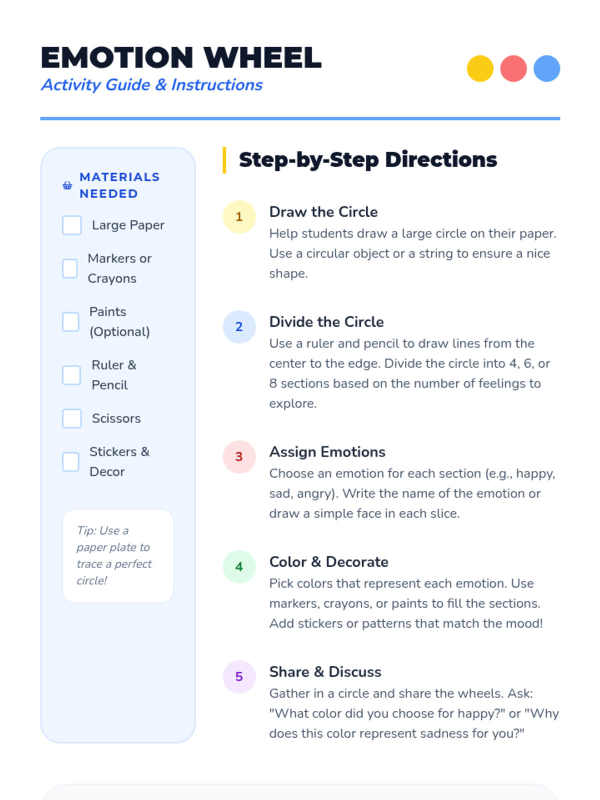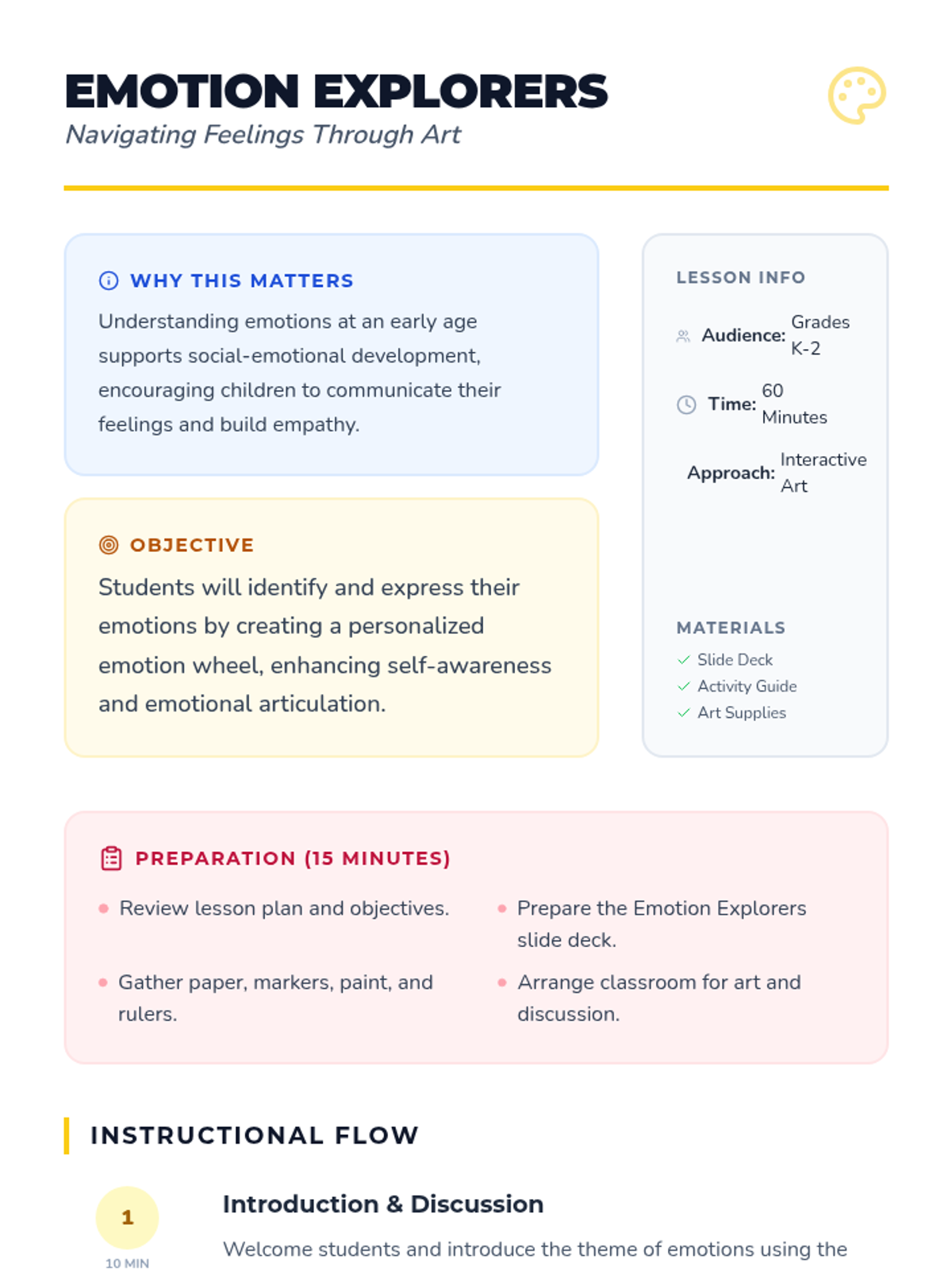 A creative K-2 lesson where students explore emotions through art by creating a personalized emotion wheel, fostering self-awareness and emotional expression.