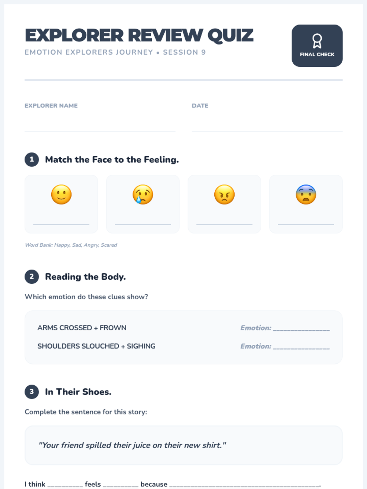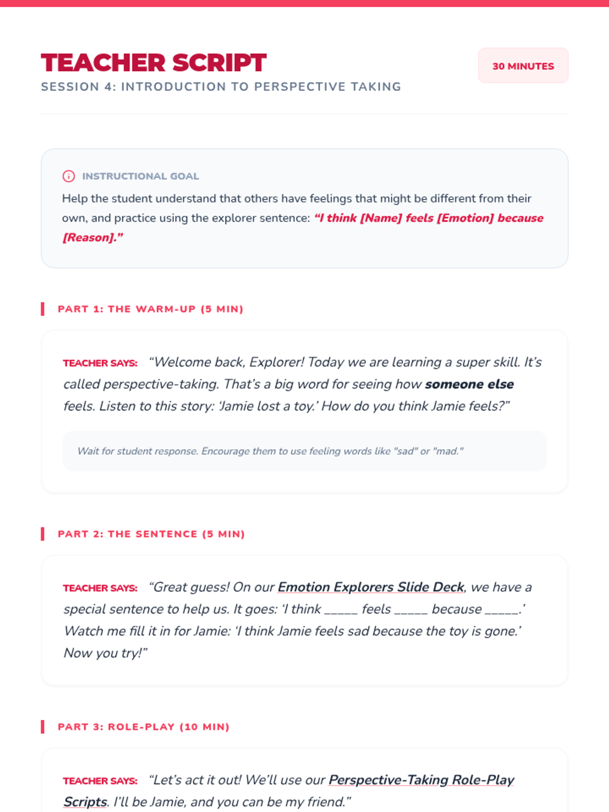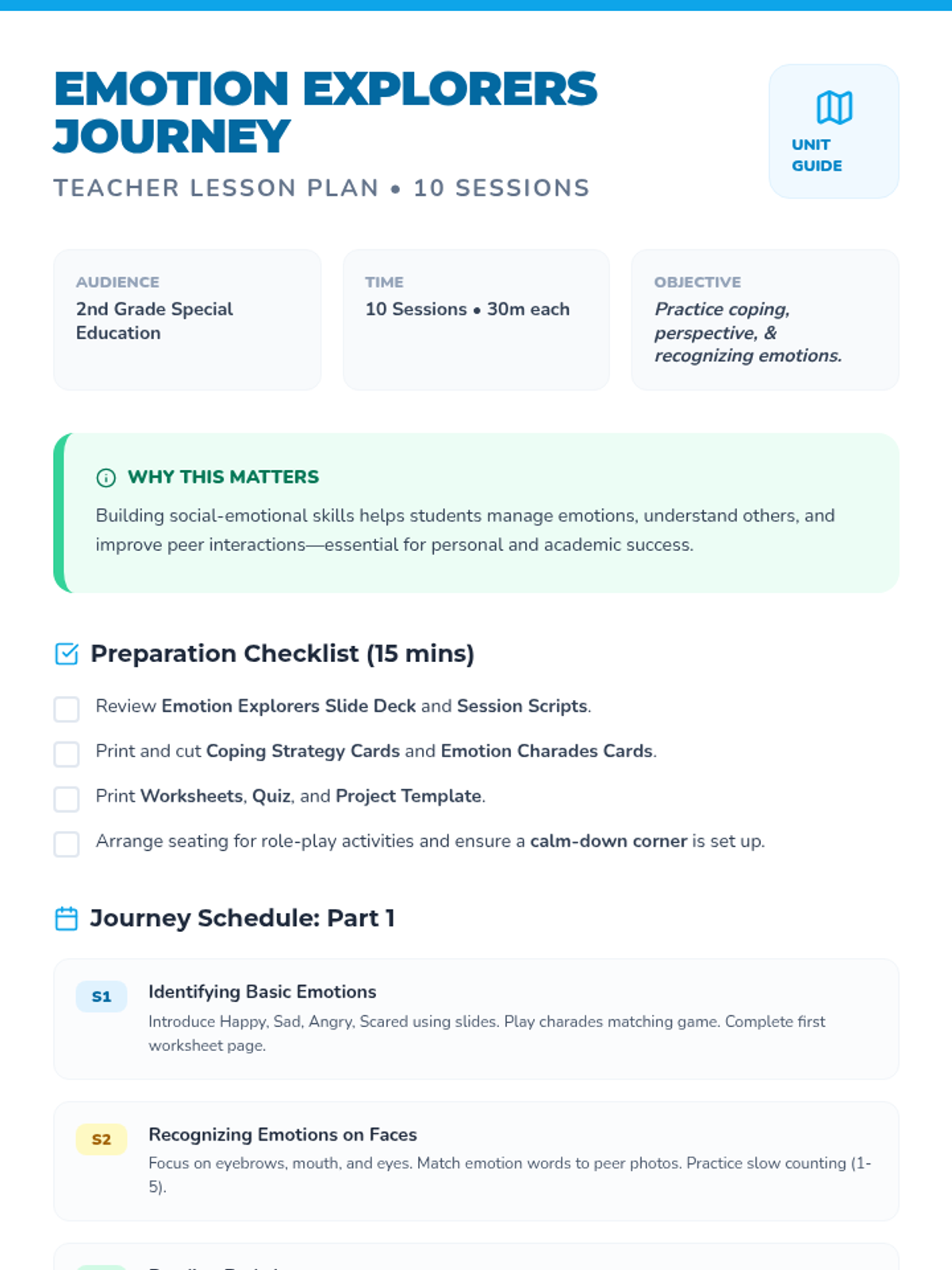 A 10-session social-emotional learning unit for 2nd-grade students to identify emotions, practice perspective-taking, and develop coping strategies.