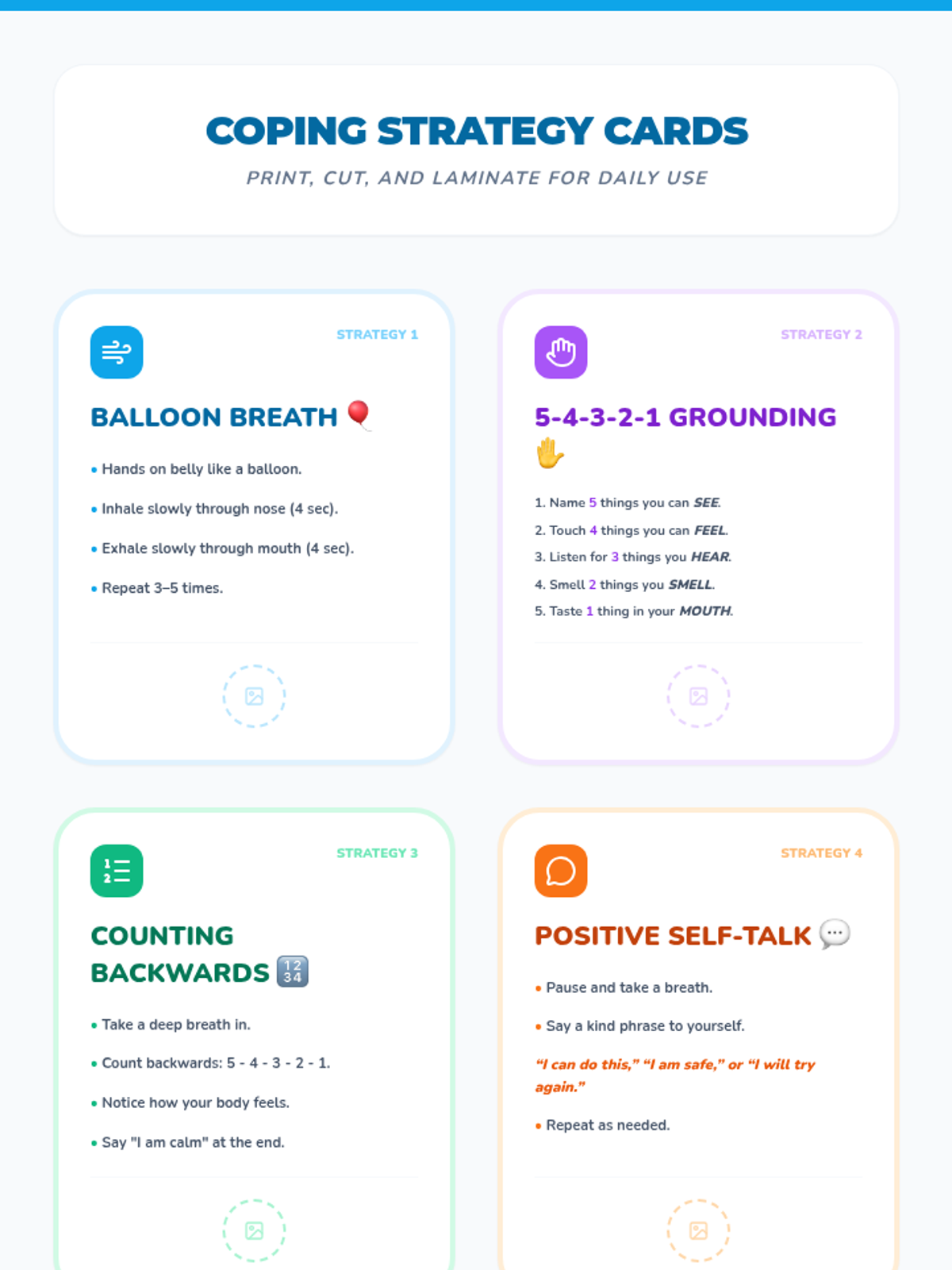 A lesson designed to help students distinguish between Small and Big Problems and choose safe regulation strategies instead of physical reactions. It includes a social story, practice worksheet, and strategy reference guide.