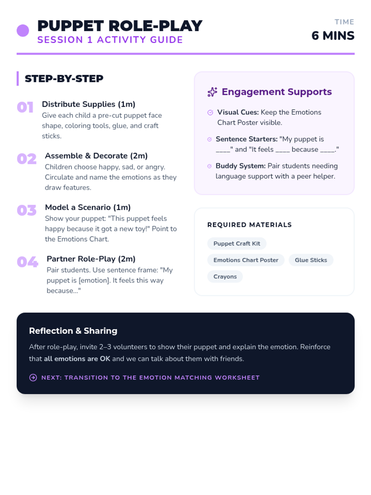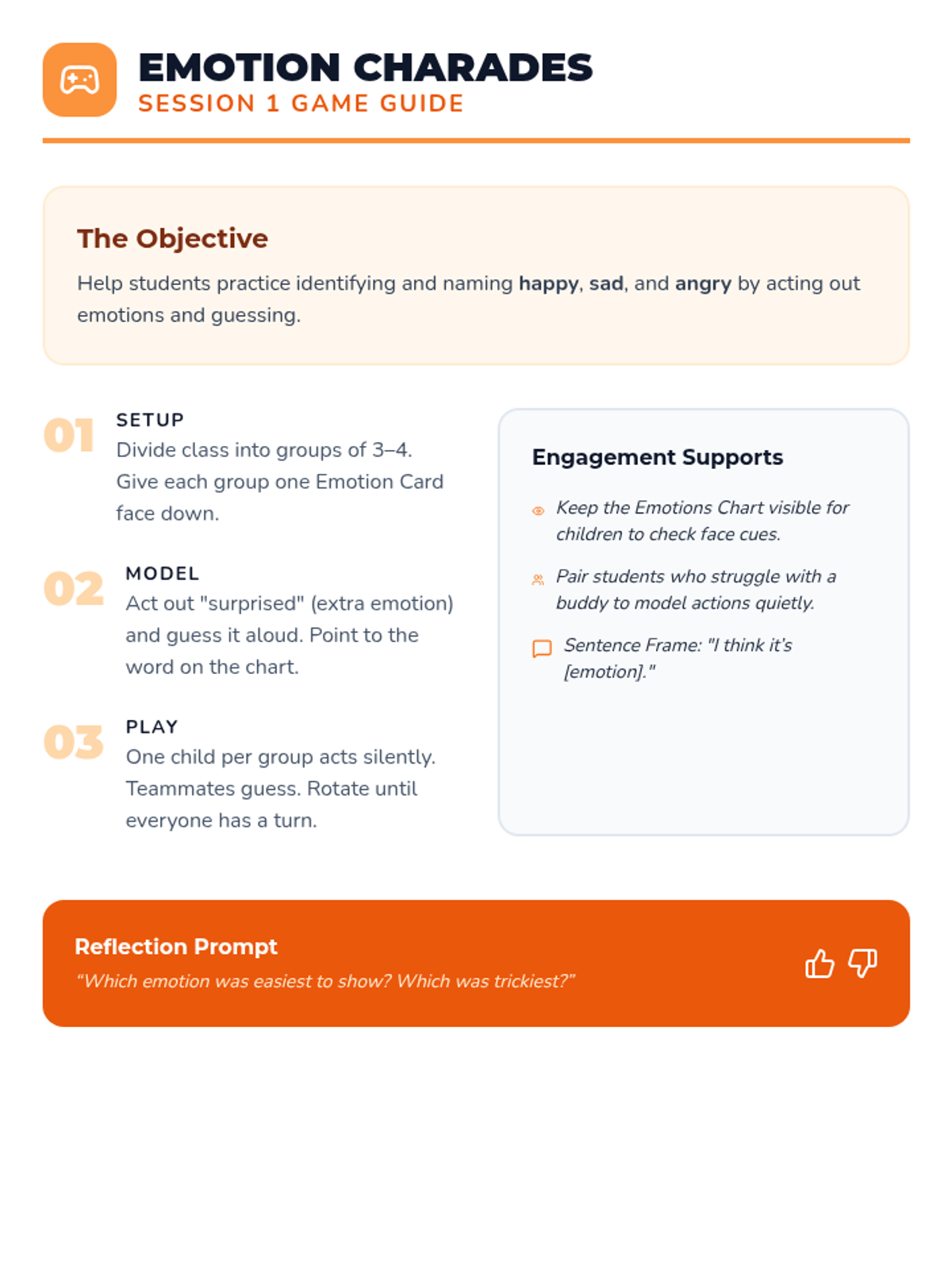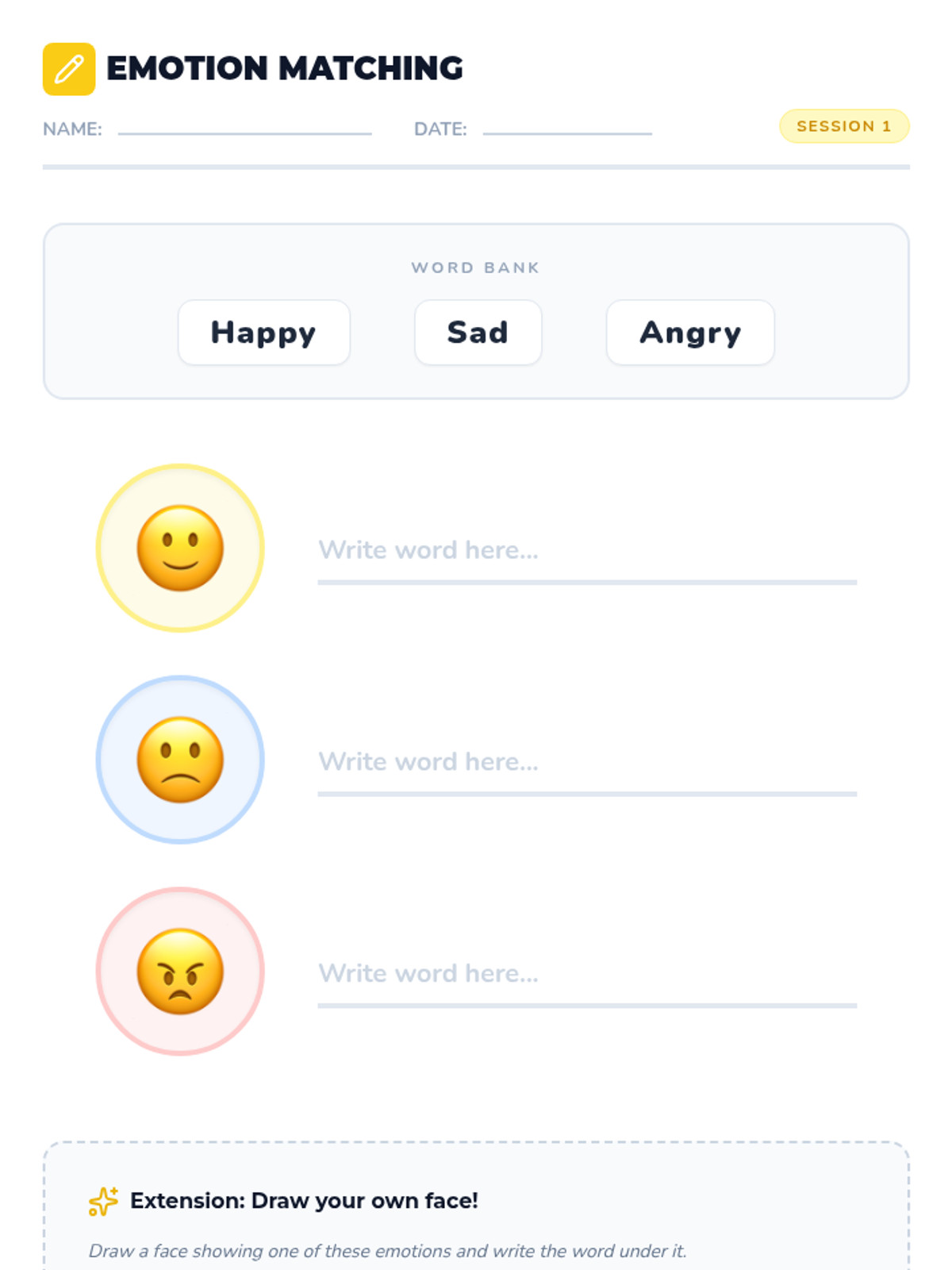 Introduce preschoolers to happy, sad, and angry through story-based recognition and creative role-play.