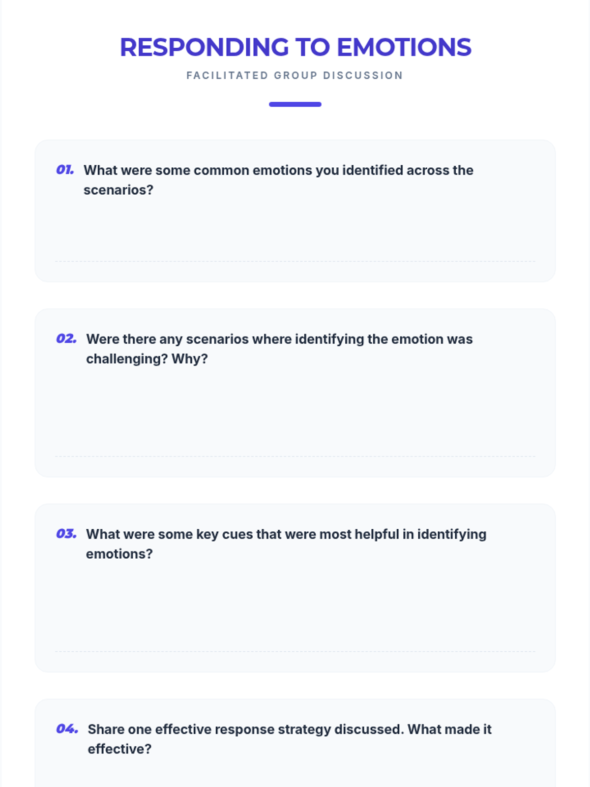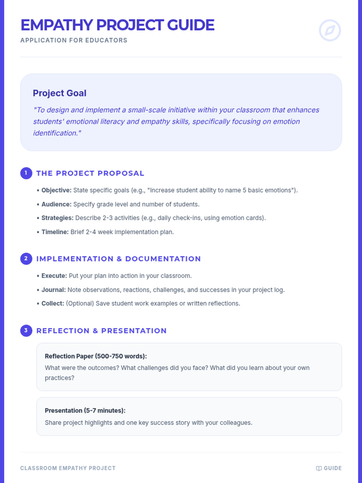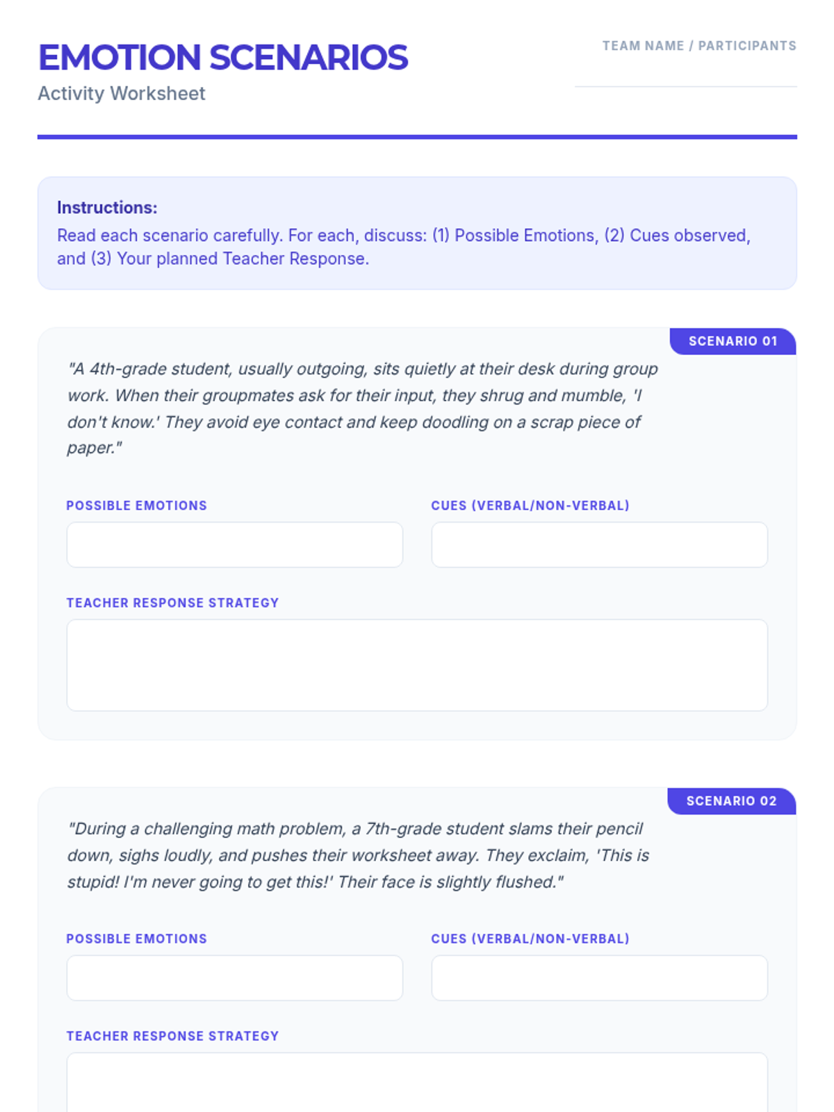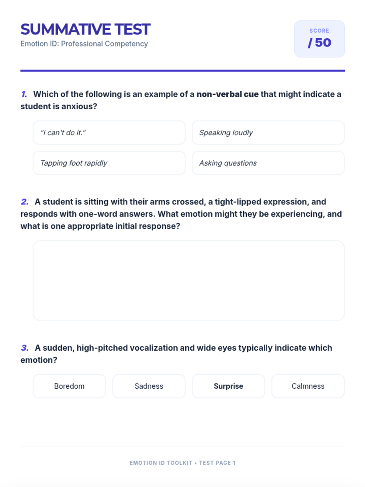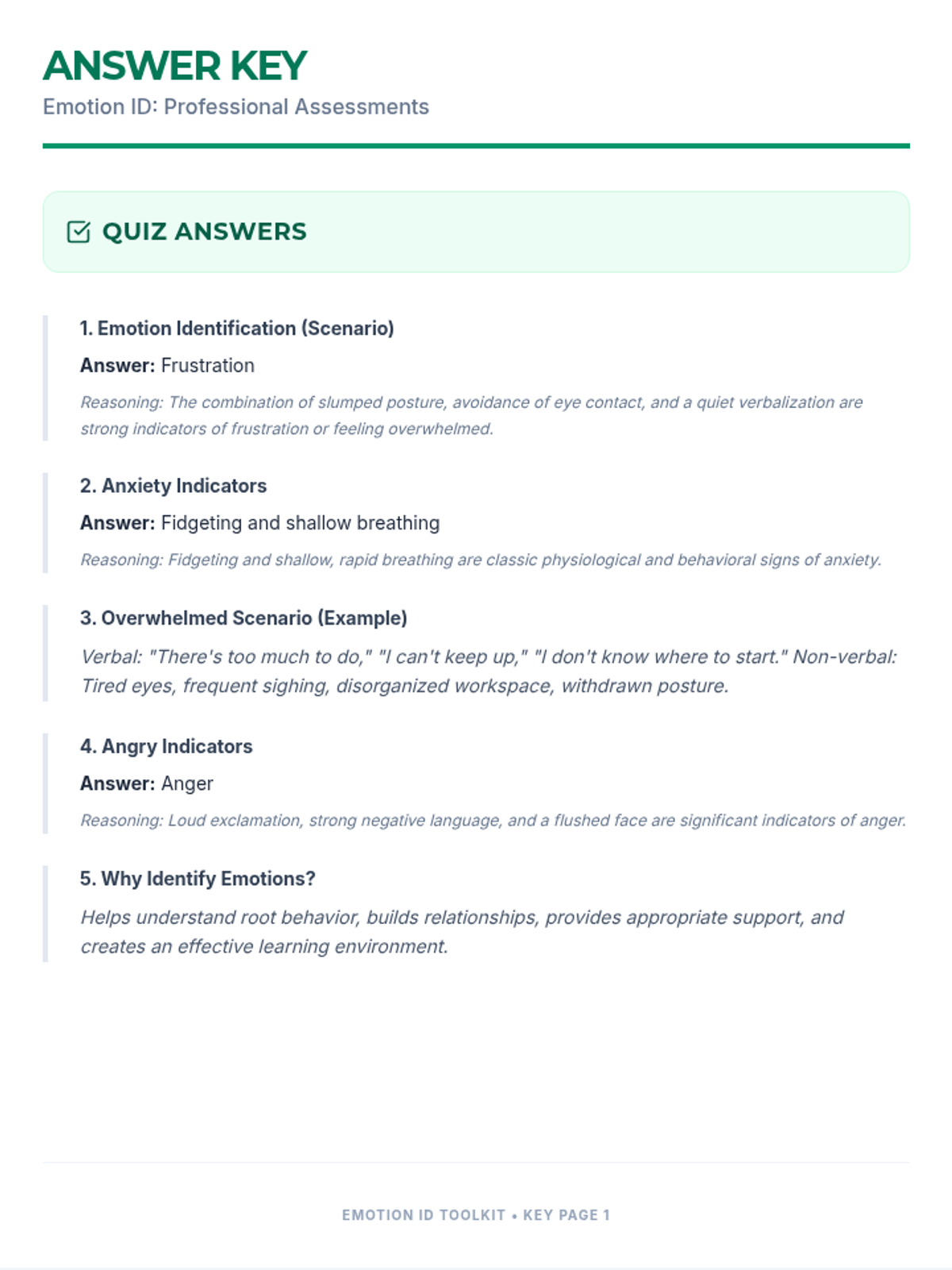 This lesson equips teachers with practical strategies and resources to effectively identify emotions in students, fostering a more empathetic and supportive classroom environment. Designed for small groups, this 1-hour session covers verbal and non-verbal cues, practical response strategies, and long-term application projects.