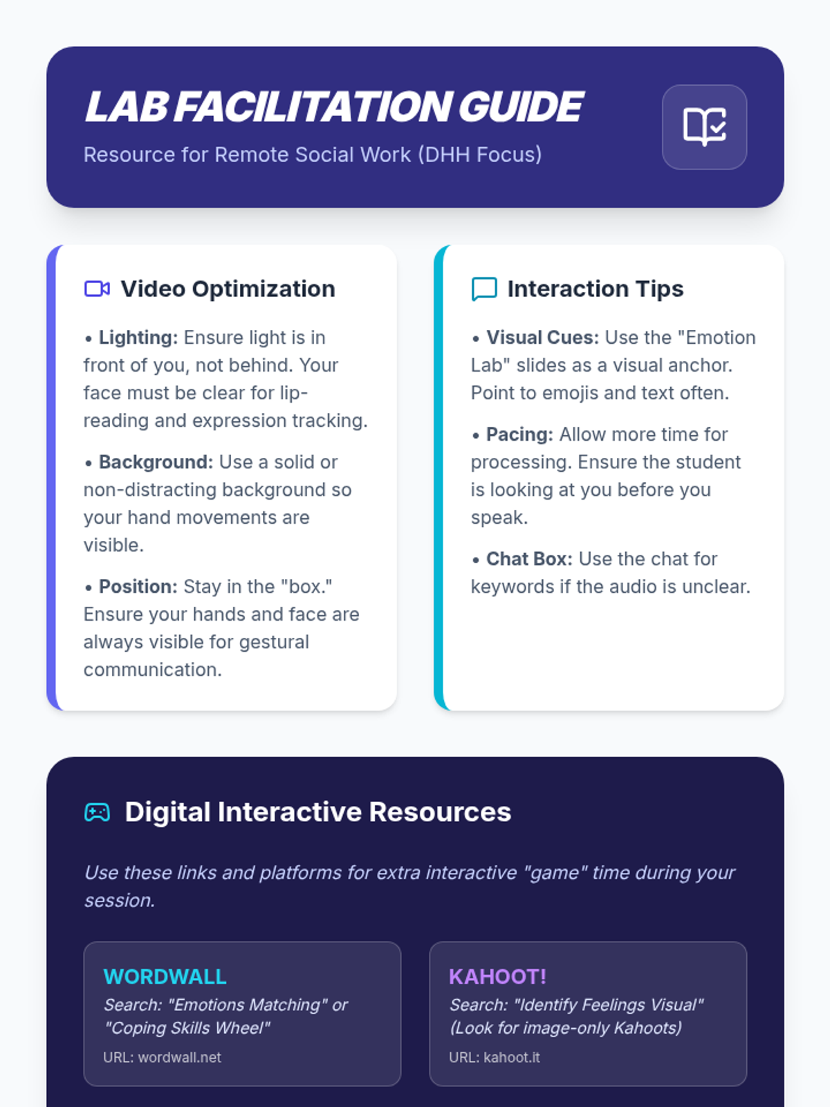 A visual-heavy remote lesson for middle school students to decode emotions and build a toolkit of coping strategies. Designed for DHH students with a focus on visual facial cues and body language.