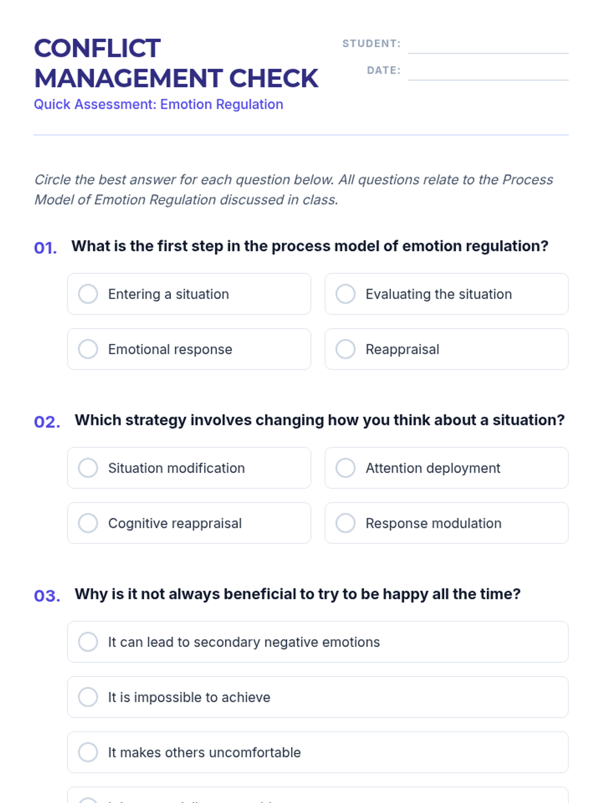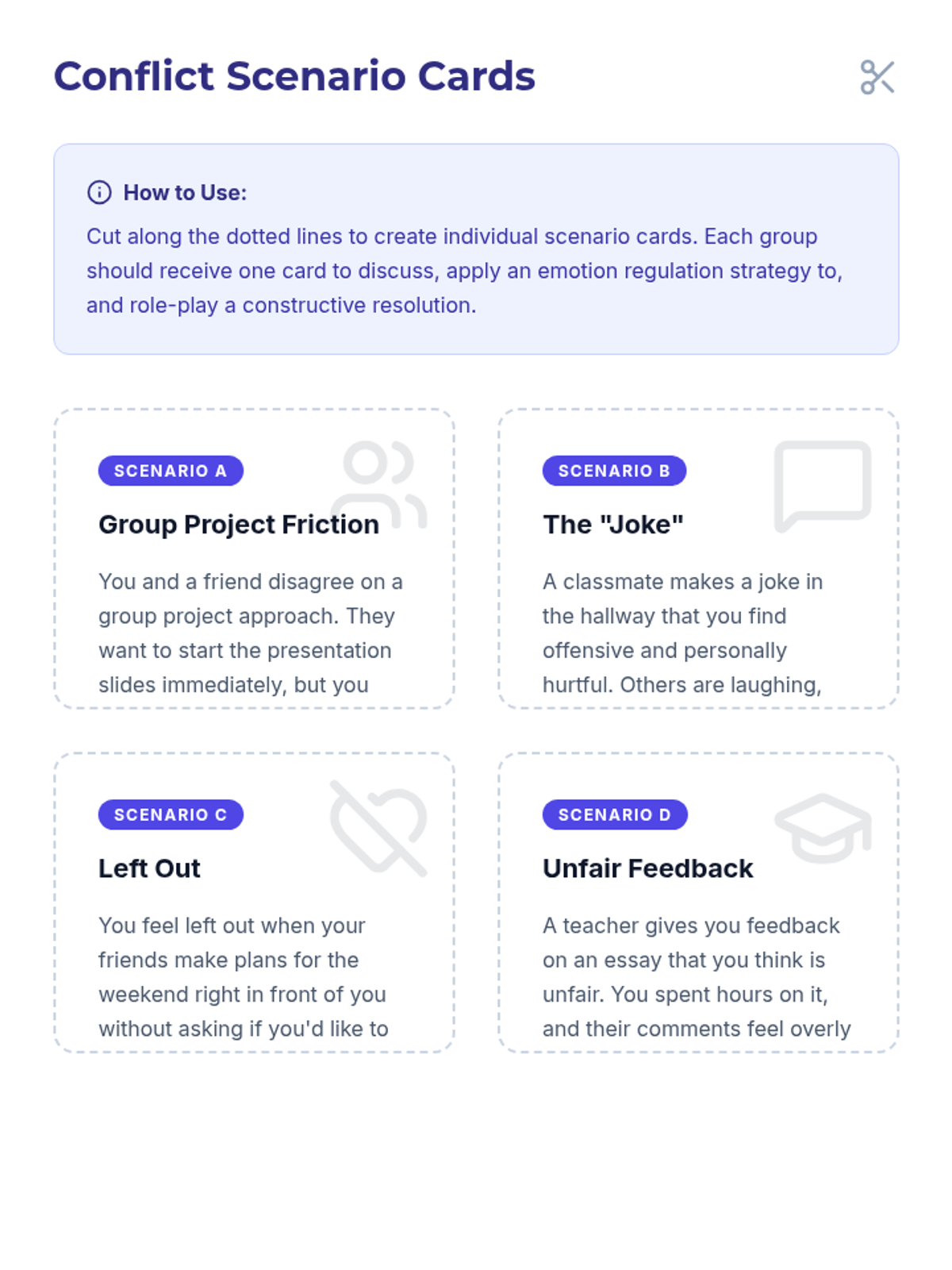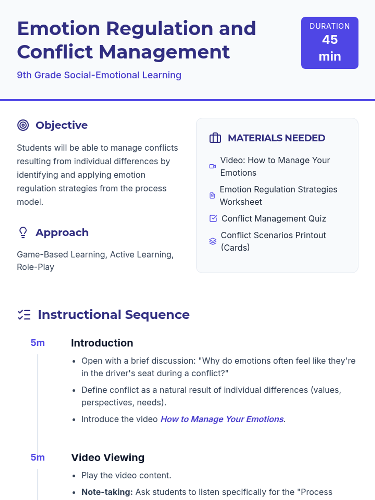 This lesson equips 9th-grade students with strategies to manage conflicts arising from individual differences by understanding and regulating their emotions using the process model.