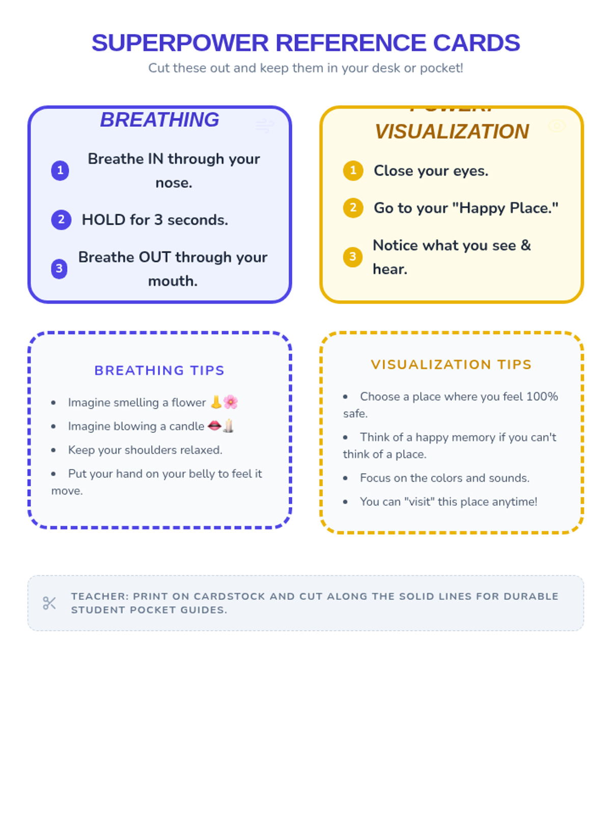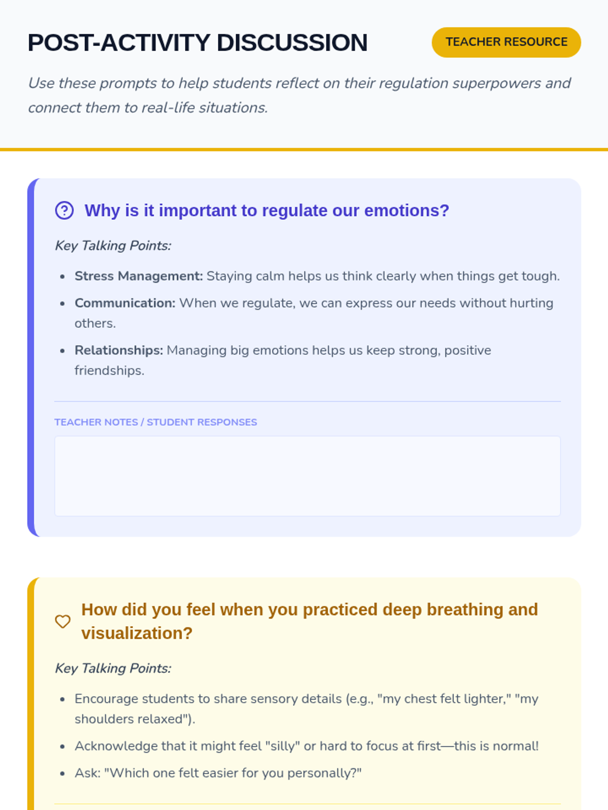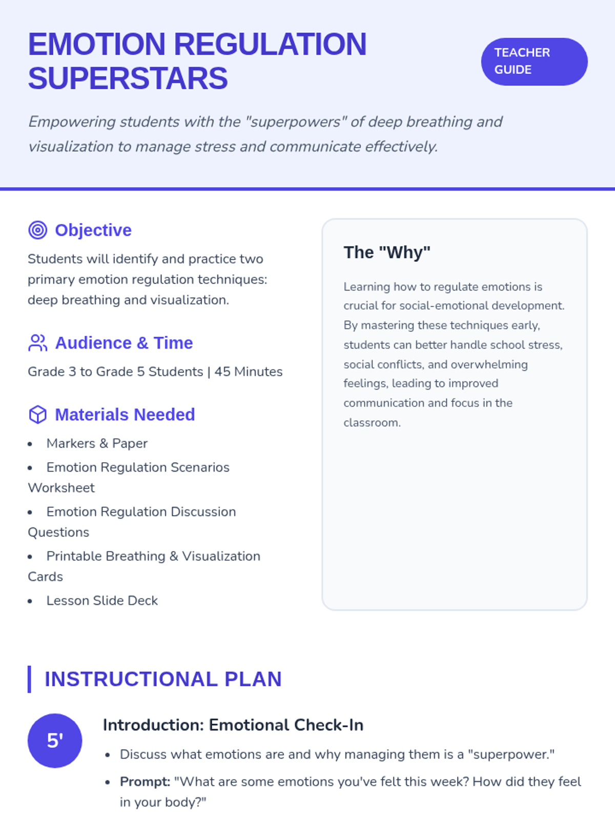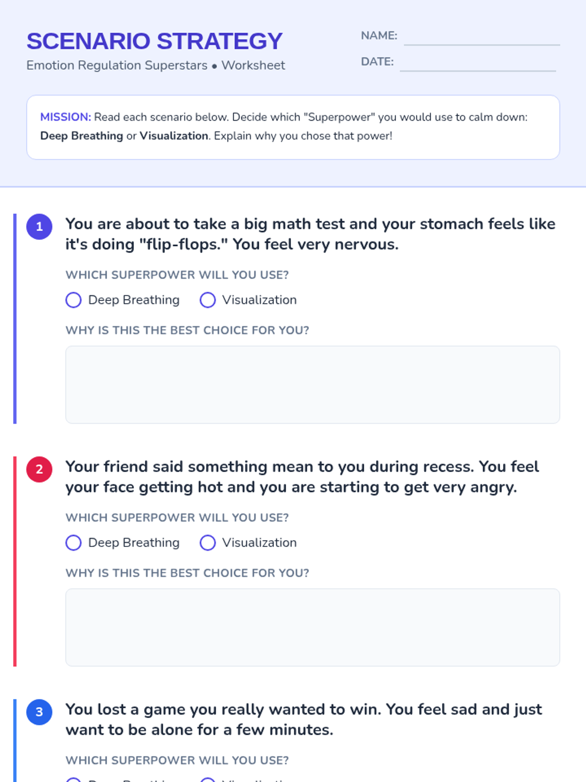 Students will learn and practice essential emotion regulation techniques, including deep breathing and visualization, through engaging scenarios and interactive activities designed for grades 3-5.