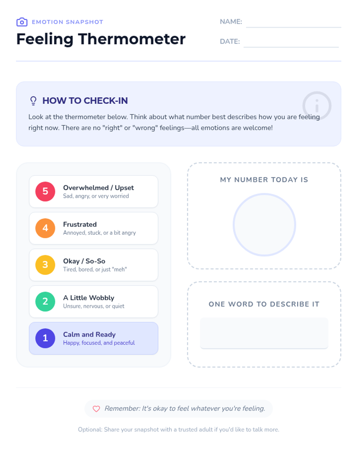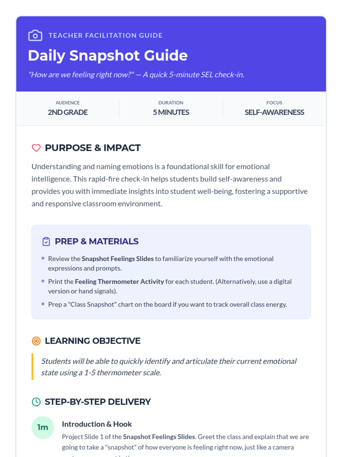 A rapid-fire check-in activity for 2nd graders to identify and articulate their emotions using a thermometer scale, promoting self-awareness and classroom well-being.