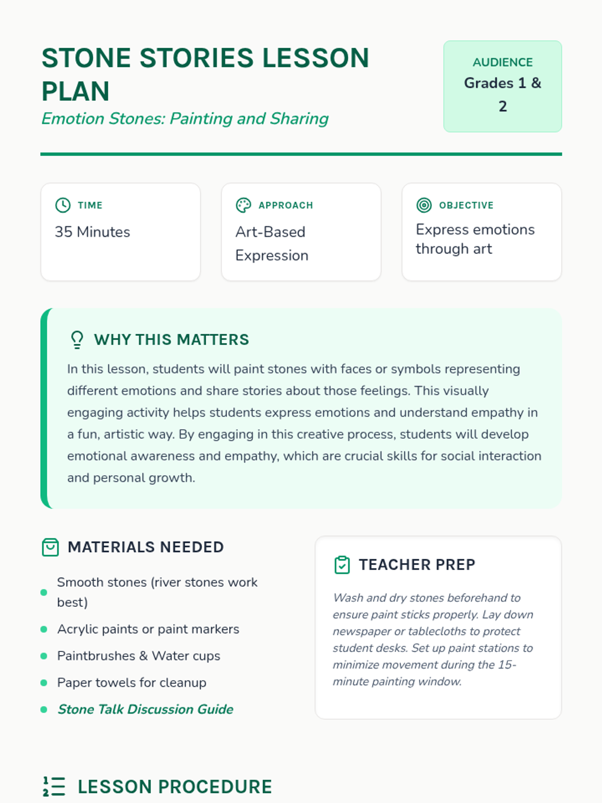 A creative art-based social-emotional learning lesson where students paint stones to represent emotions and share personal stories to build empathy.