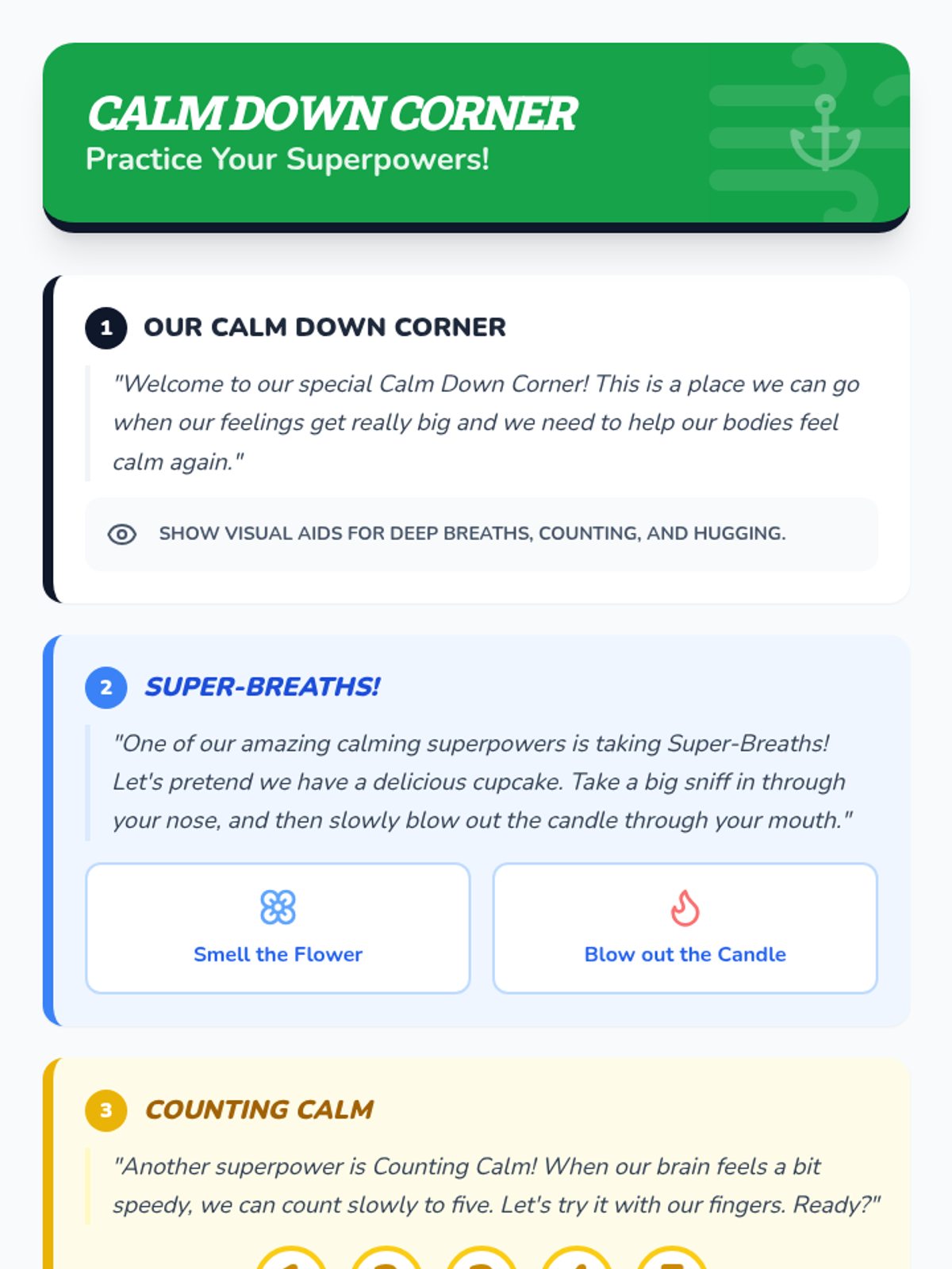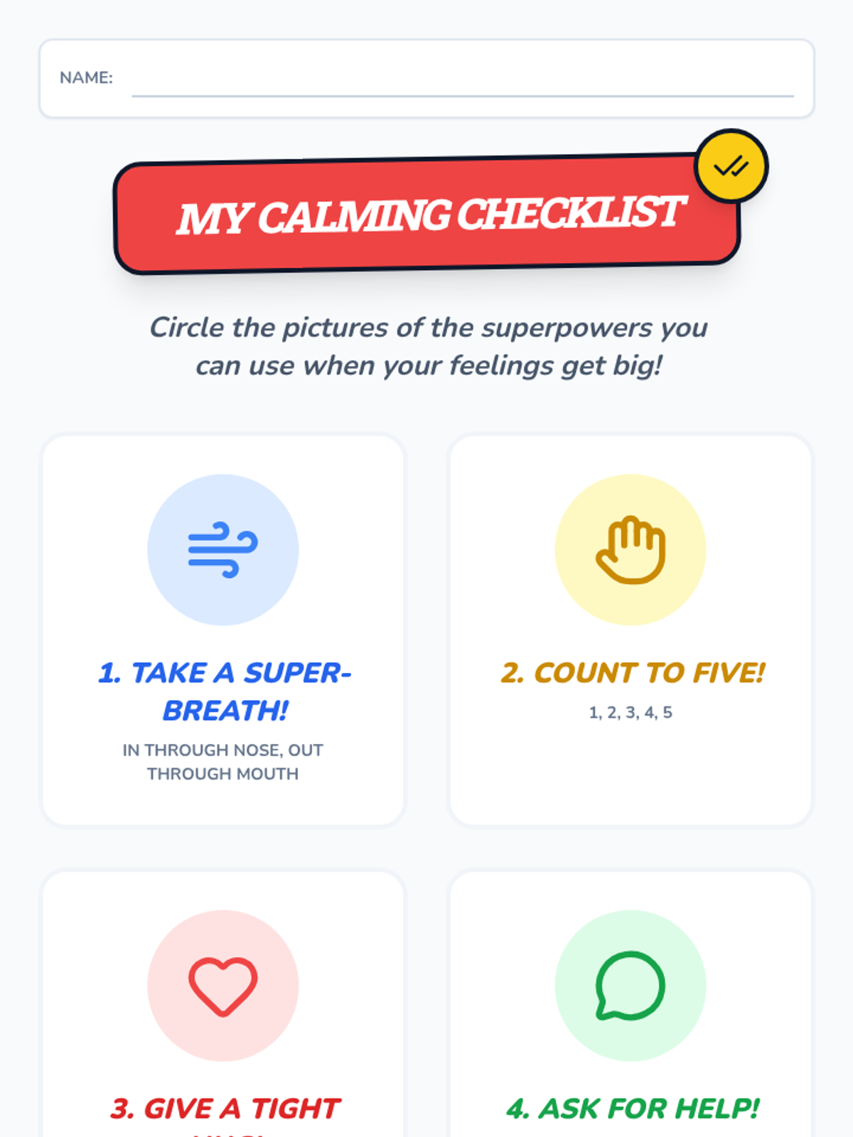 Students learn the 1+3+4 breathing technique to manage anger and frustration.