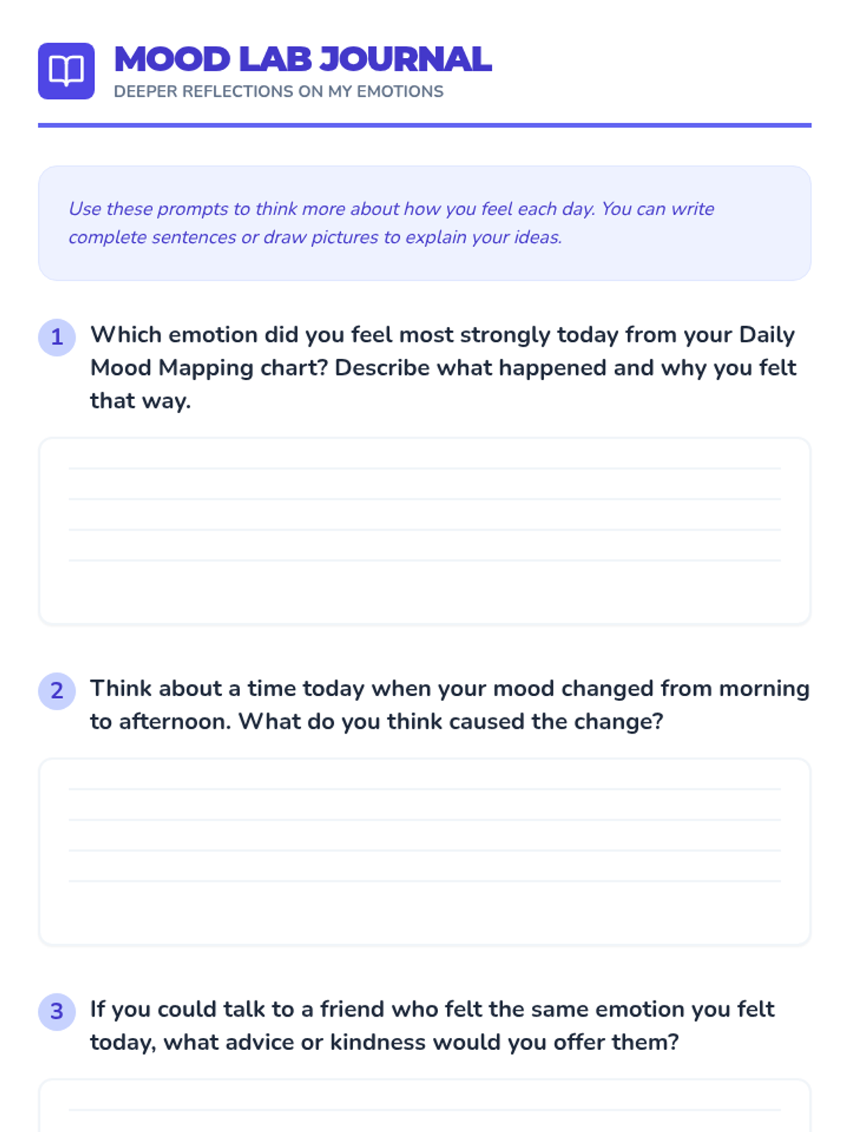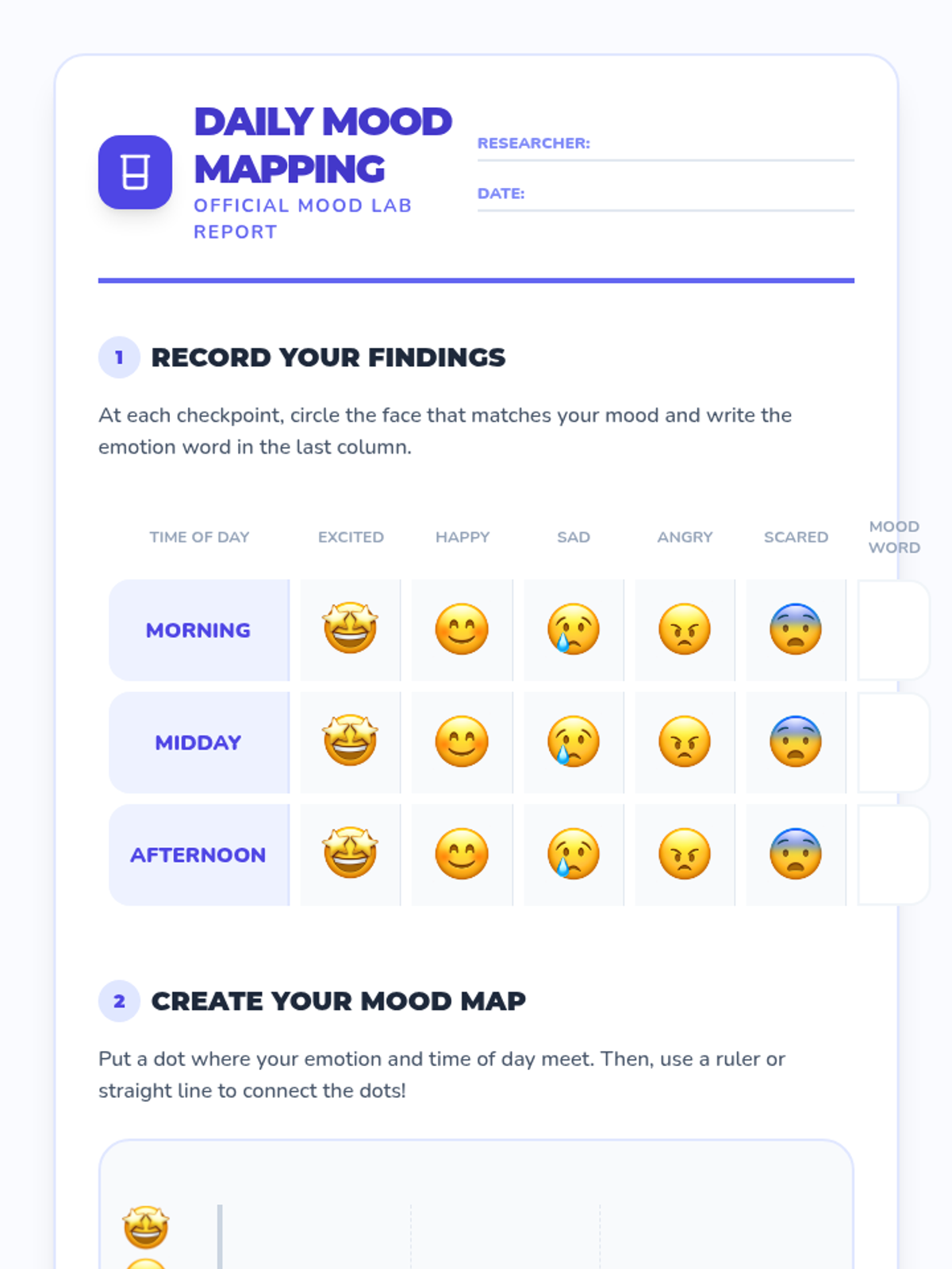A fun, 30-minute classroom activity for 3rd graders to identify and chart their emotions throughout the day. This lesson promotes self-awareness and emotional vocabulary through interactive mood mapping.