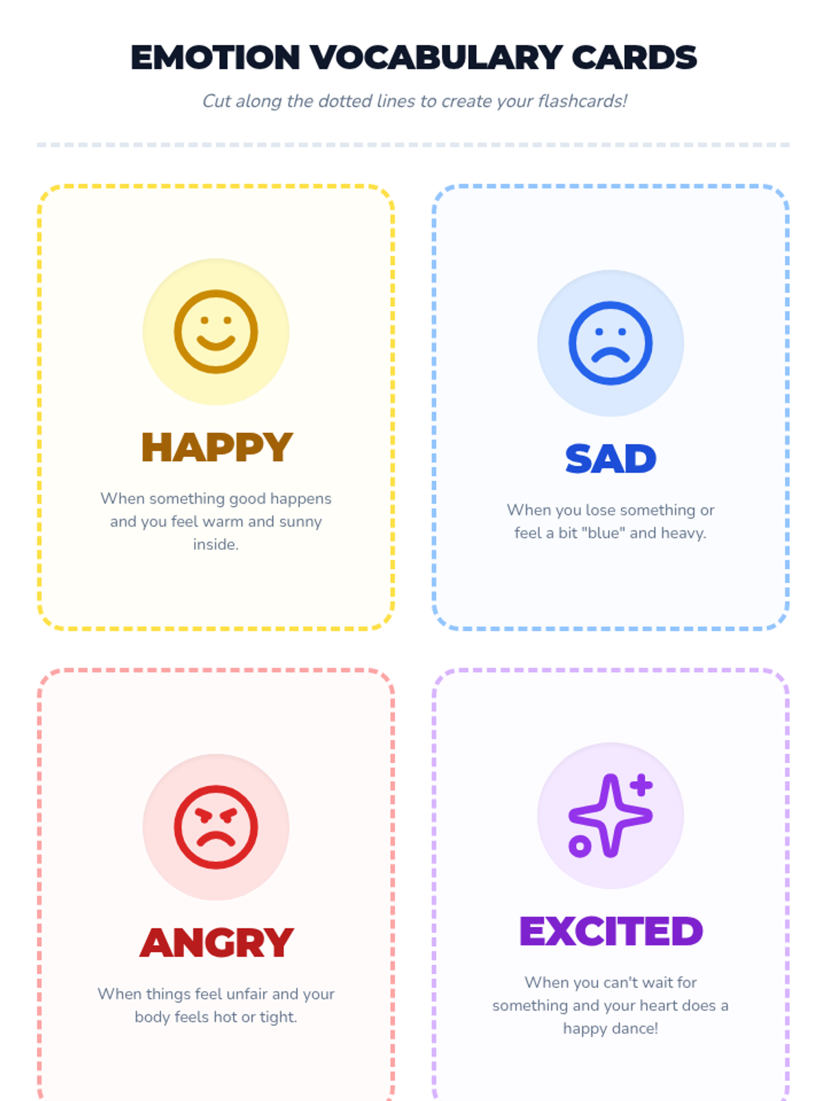 Students become Emotion Detectives to identify and name core emotions by looking for facial and body clues. This K-3 lesson focuses on happy, sad, angry, scared, surprised, and disgusted.