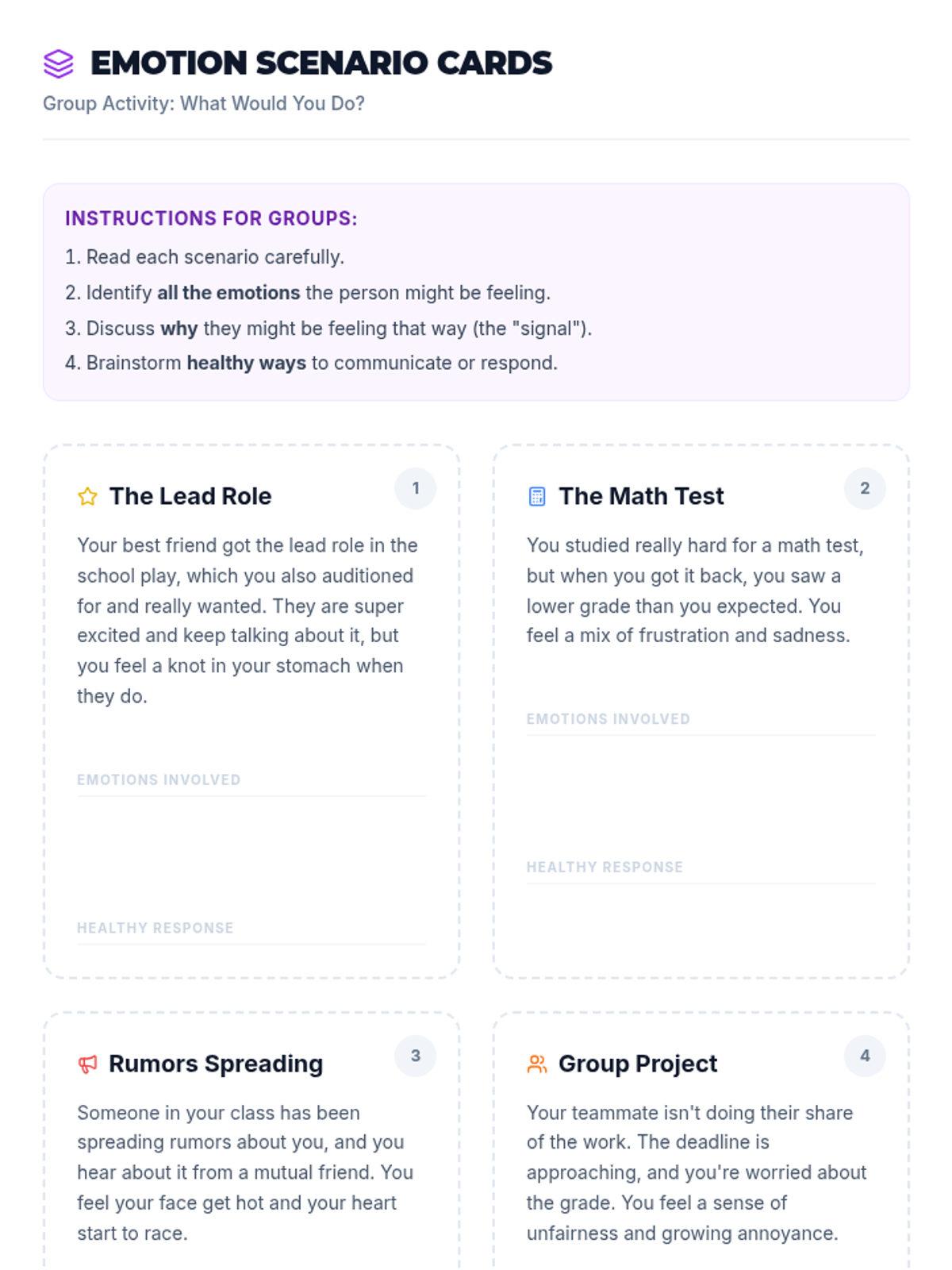 Focuses on healthy conflict resolution. Students learn to use 'I' statements and de-escalation techniques to handle disagreements without damaging friendships.