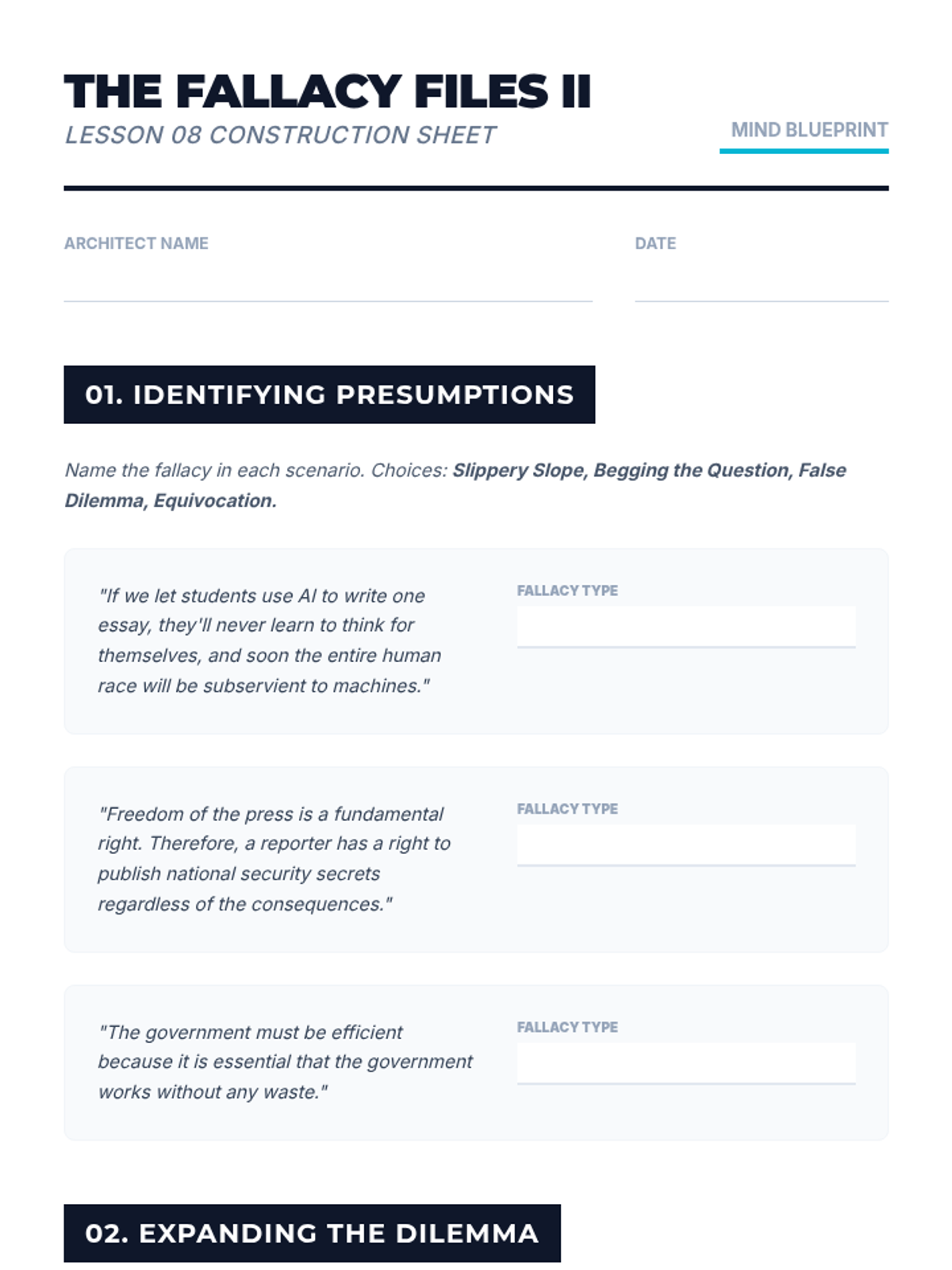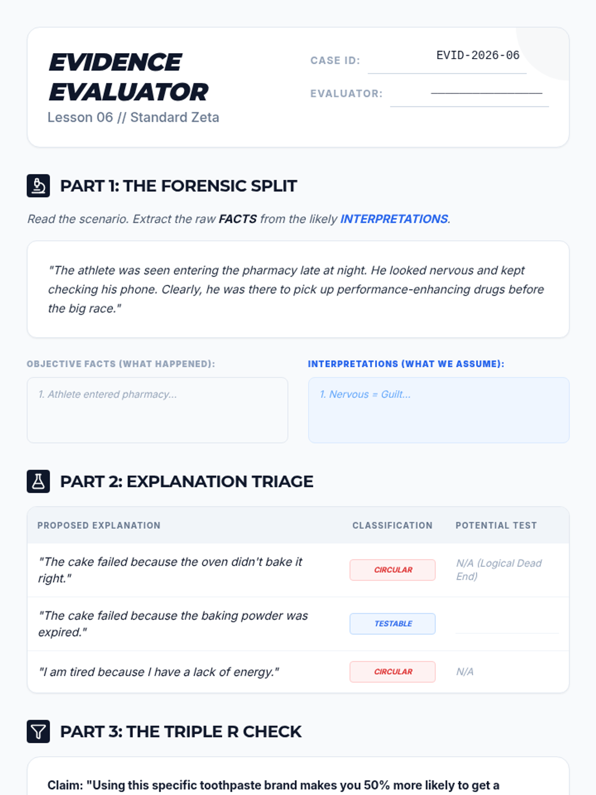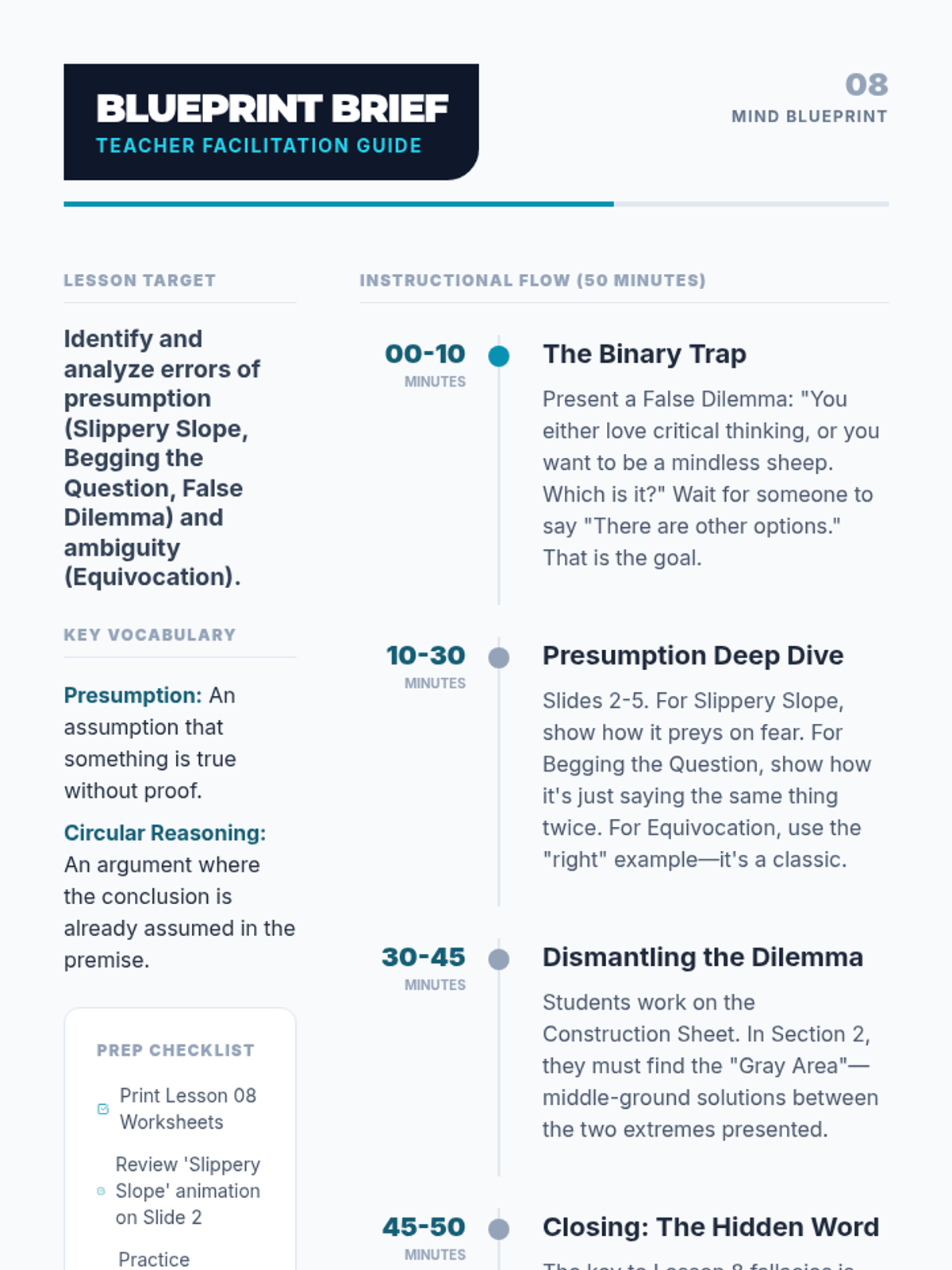 A comprehensive review of the course concepts applied to complex logic problems. Includes the course Posttest.