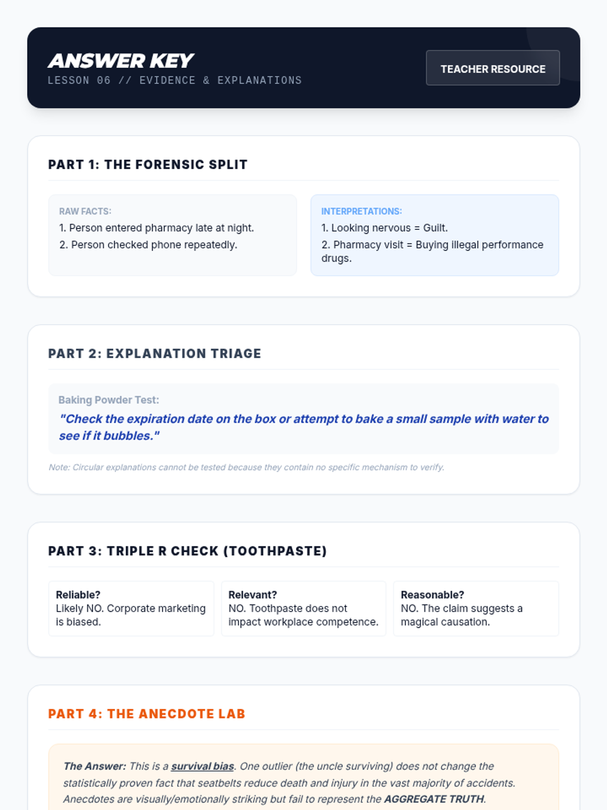 Developing the skills to assess the validity and reasonableness of evidence, and ensuring explanations are relevant and testable.