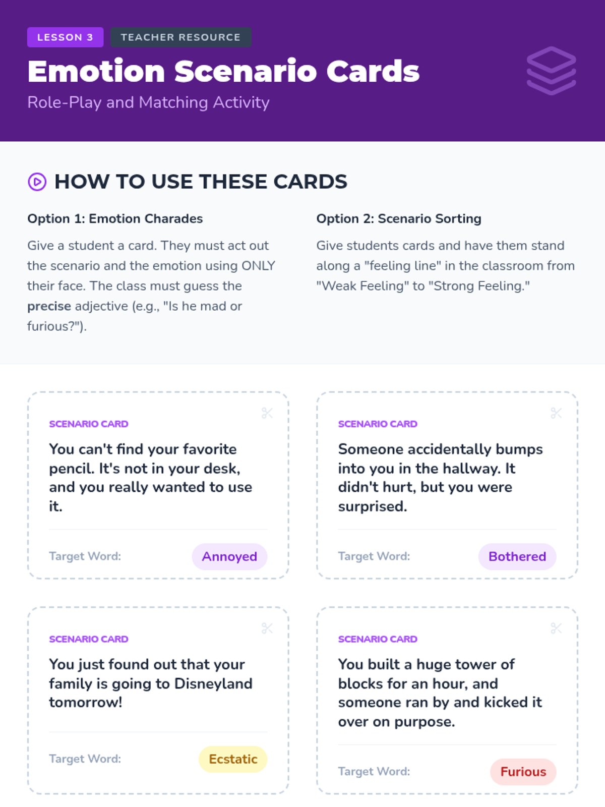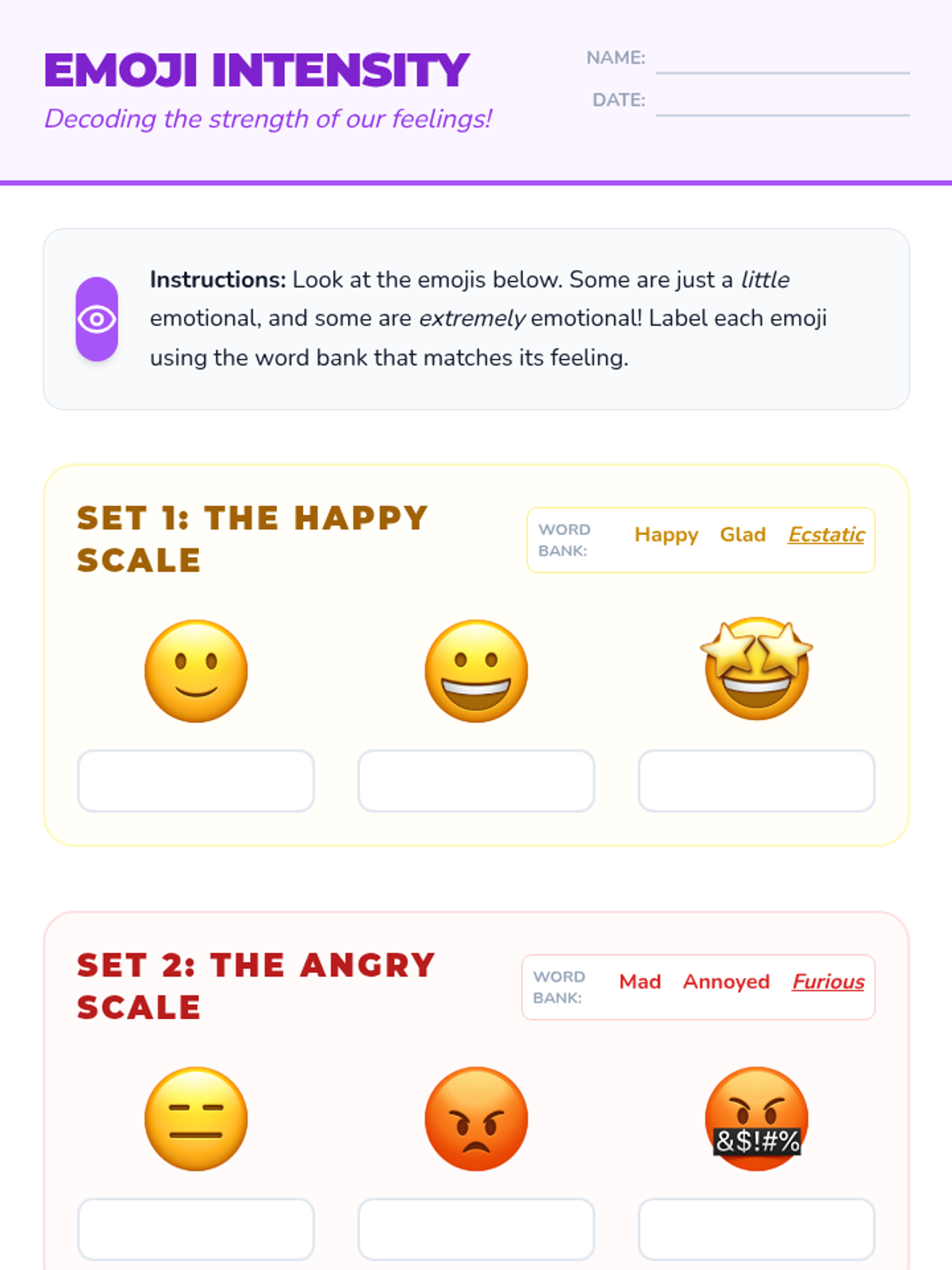 Differentiating between emotional adjectives like 'sad' and 'devastated' using facial expressions and situational context.