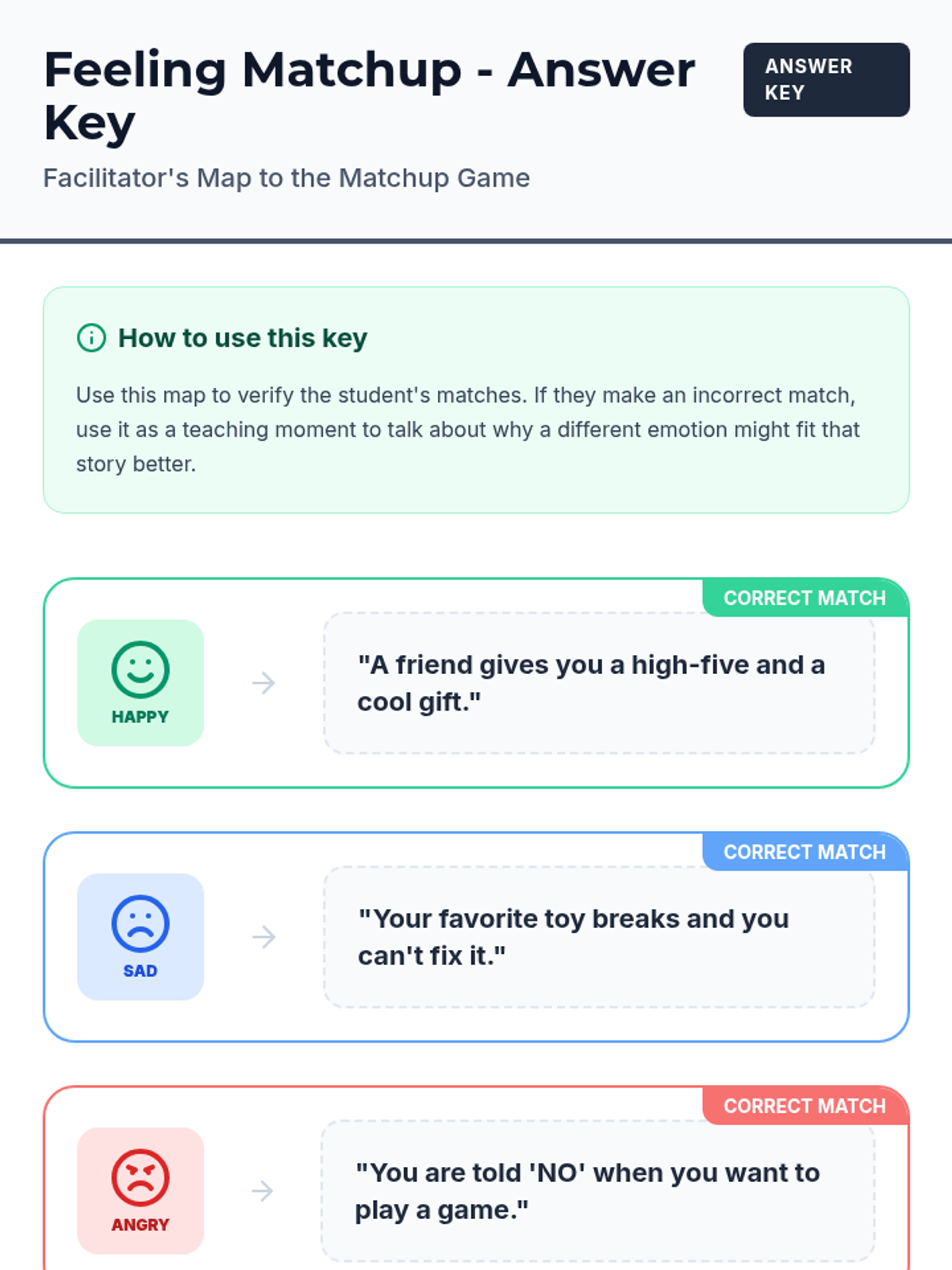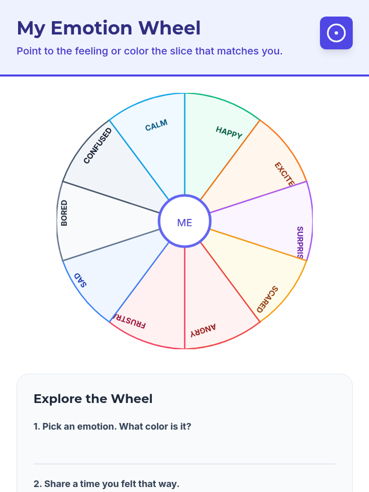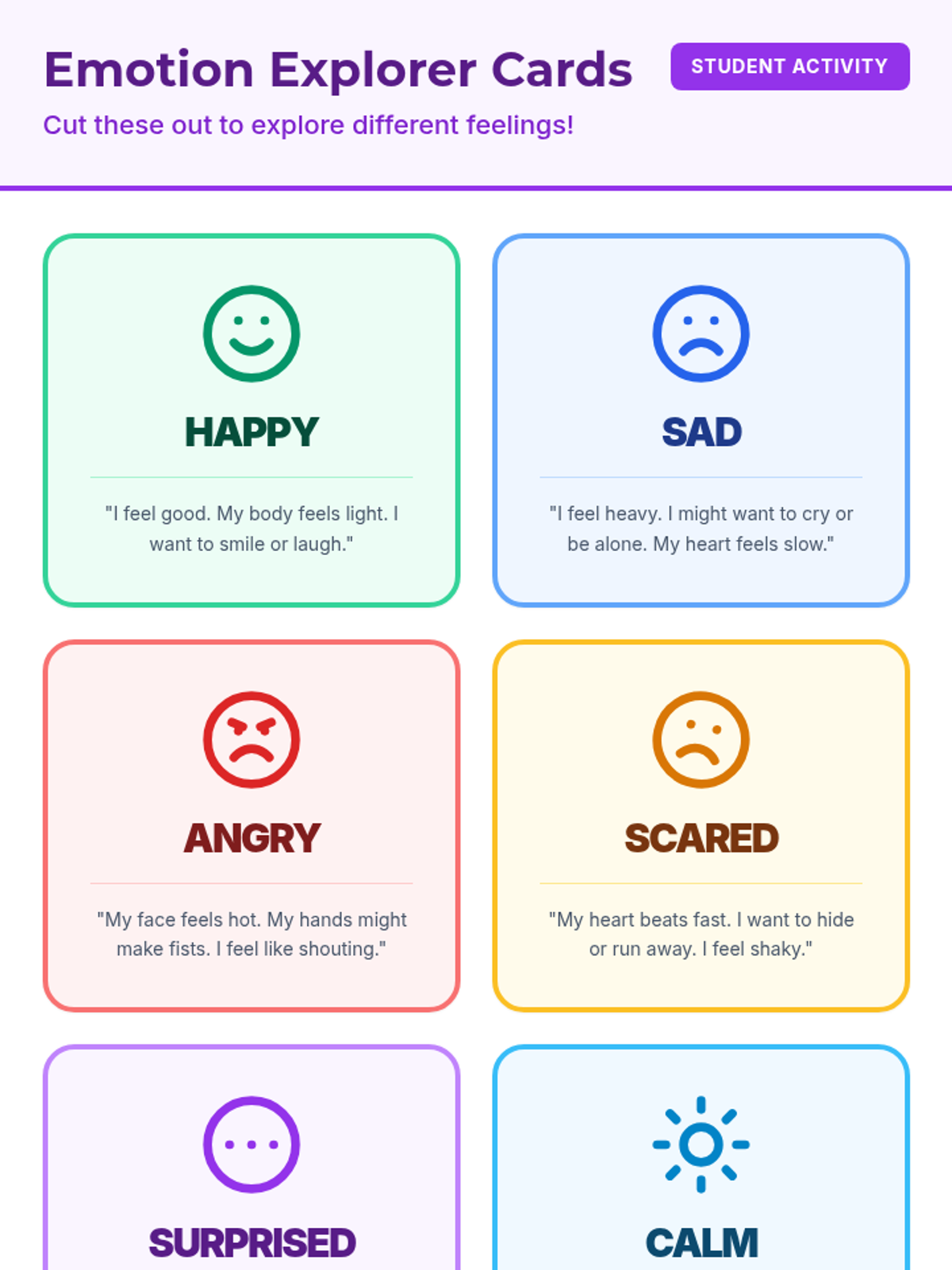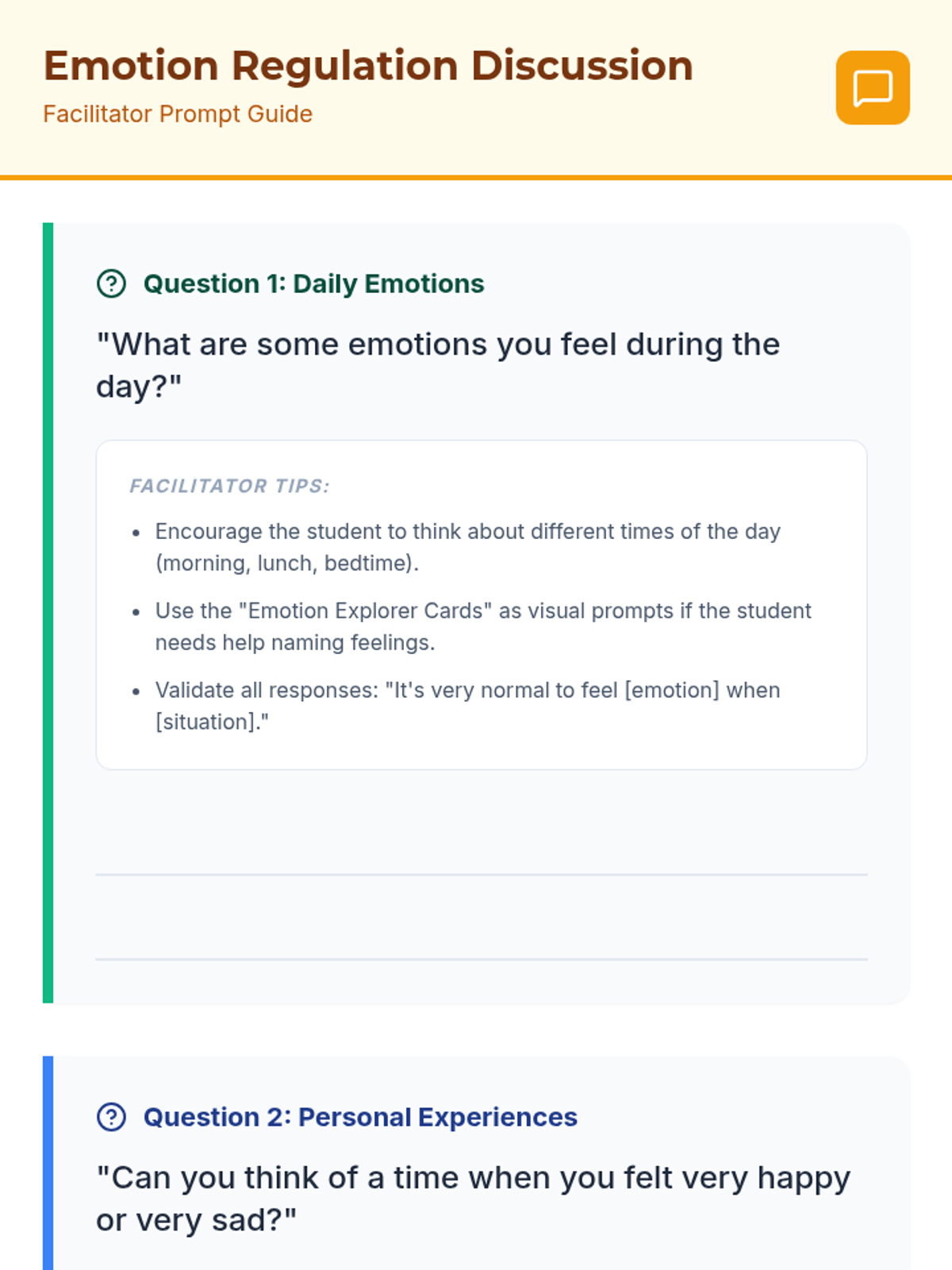 An experiential, game-based lesson for a 20-year-old intellectually disabled student to identify emotions and develop practical coping strategies through an adventure-themed journey.