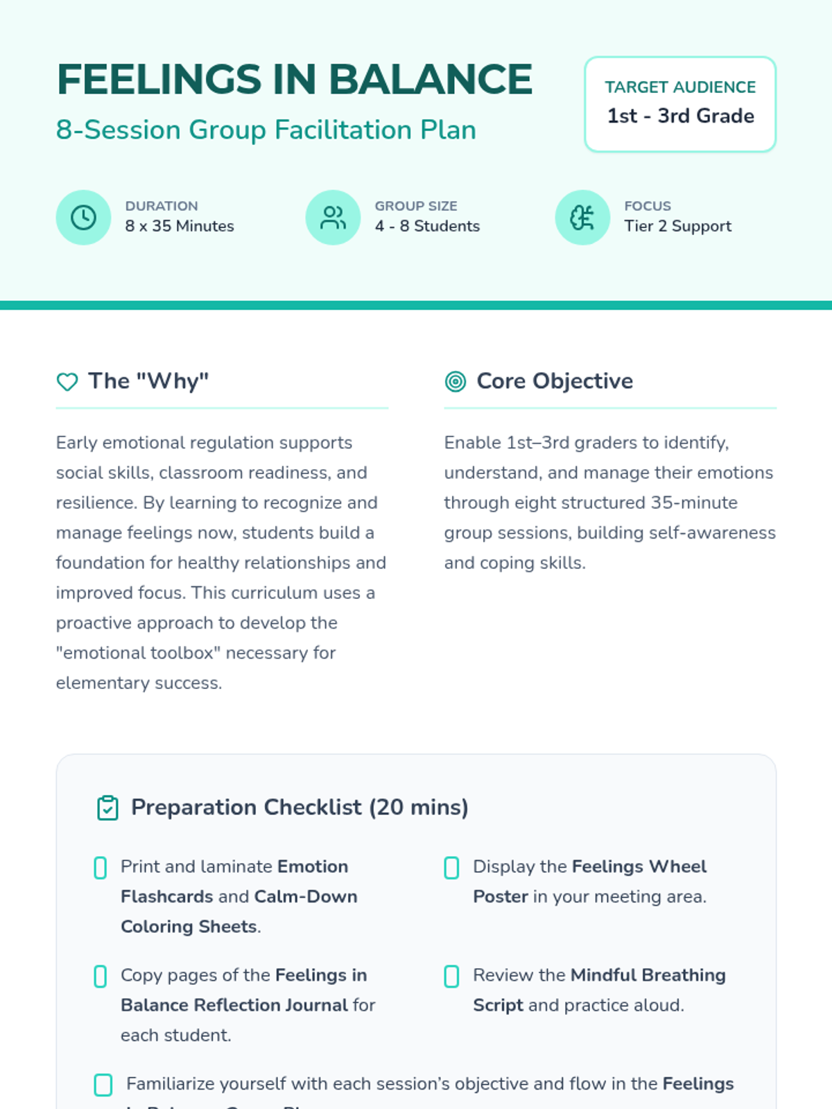 A comprehensive 8-session curriculum for young students to develop emotional intelligence, regulation strategies, and empathy.