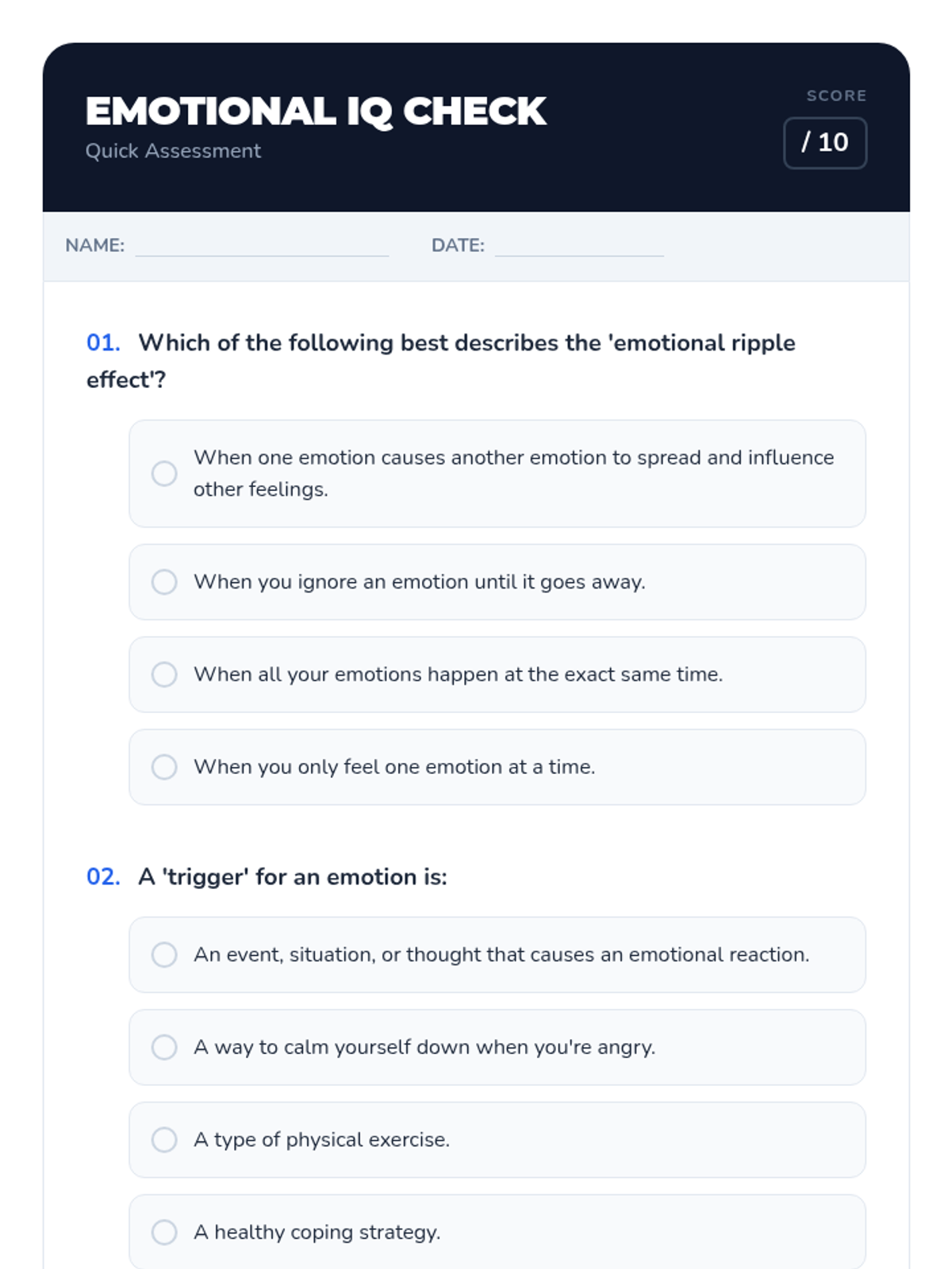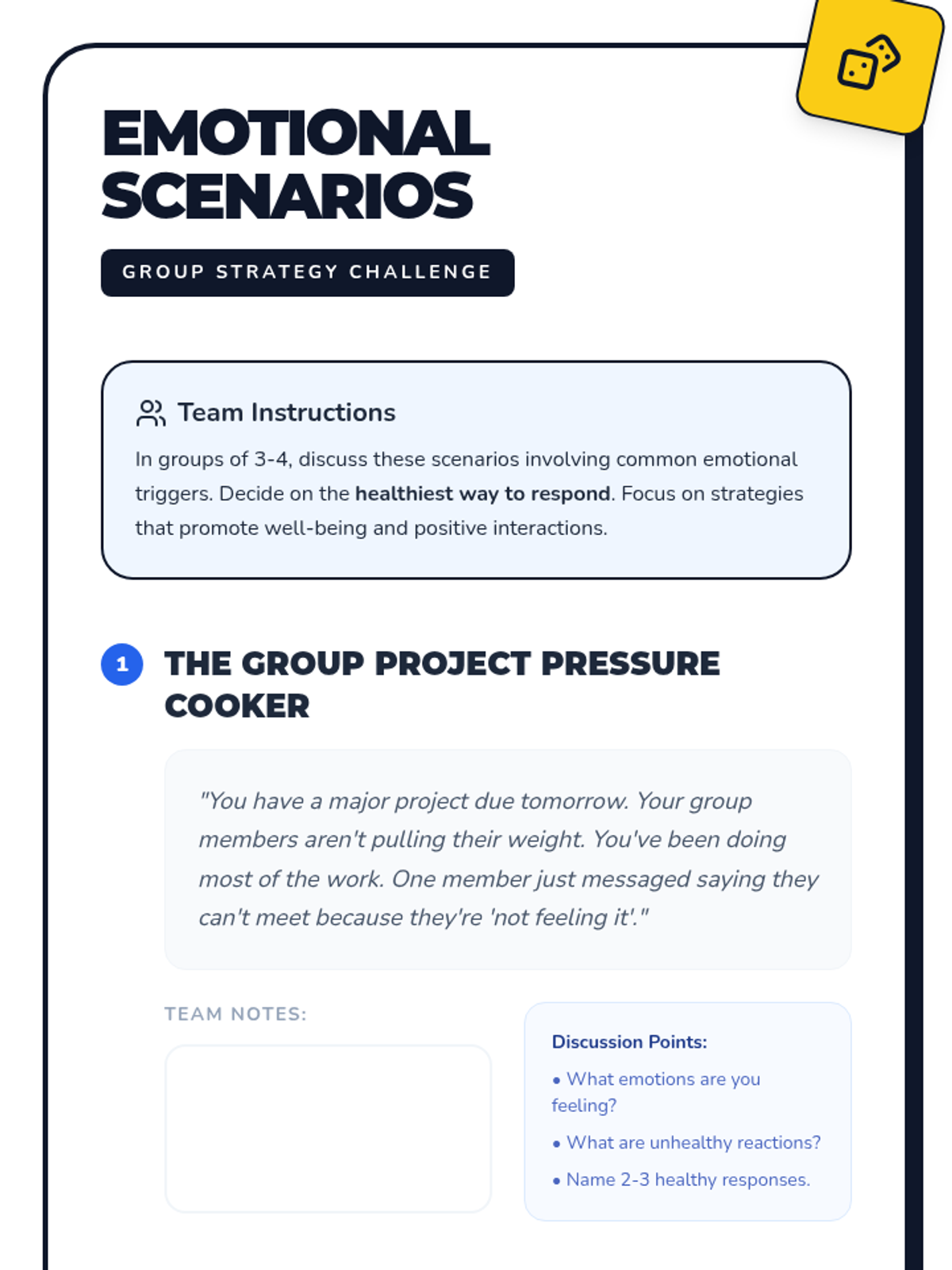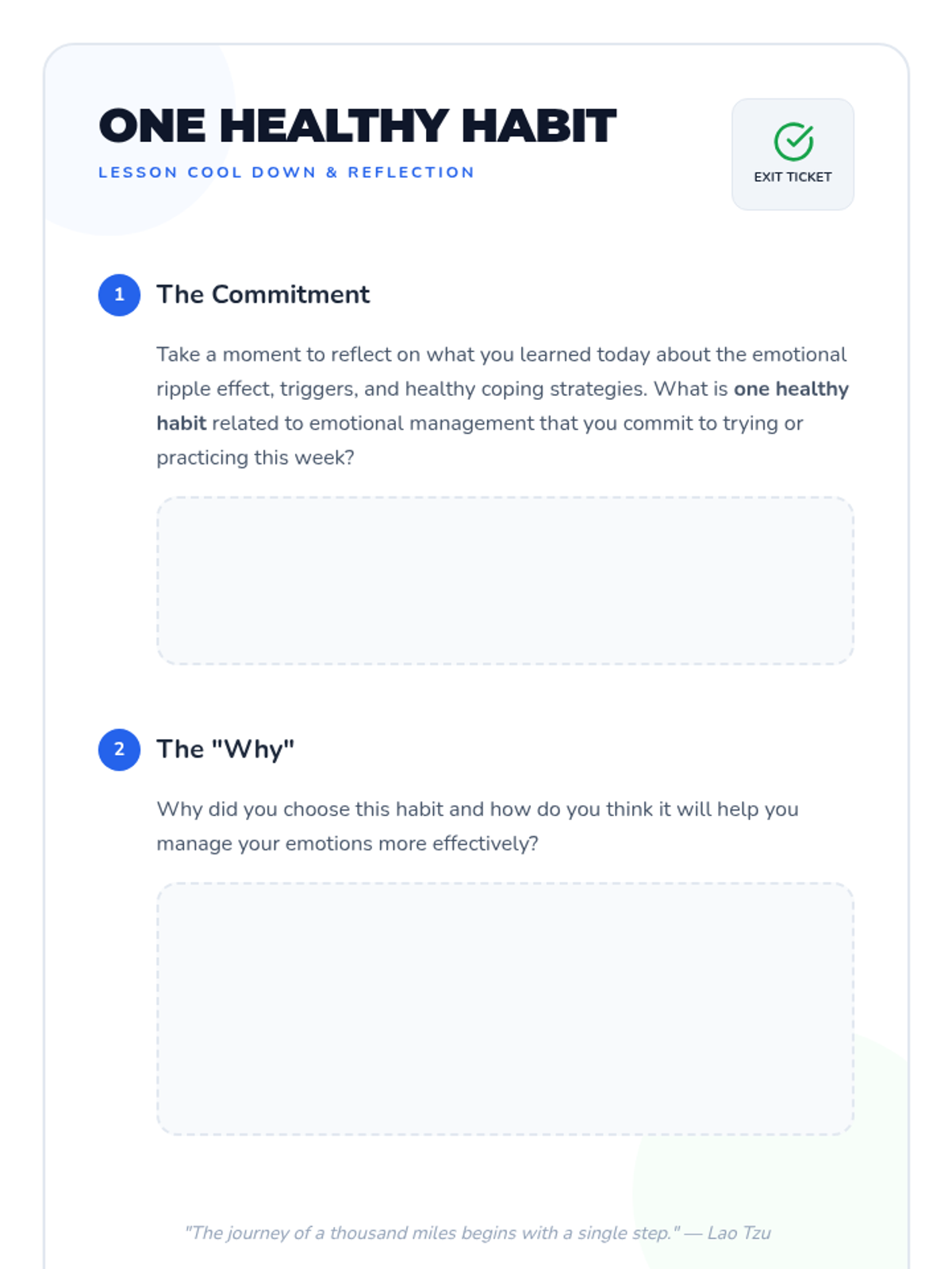 A single 45-minute session for high schoolers exploring how stress and anger trigger other emotions and how to manage these 'ripples' with healthy coping strategies.