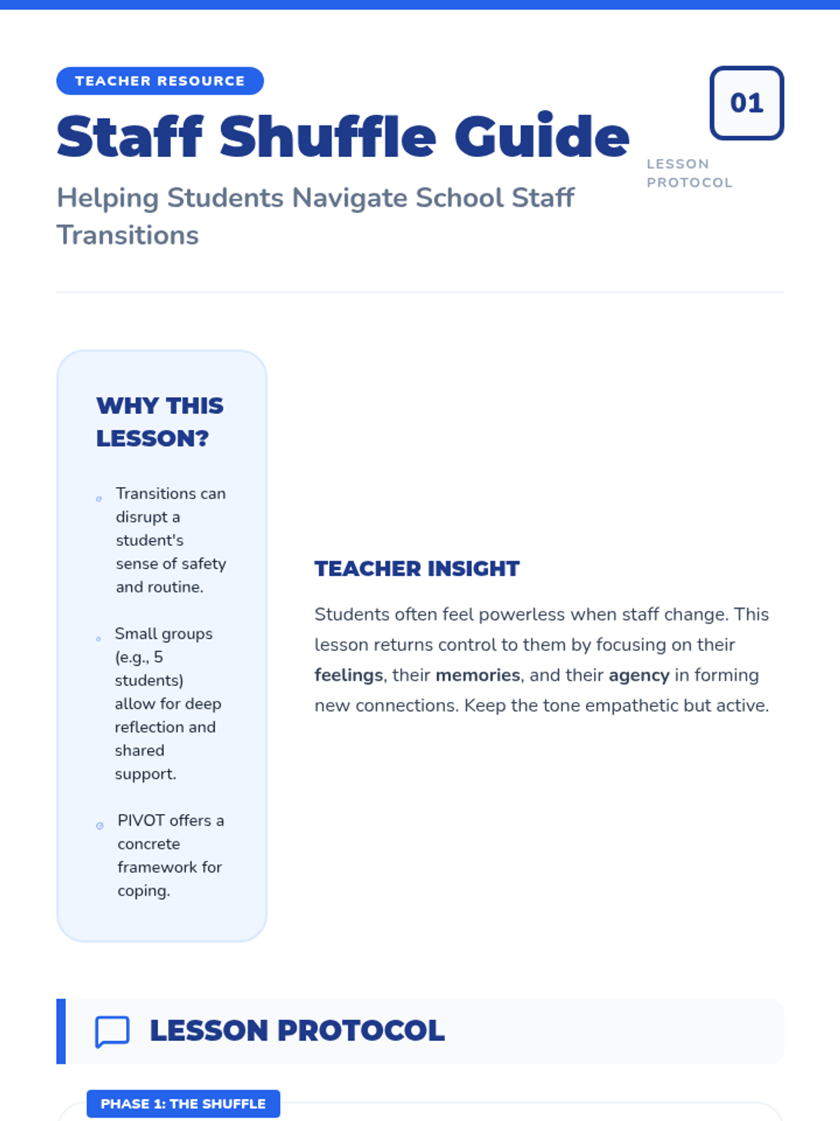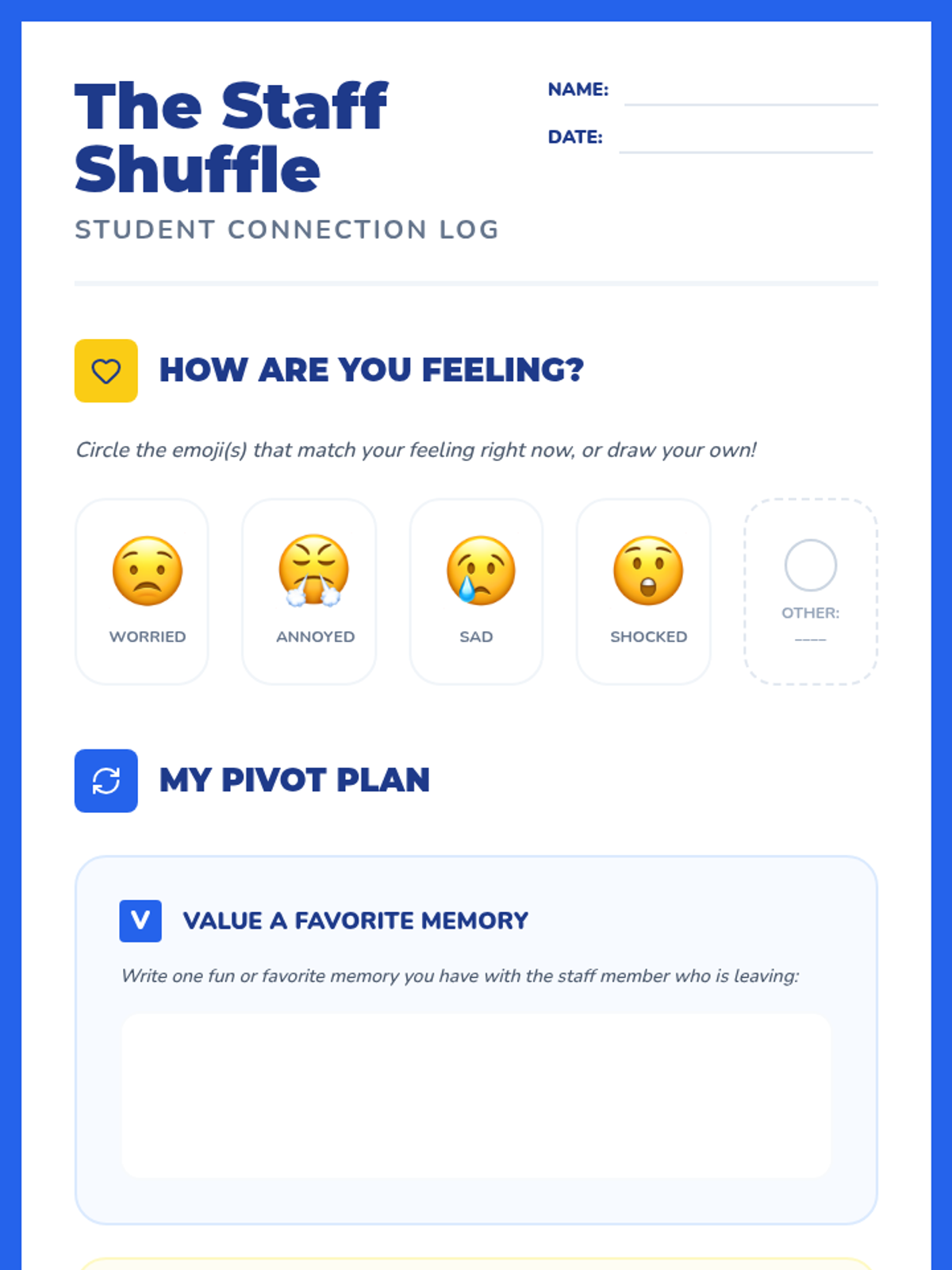 A practical and engaging lesson designed to help students navigate and adapt to unexpected school staff changes using the PIVOT coping strategy.