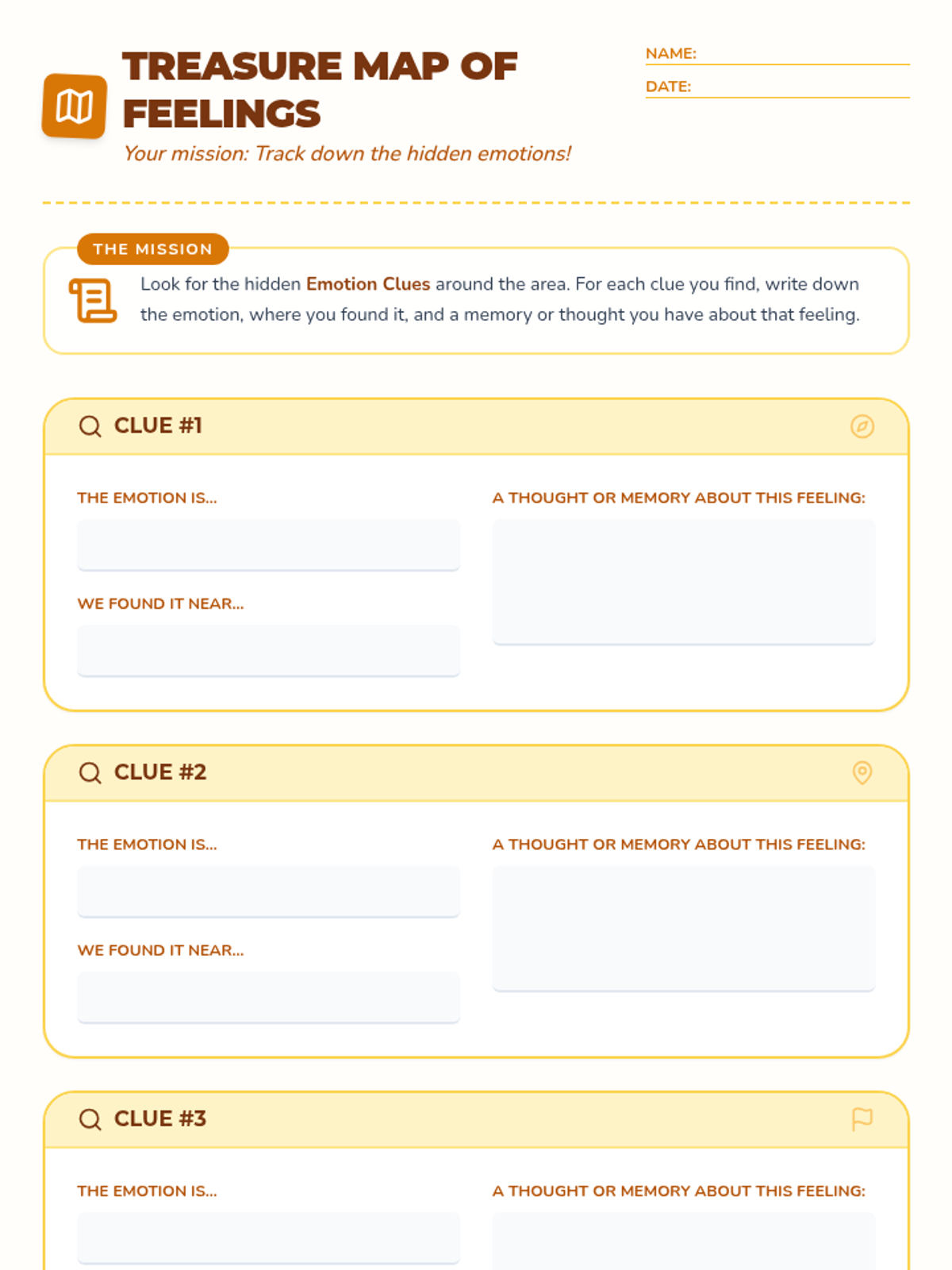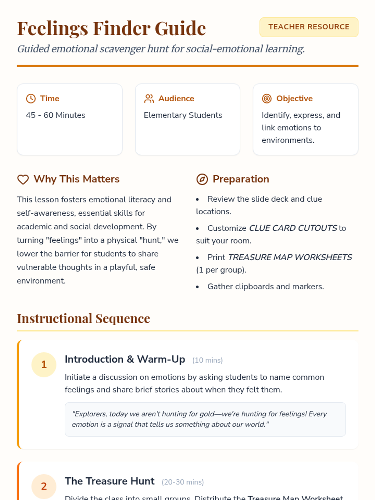 A fun, interactive scavenger hunt activity for elementary students to identify and express their emotions through movement and exploration.