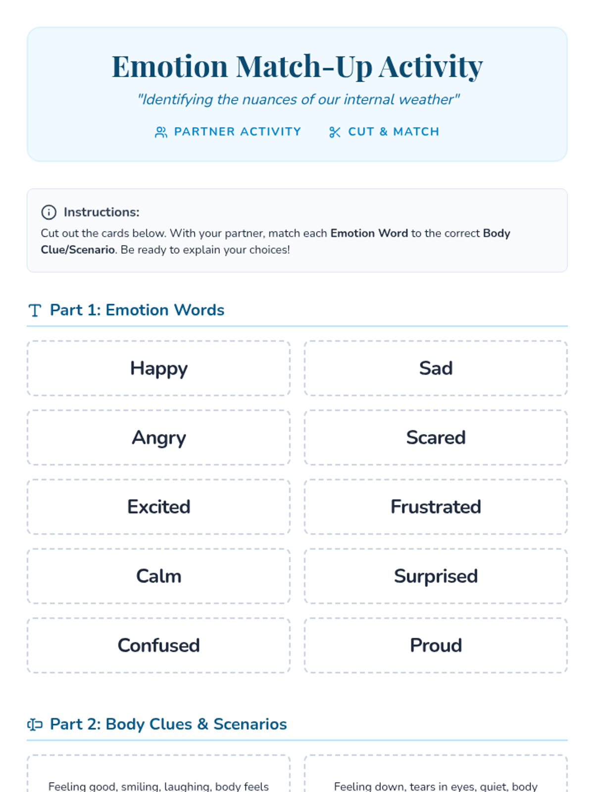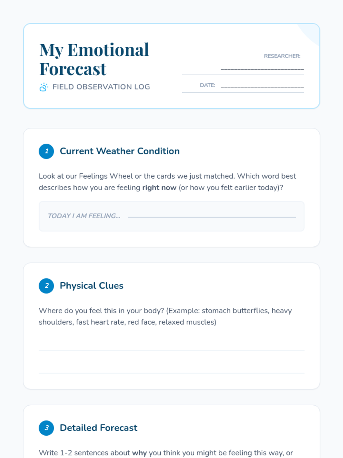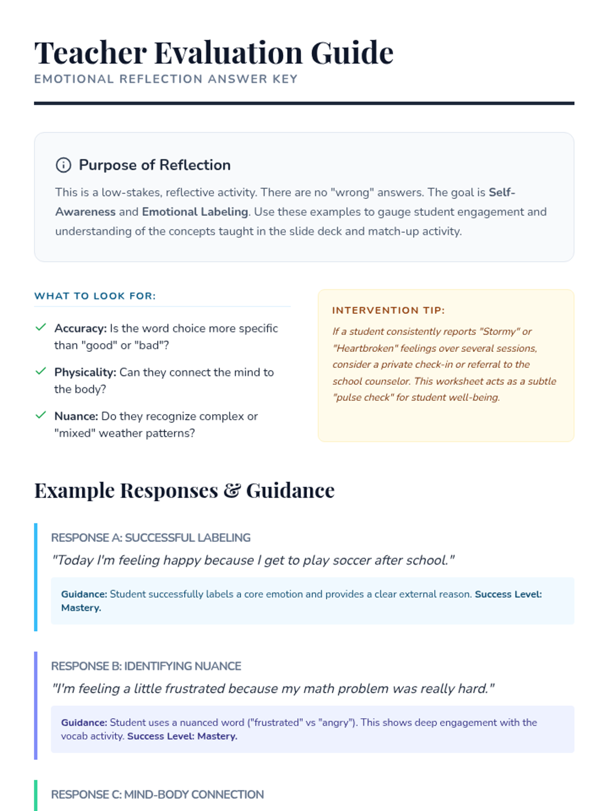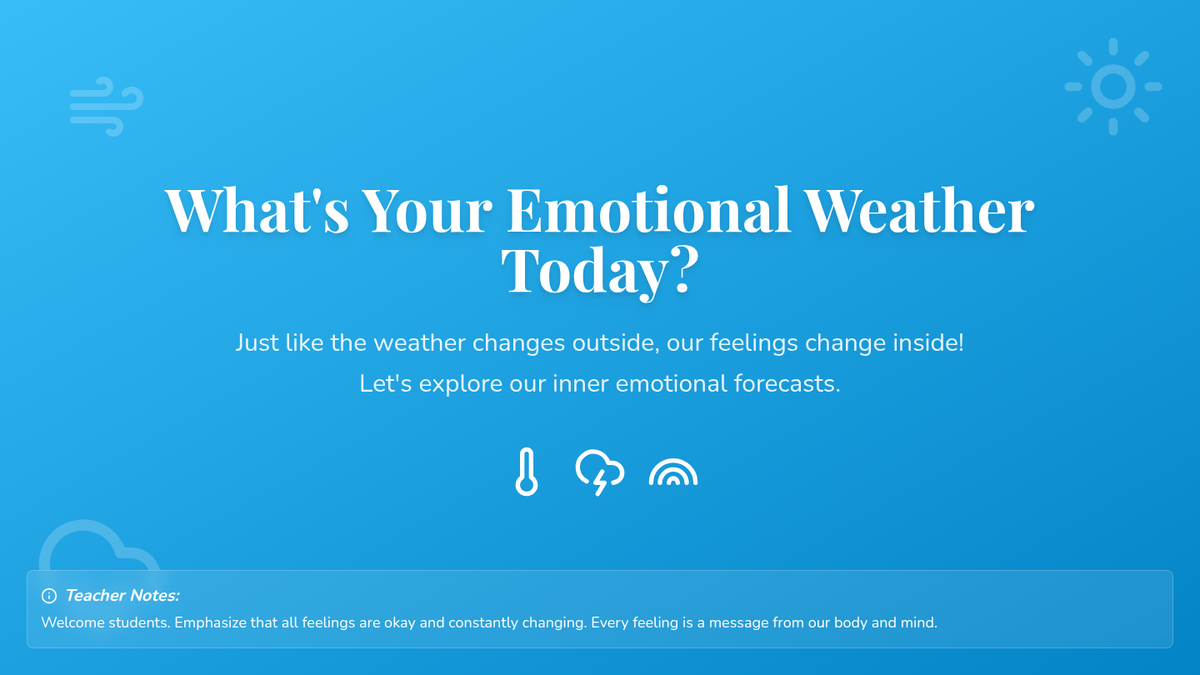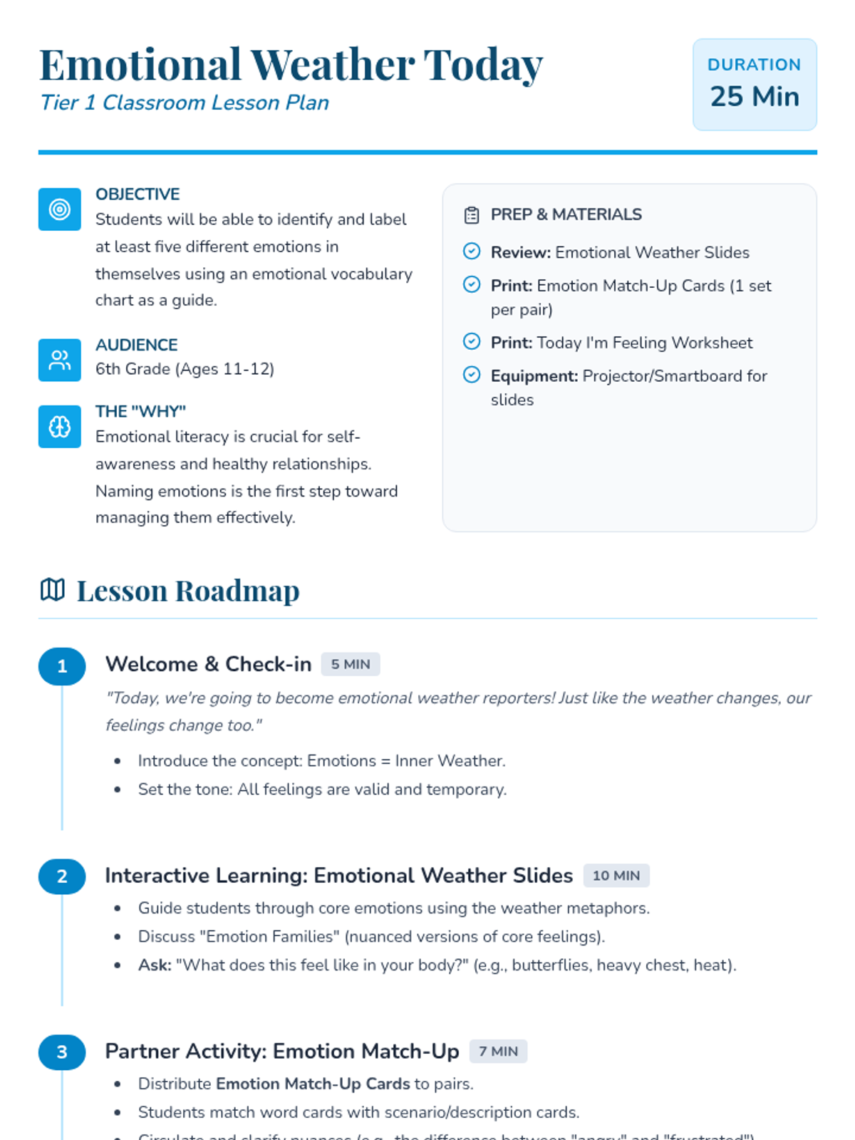 A 25-minute SEL lesson for 6th graders to develop emotional literacy by using a weather metaphor to identify and label complex feelings.