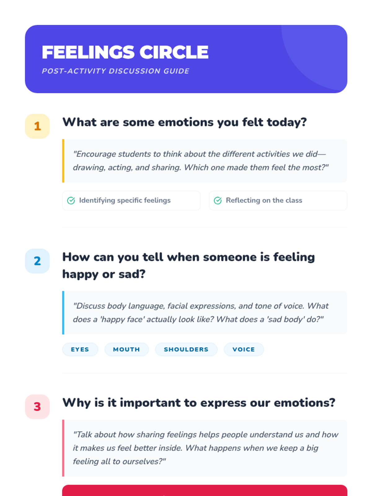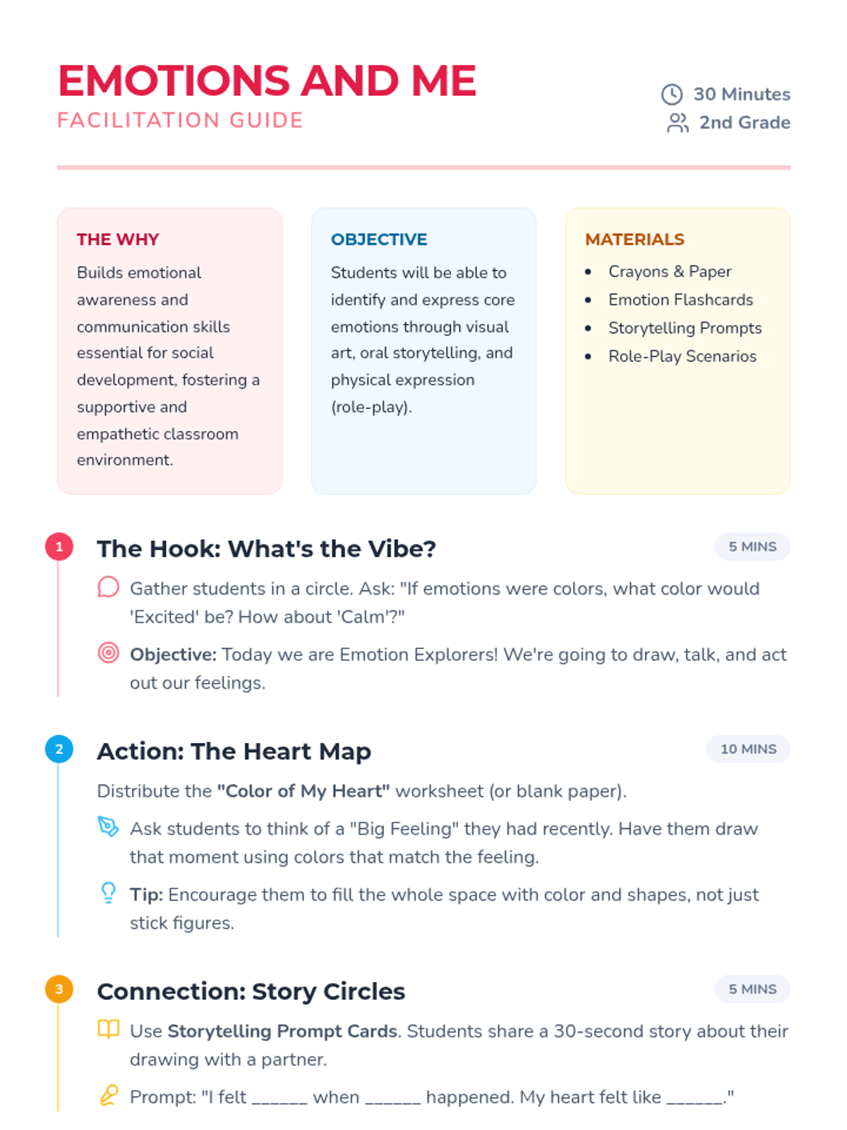 A social-emotional learning lesson for 2nd graders to identify, express, and communicate their feelings through creative drawing, storytelling, and role-play.