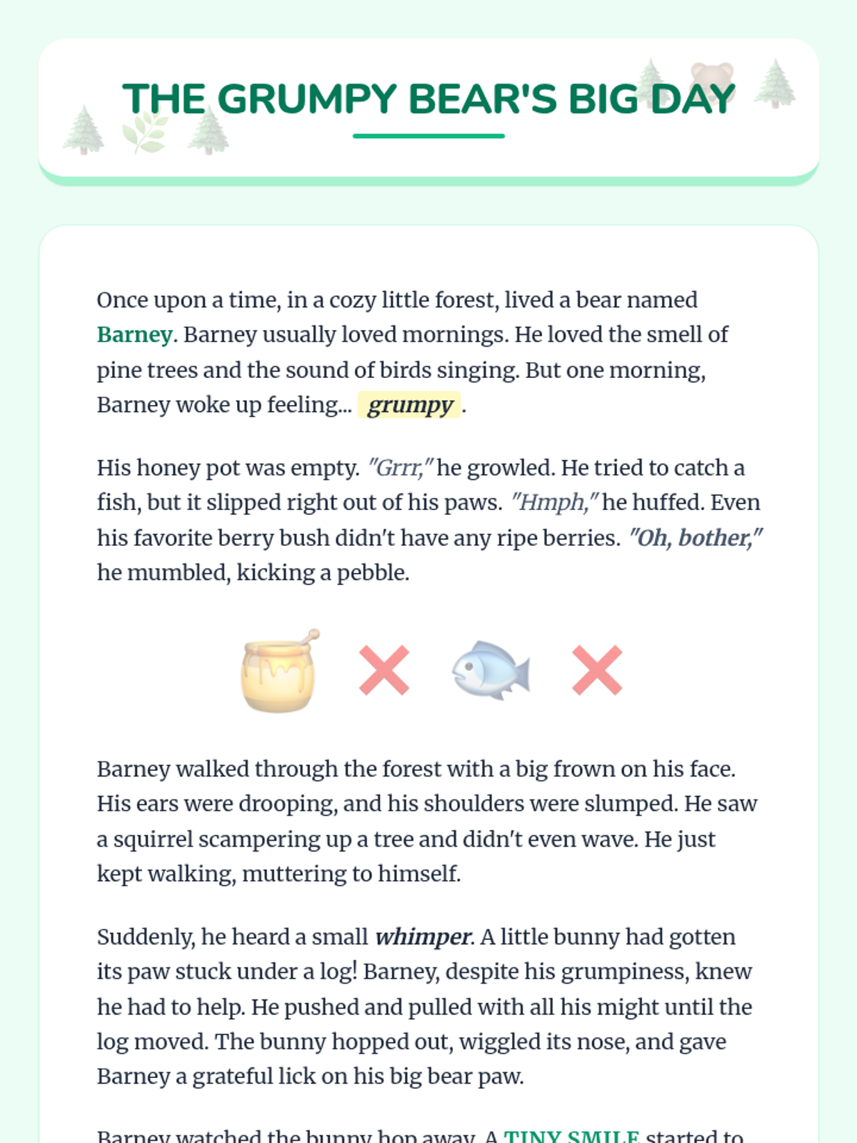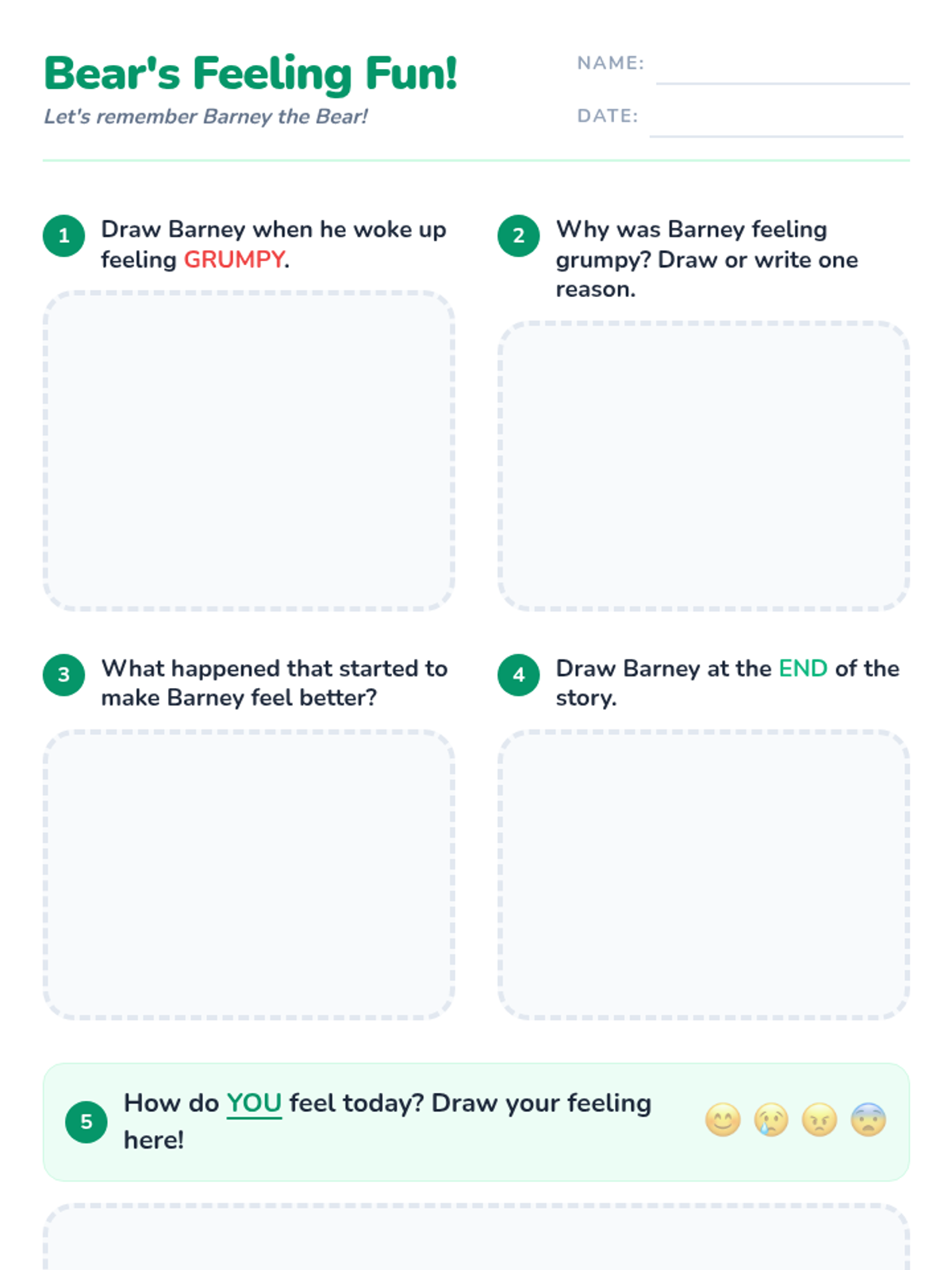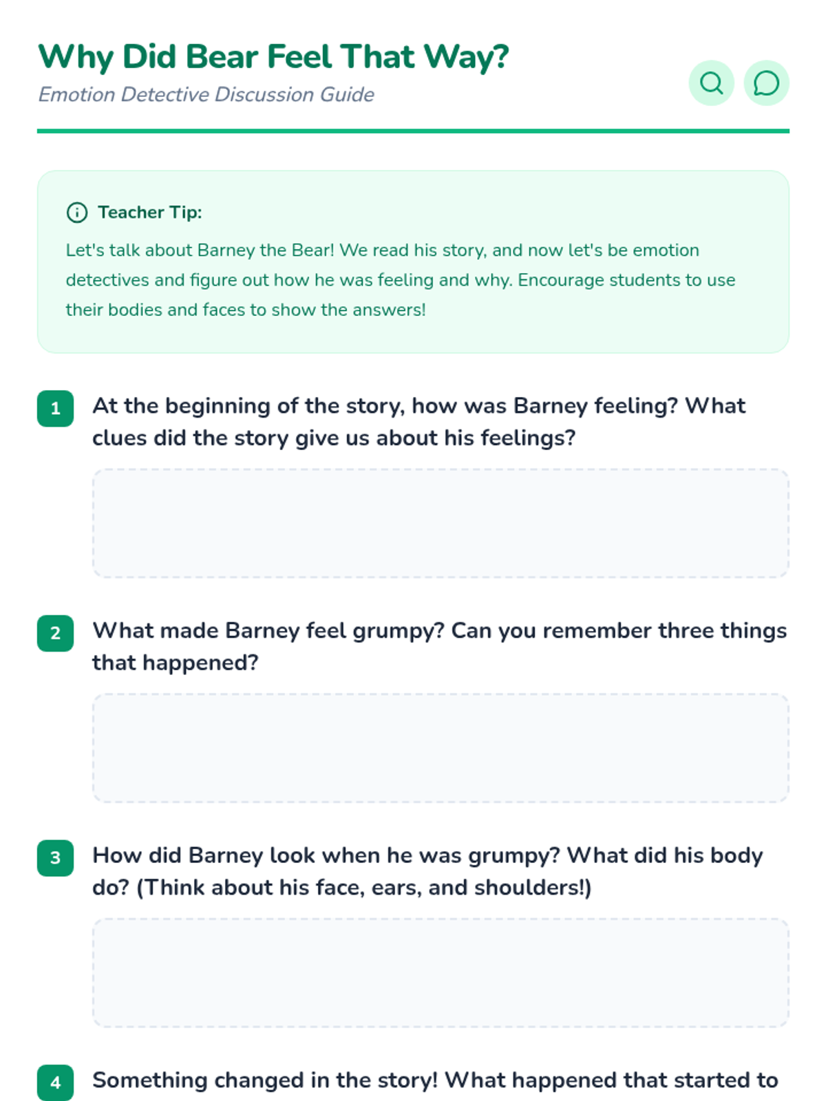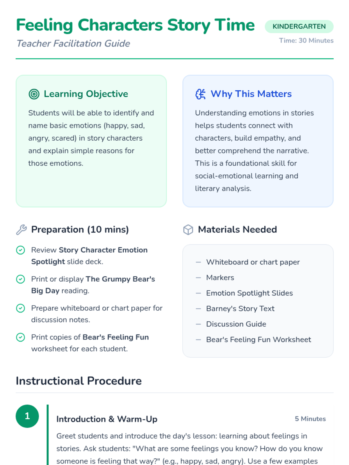 This lesson teaches Kindergarten students to identify and analyze emotions in literary characters, focusing on a story about Barney the Bear to build empathy and comprehension.