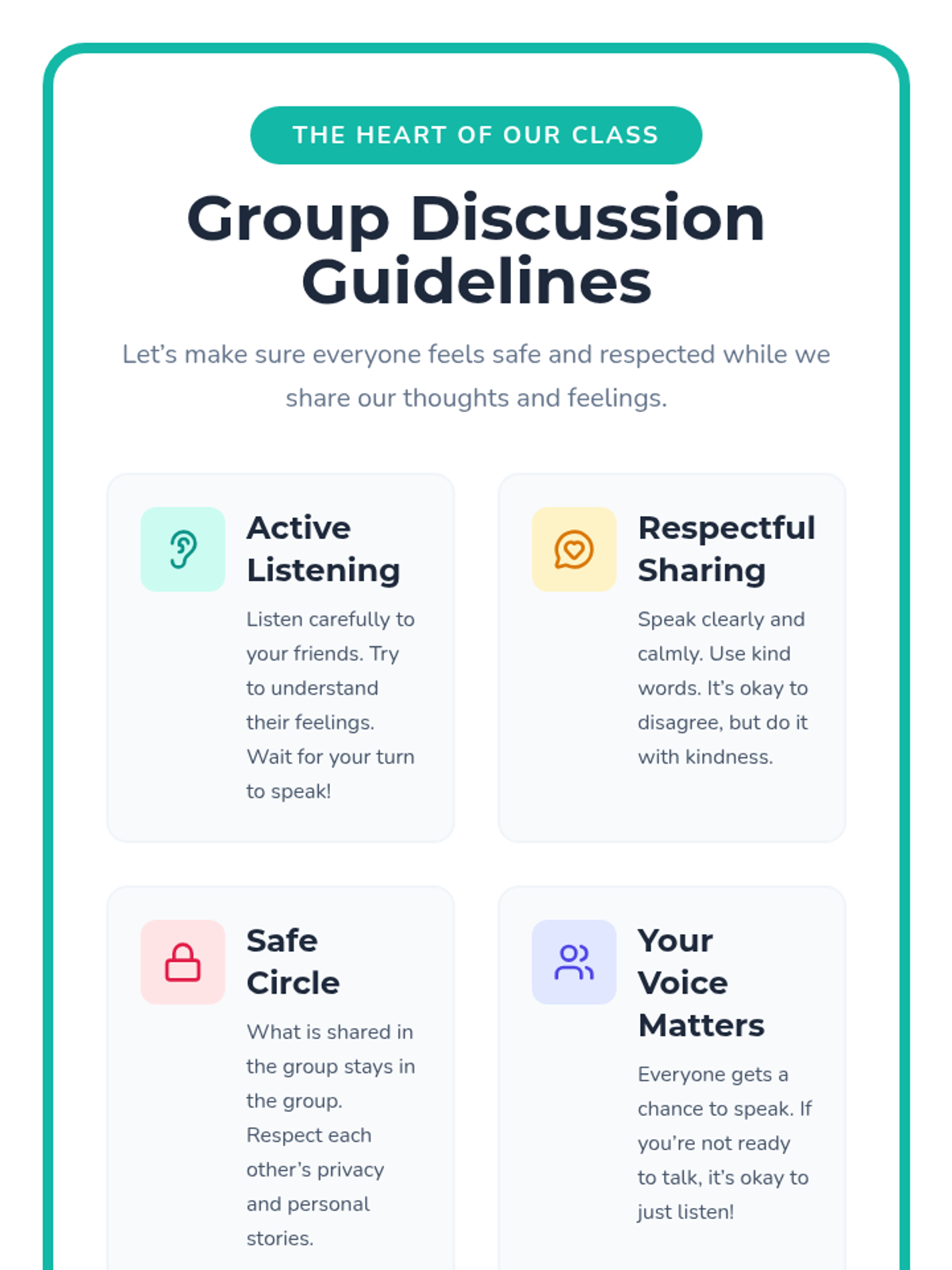 A fast-paced, 10-minute social-emotional learning lesson focused on building self-confidence through self-acceptance and kindness toward others. Students define self-esteem and set immediate goals for personal growth and peer acceptance.