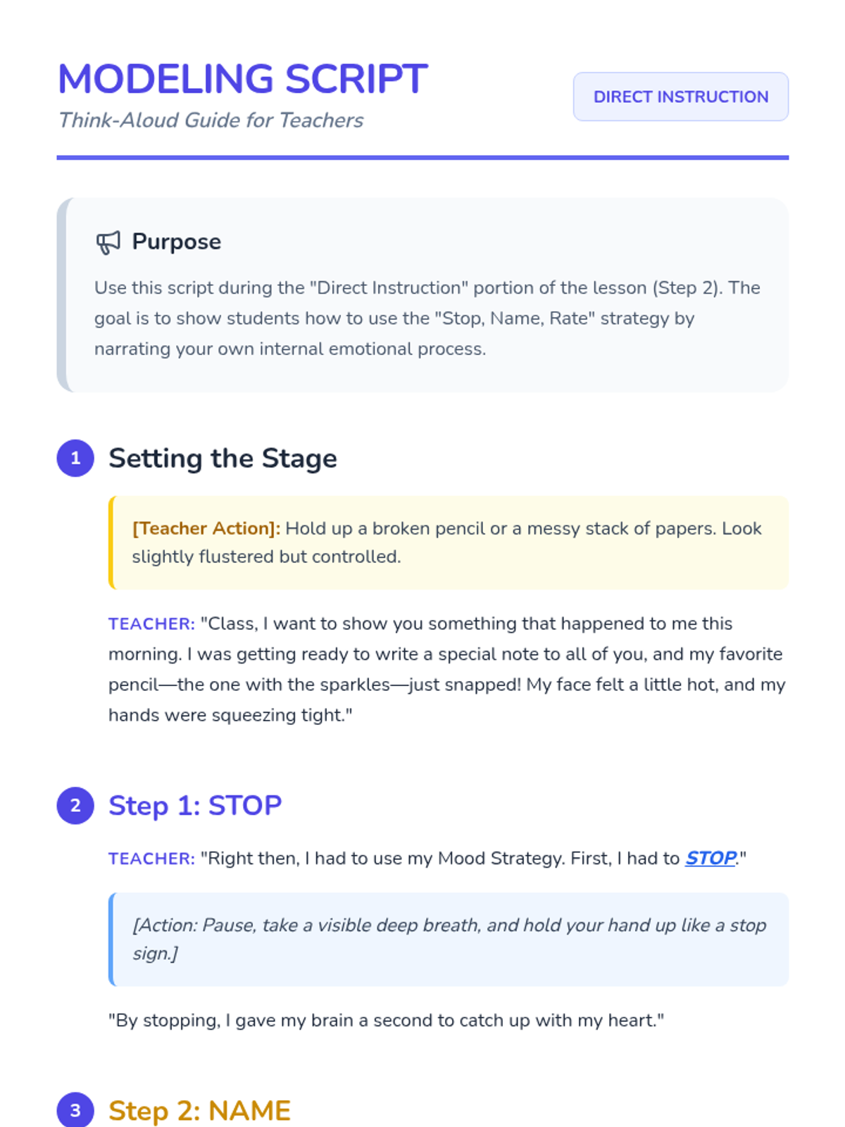 A social-emotional learning lesson designed to help students identify 'big feelings' and practice safe replacement behaviors for physical aggression. Includes a narrative story, situational practice, and a personalized reflection plan.