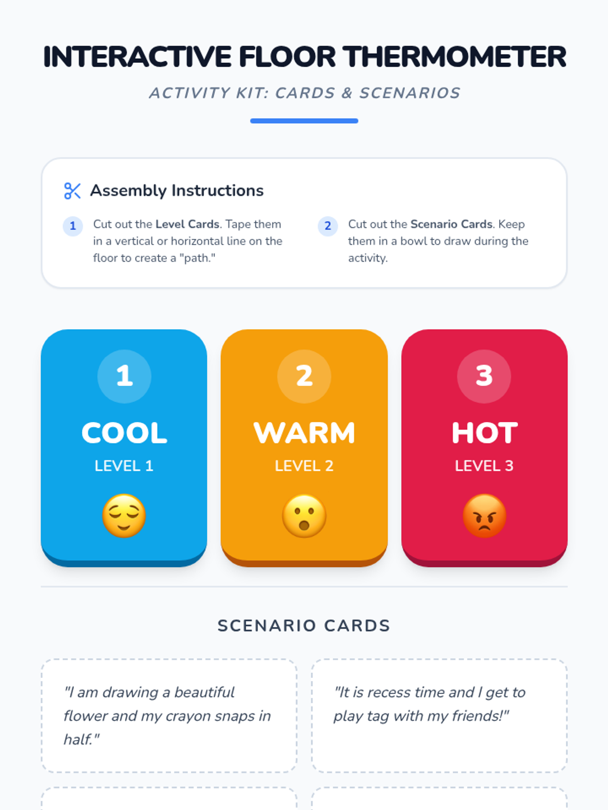 A lesson designed to help students distinguish between Small and Big Problems and choose safe regulation strategies instead of physical reactions. It includes a social story, practice worksheet, and strategy reference guide.