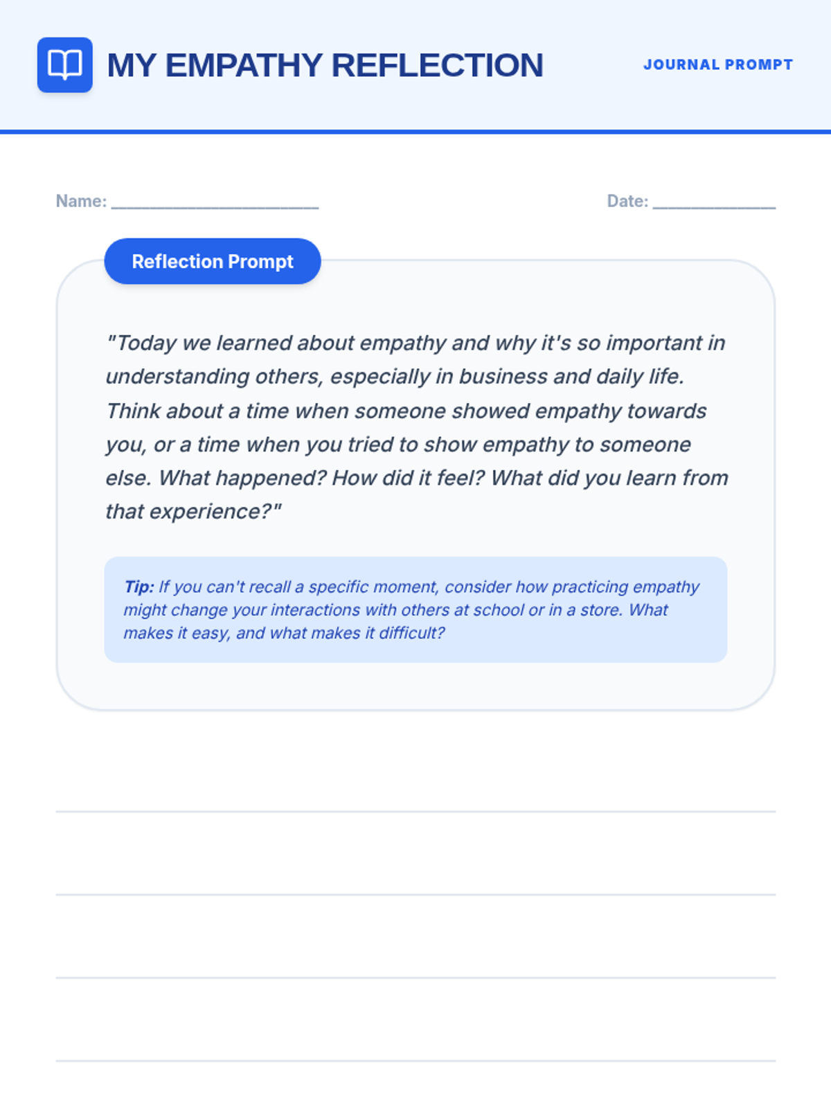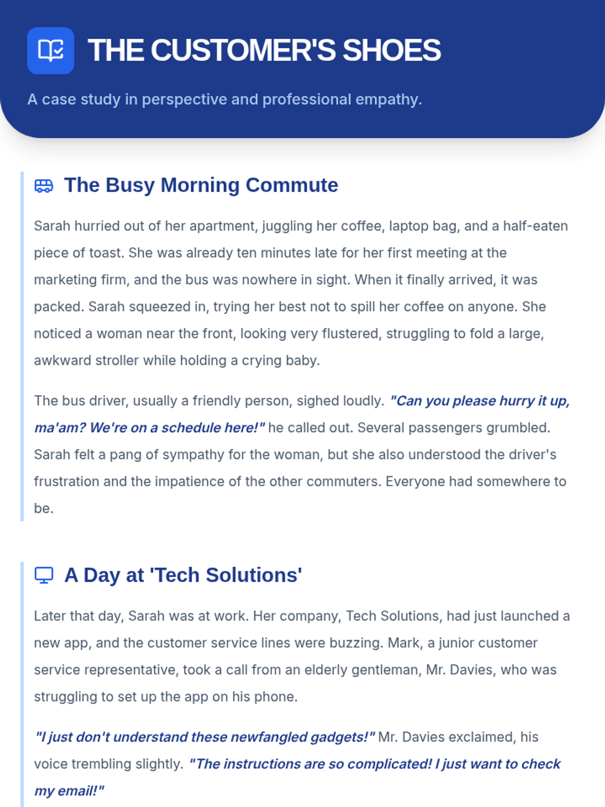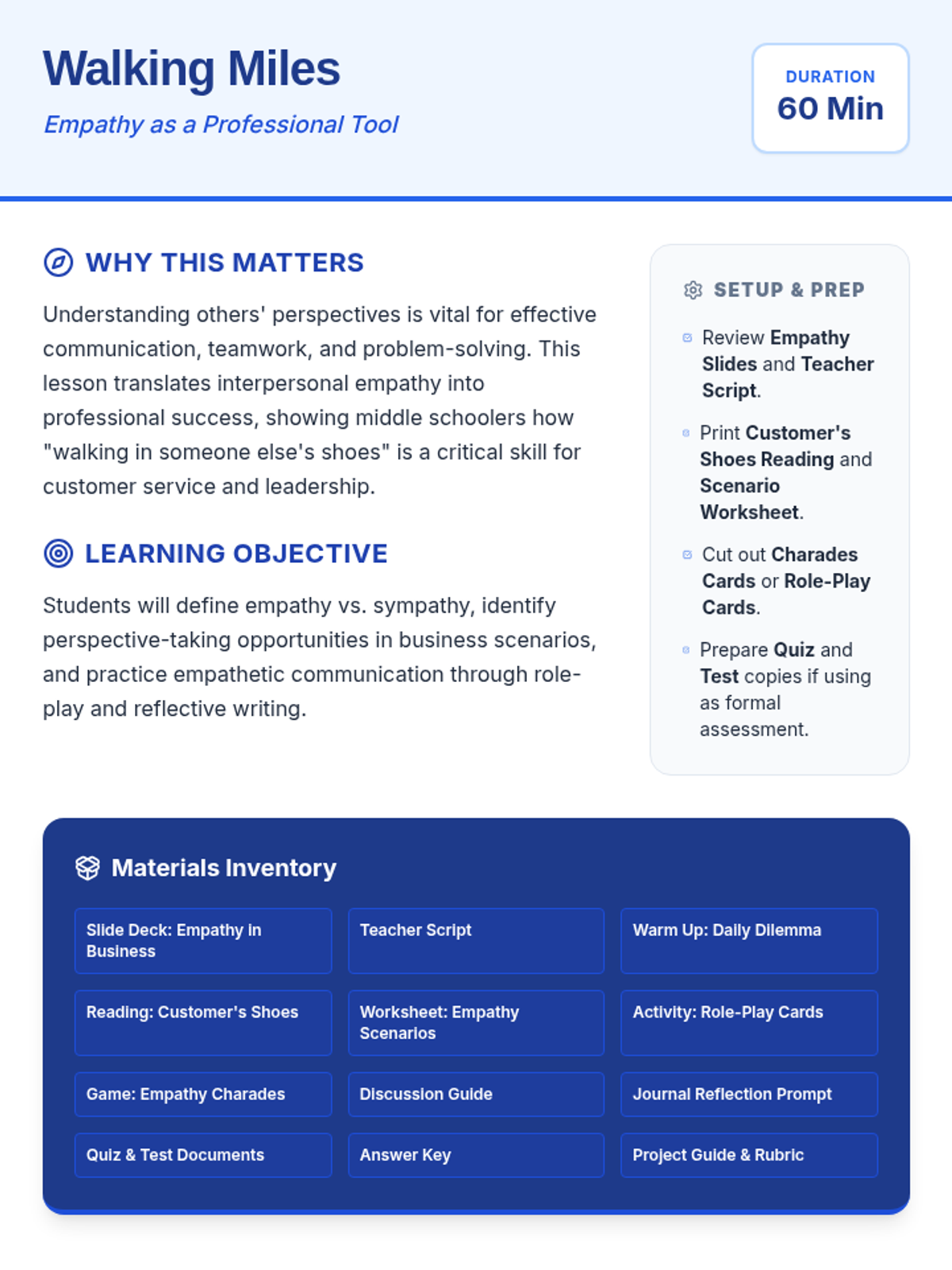 Introduces middle school students to the concept of perspective-taking and its critical role in customer service and professional relationships.