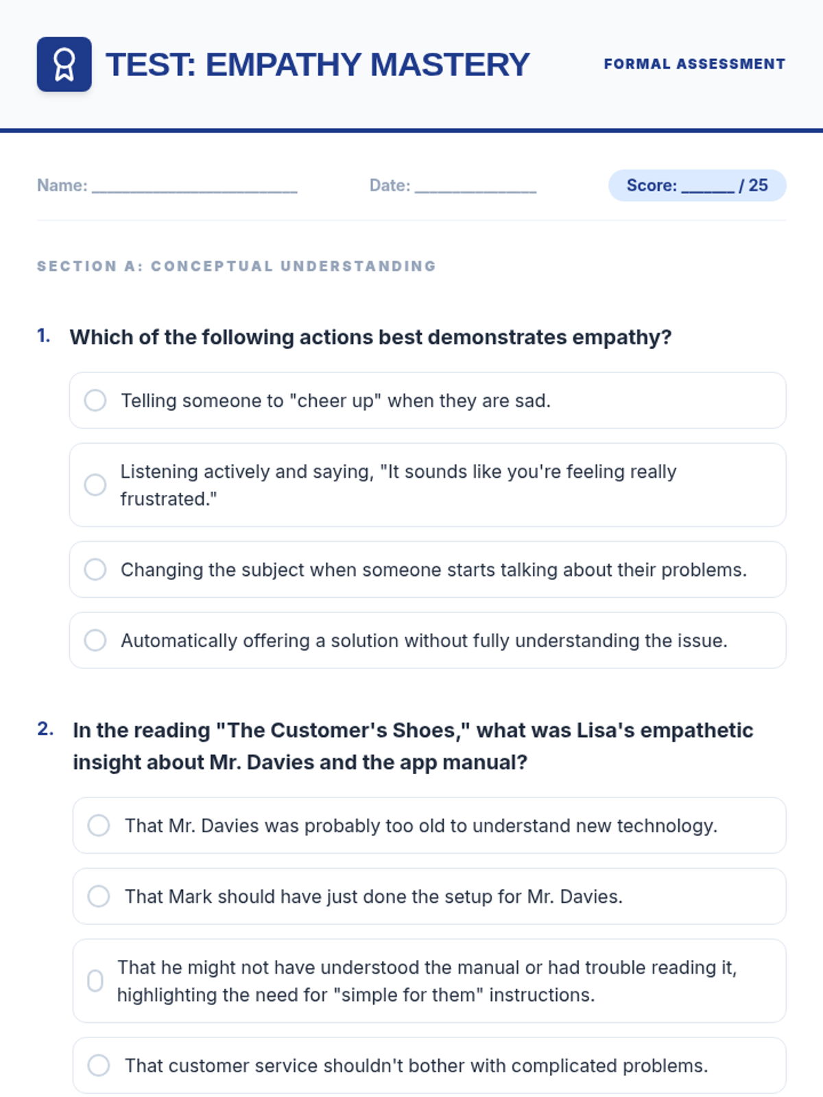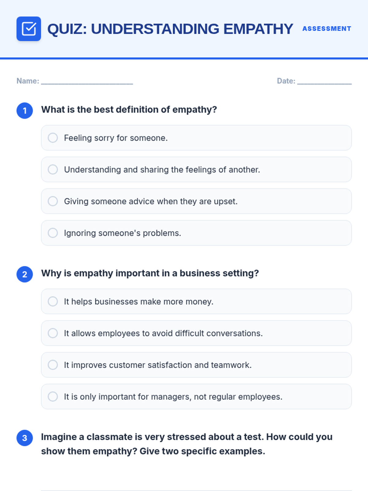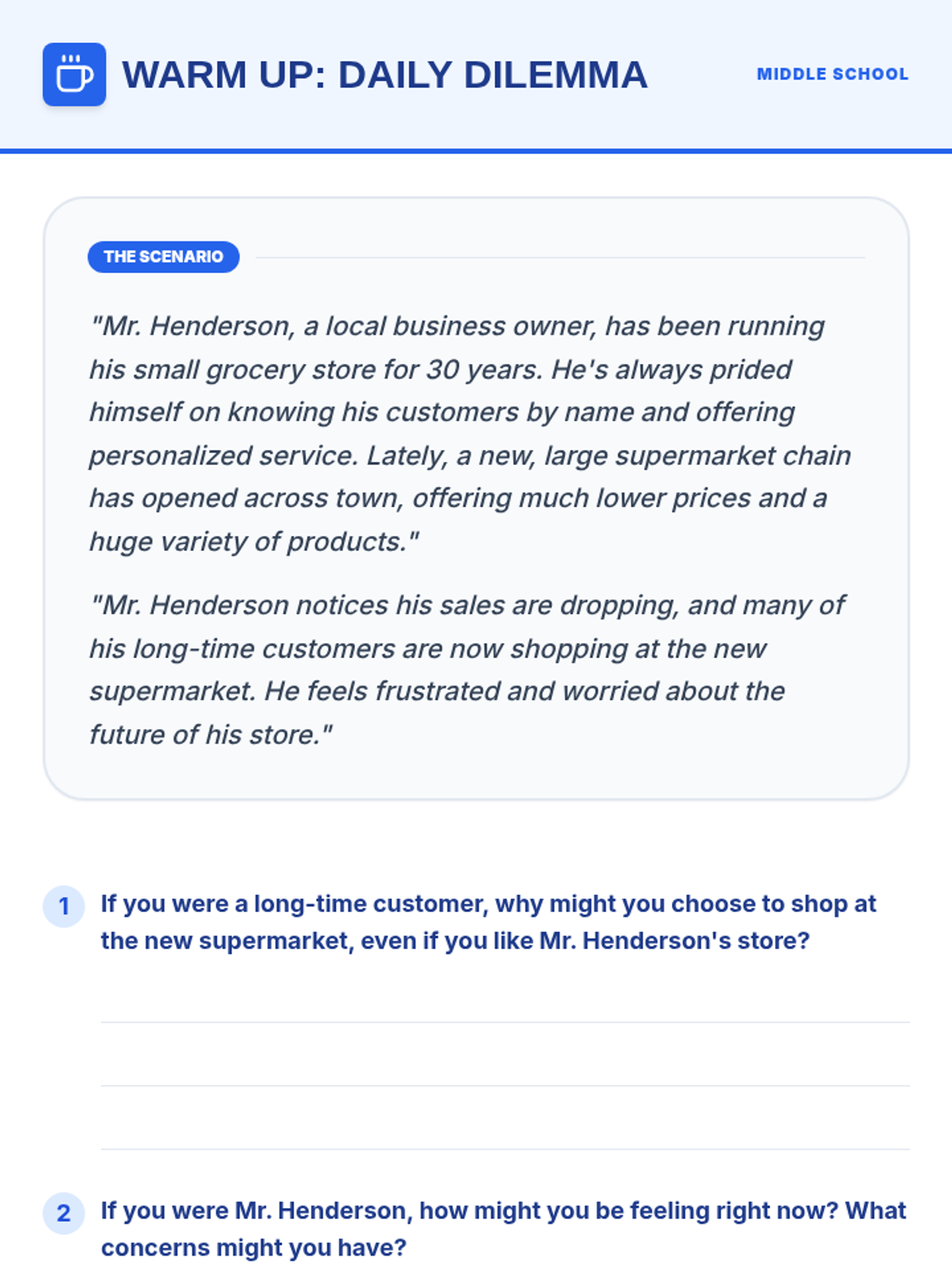 Introduces middle school students to the concept of perspective-taking and its critical role in customer service and professional relationships.