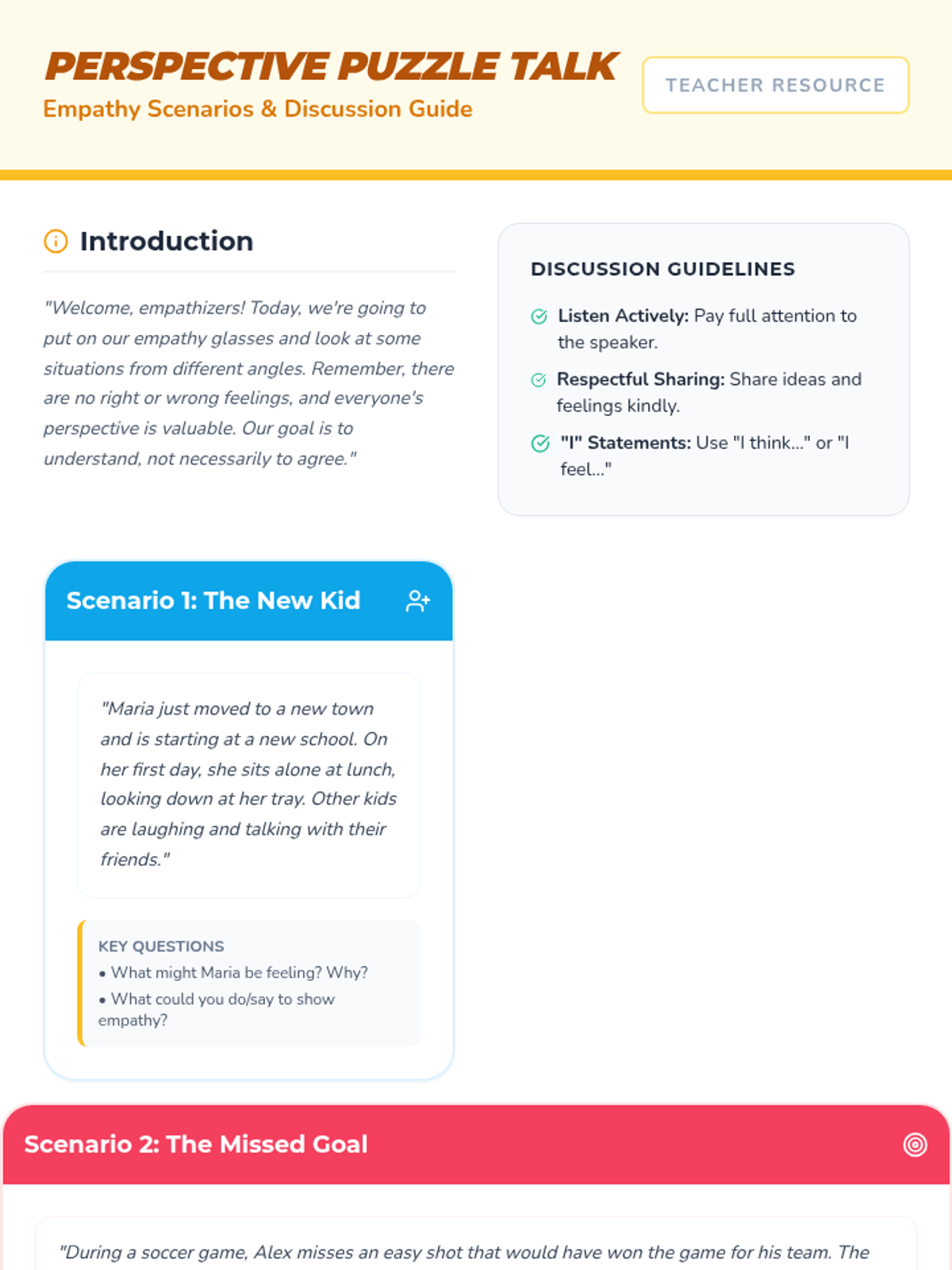 A 45-minute Tier 2 group lesson for 6th graders to develop empathy, perspective-taking, and compassionate communication skills through discussion and reflection.
