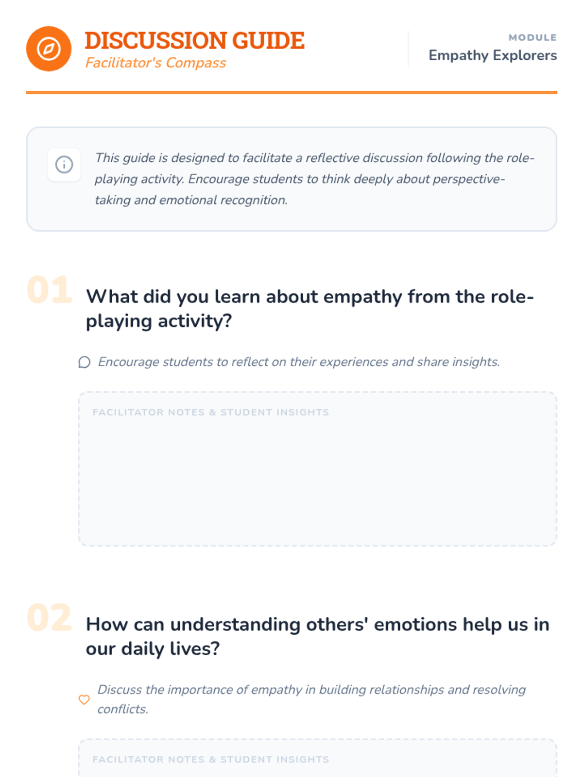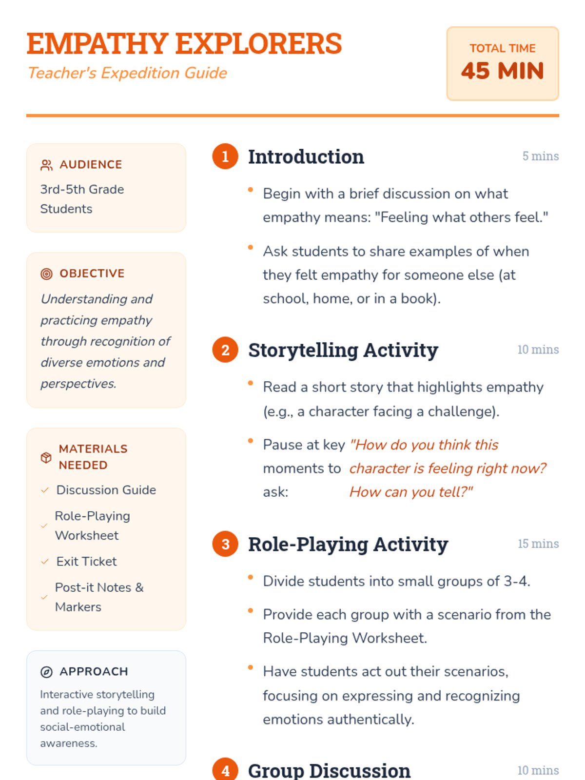 Students will embark on a journey to understand and practice empathy through interactive storytelling and role-playing activities, learning to recognize and respect diverse emotions.