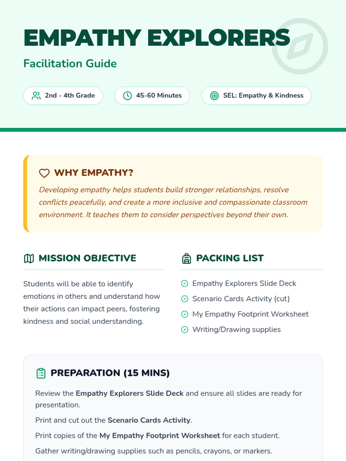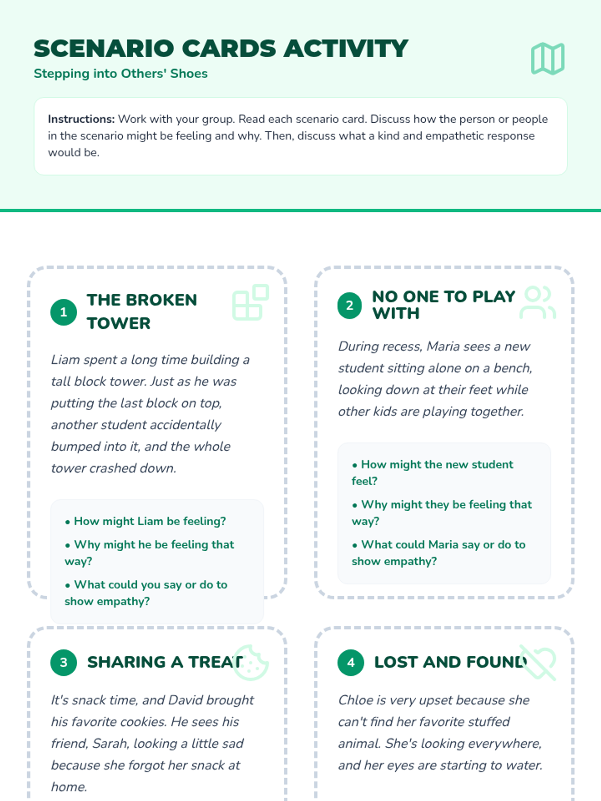A 45-60 minute Social-Emotional Learning lesson for 2nd-4th graders that uses story scenarios and perspective-taking activities to build empathy and compassion.