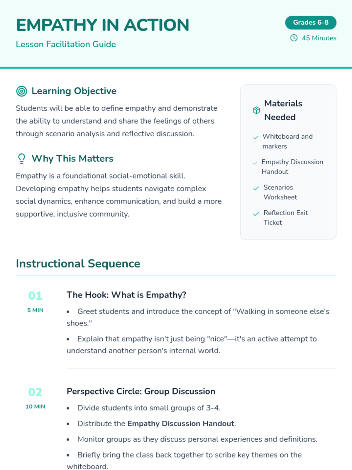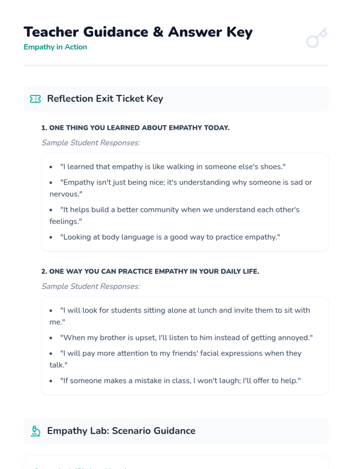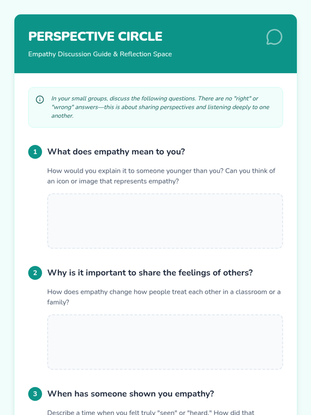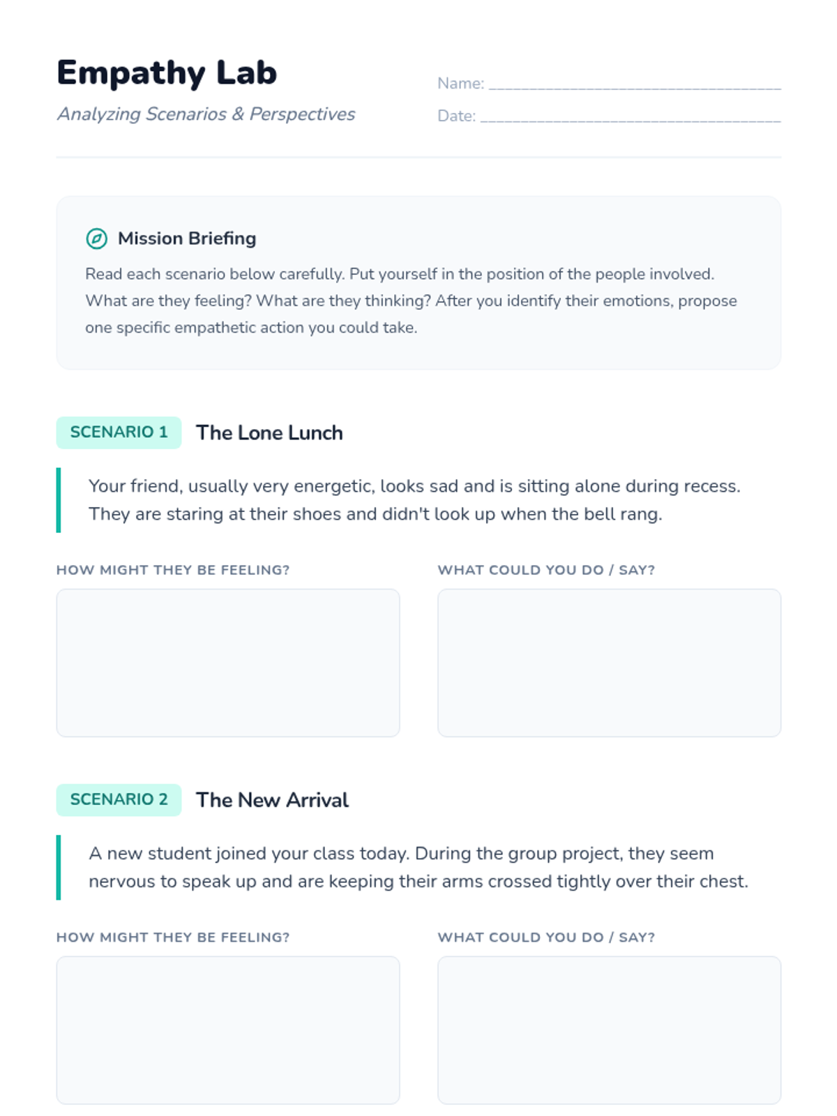 Students develop social-emotional skills through interactive scenarios and discussions focused on understanding and sharing the feelings of others.