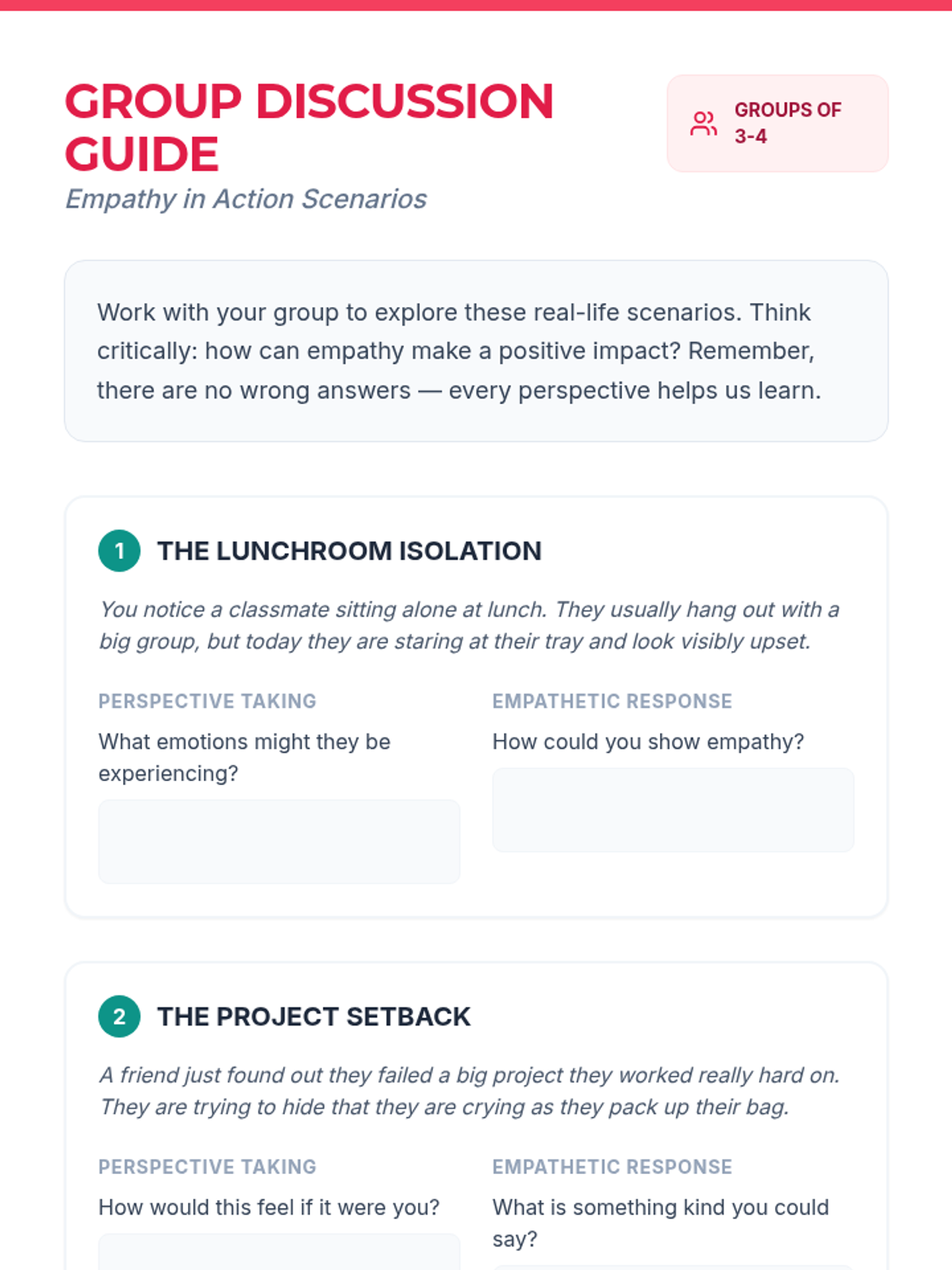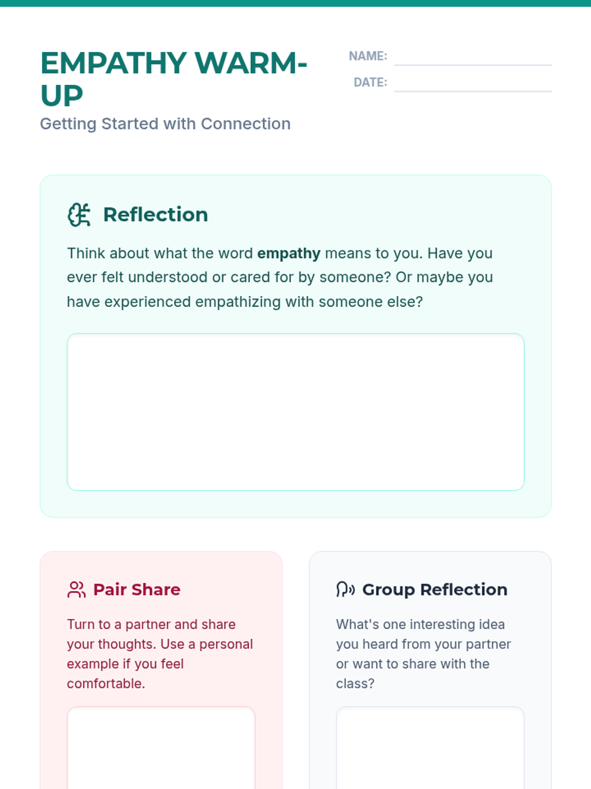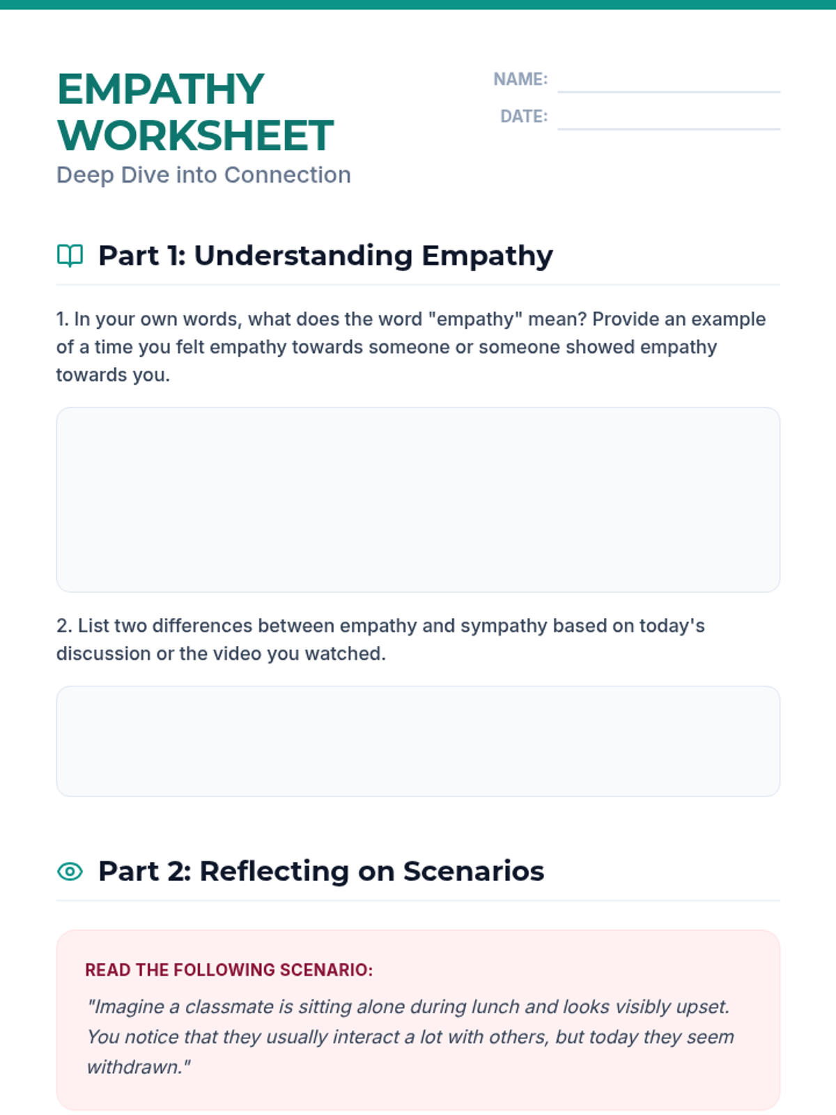 A 45-minute lesson for 7th-grade students focusing on understanding and practicing empathy through engaging activities, discussions, and multimedia. Students will learn the difference between empathy and sympathy and identify practical ways to build a more inclusive classroom.