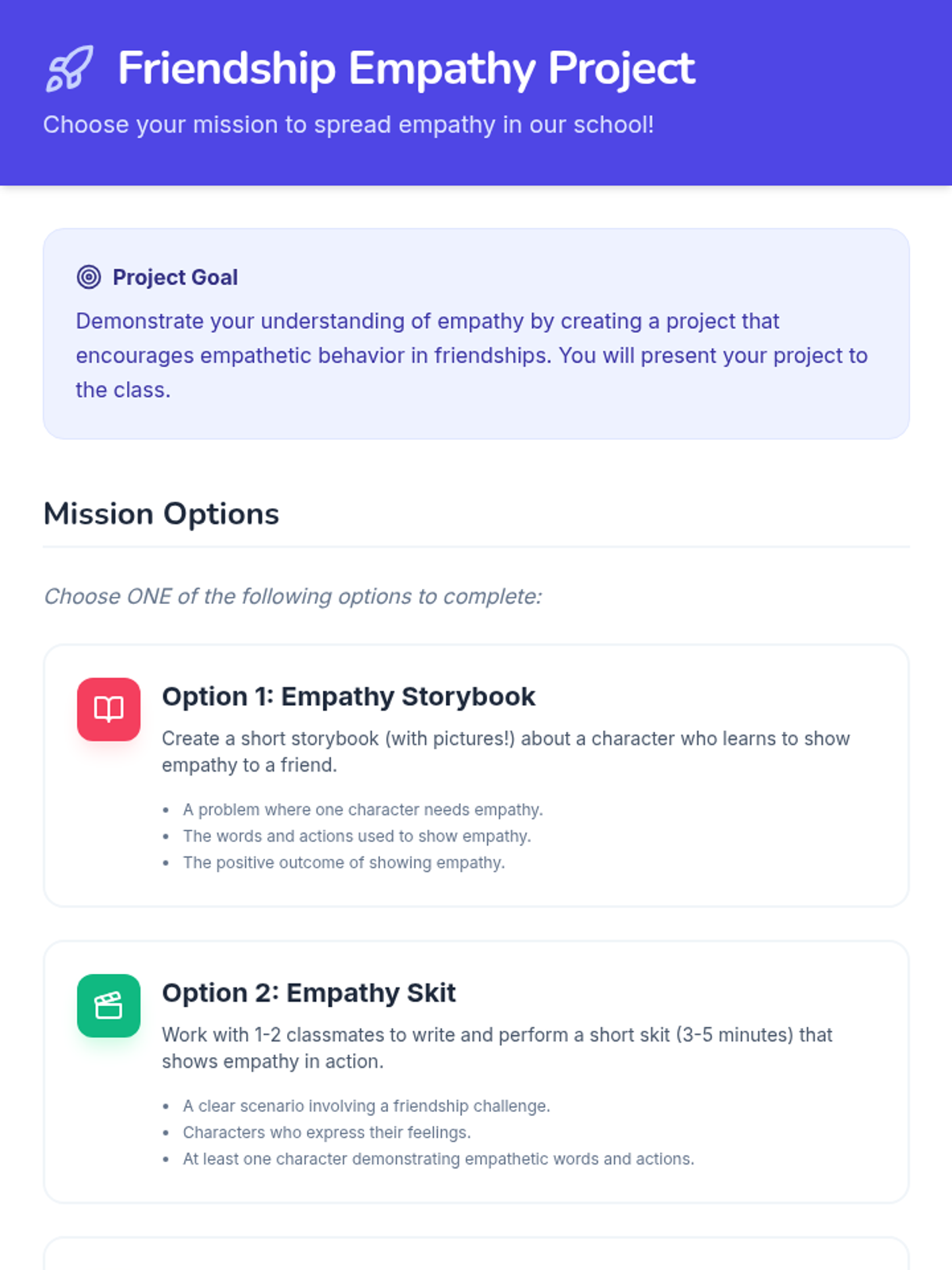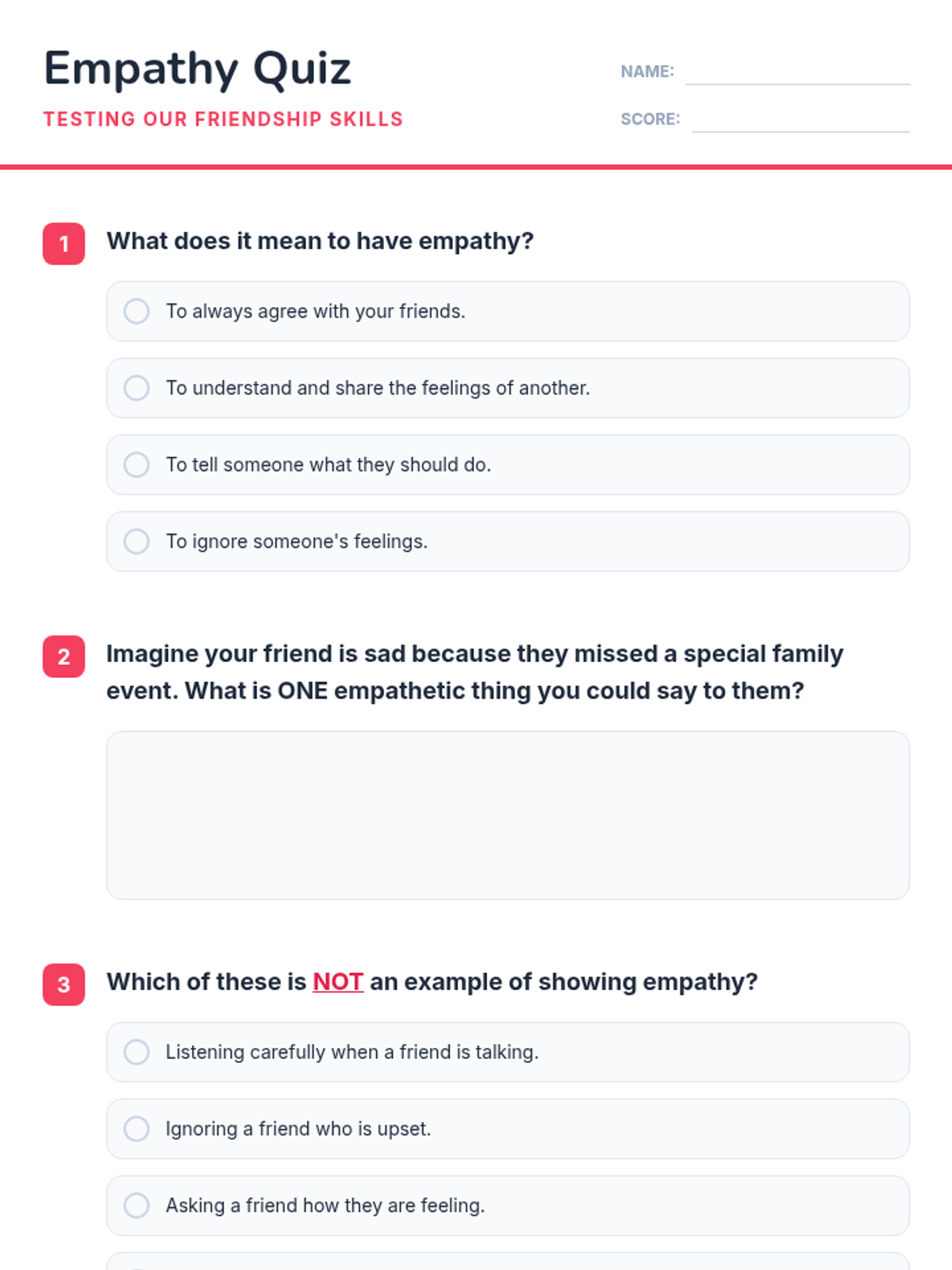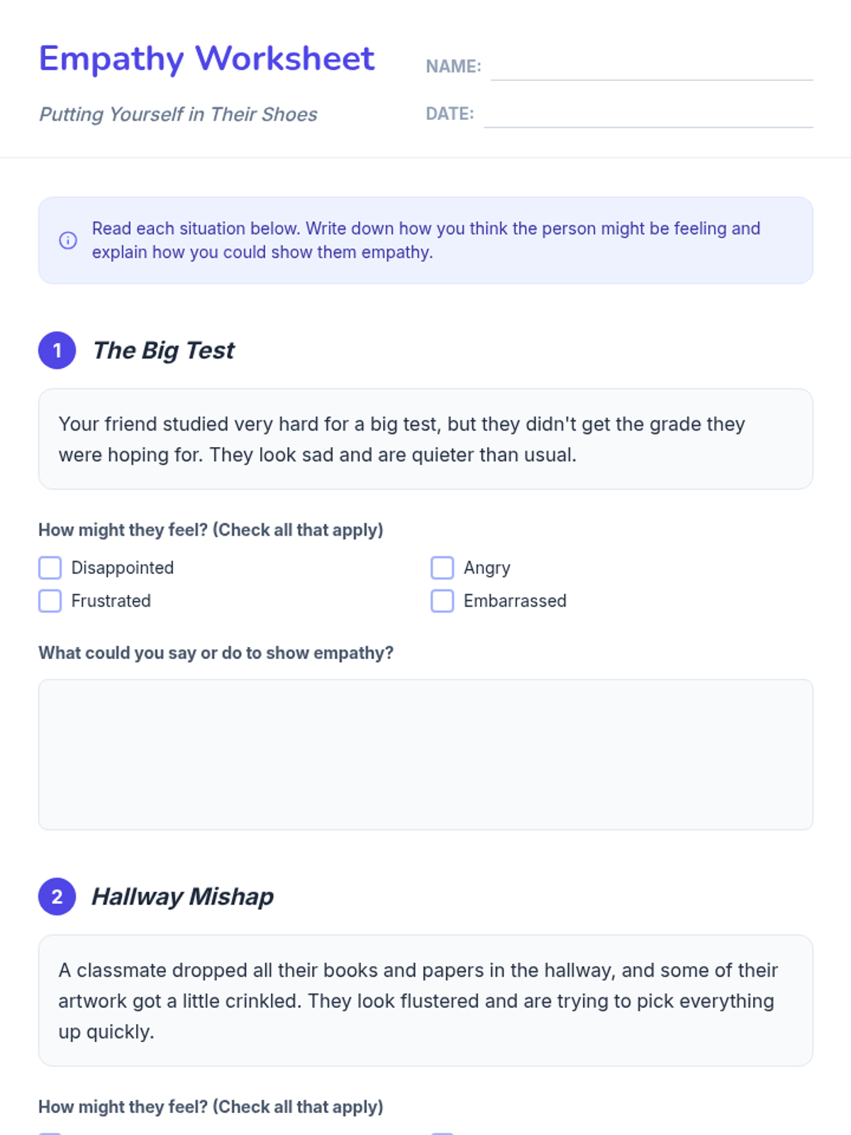 A Tier 2 social-emotional learning lesson for 3rd-6th graders focused on defining empathy, recognizing feelings in others, and practicing supportive responses in friendships.