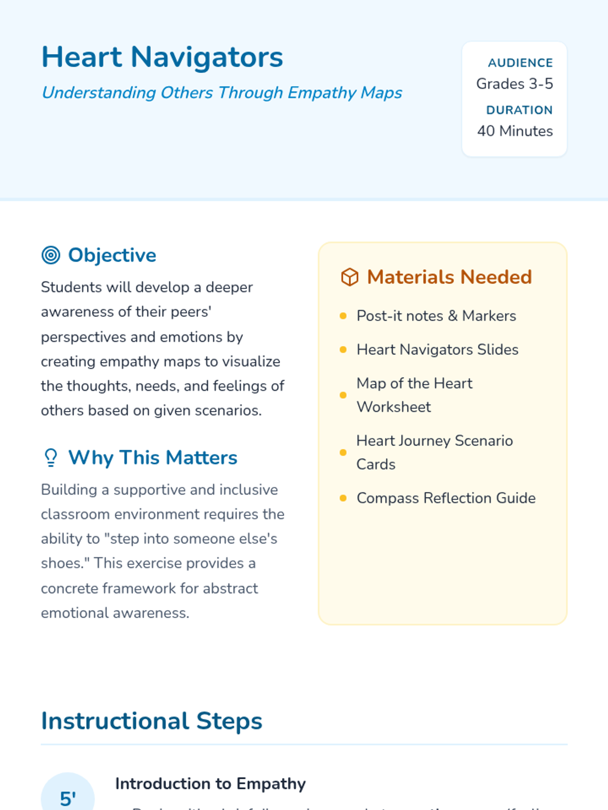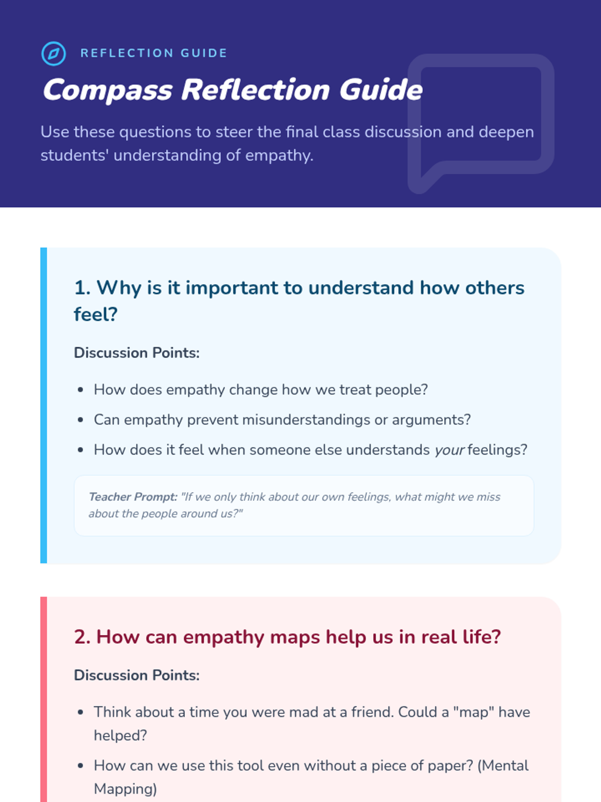 Students will create 'empathy maps' to visualize the thoughts, needs, and feelings of their classmates based on given scenarios, fostering a deeper awareness of peers' perspectives and emotions to build an inclusive classroom environment.