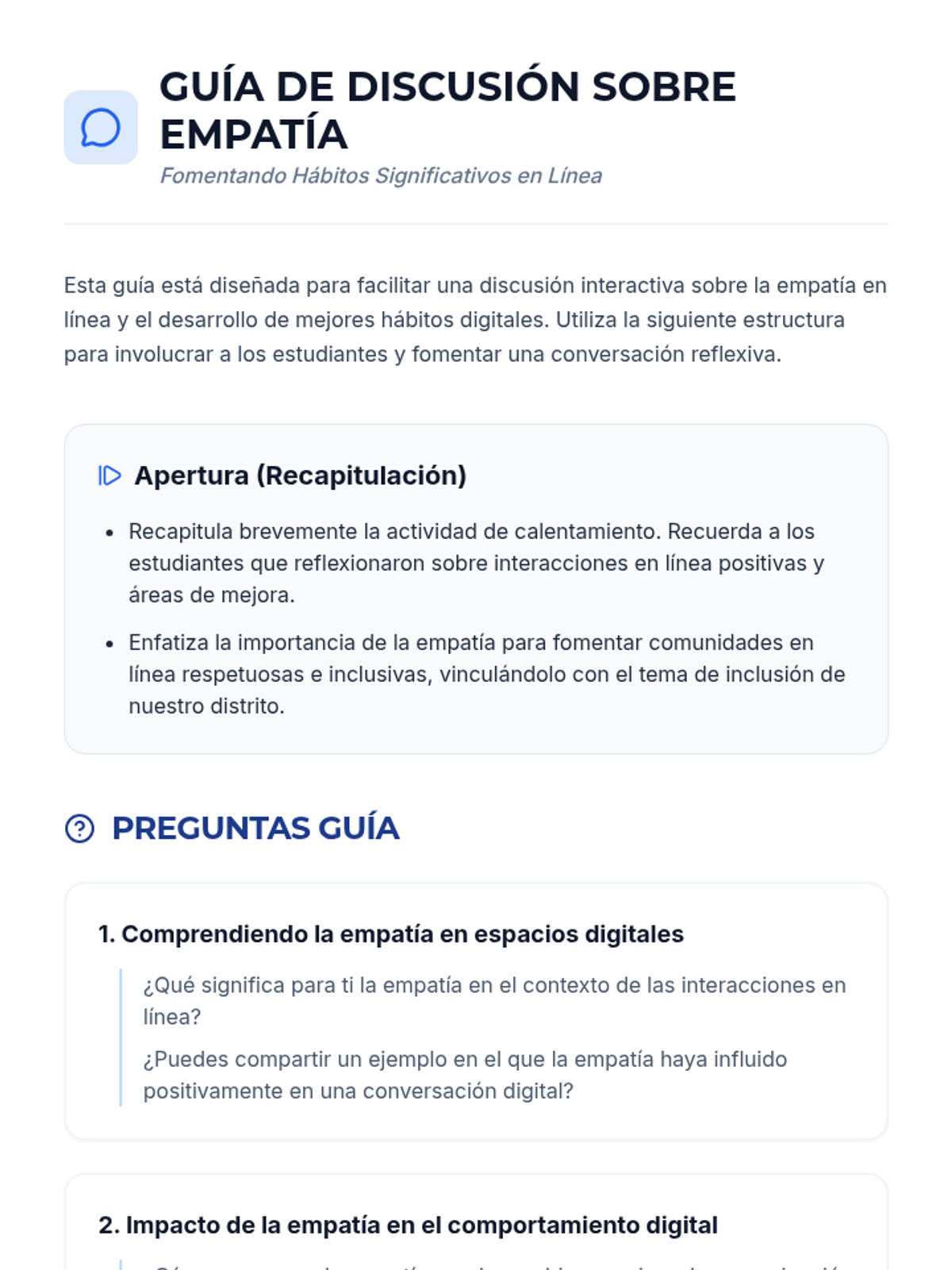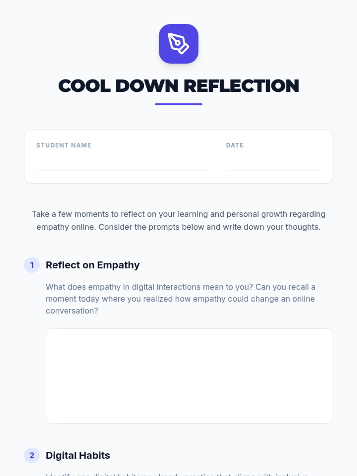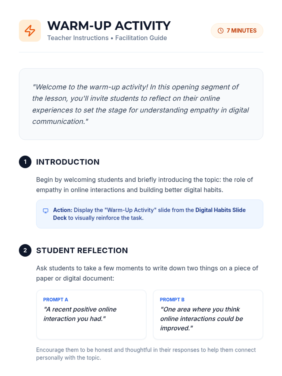A 35-minute lesson for 10th grade advisory focusing on fostering empathy in online interactions and developing better digital habits to promote inclusion.