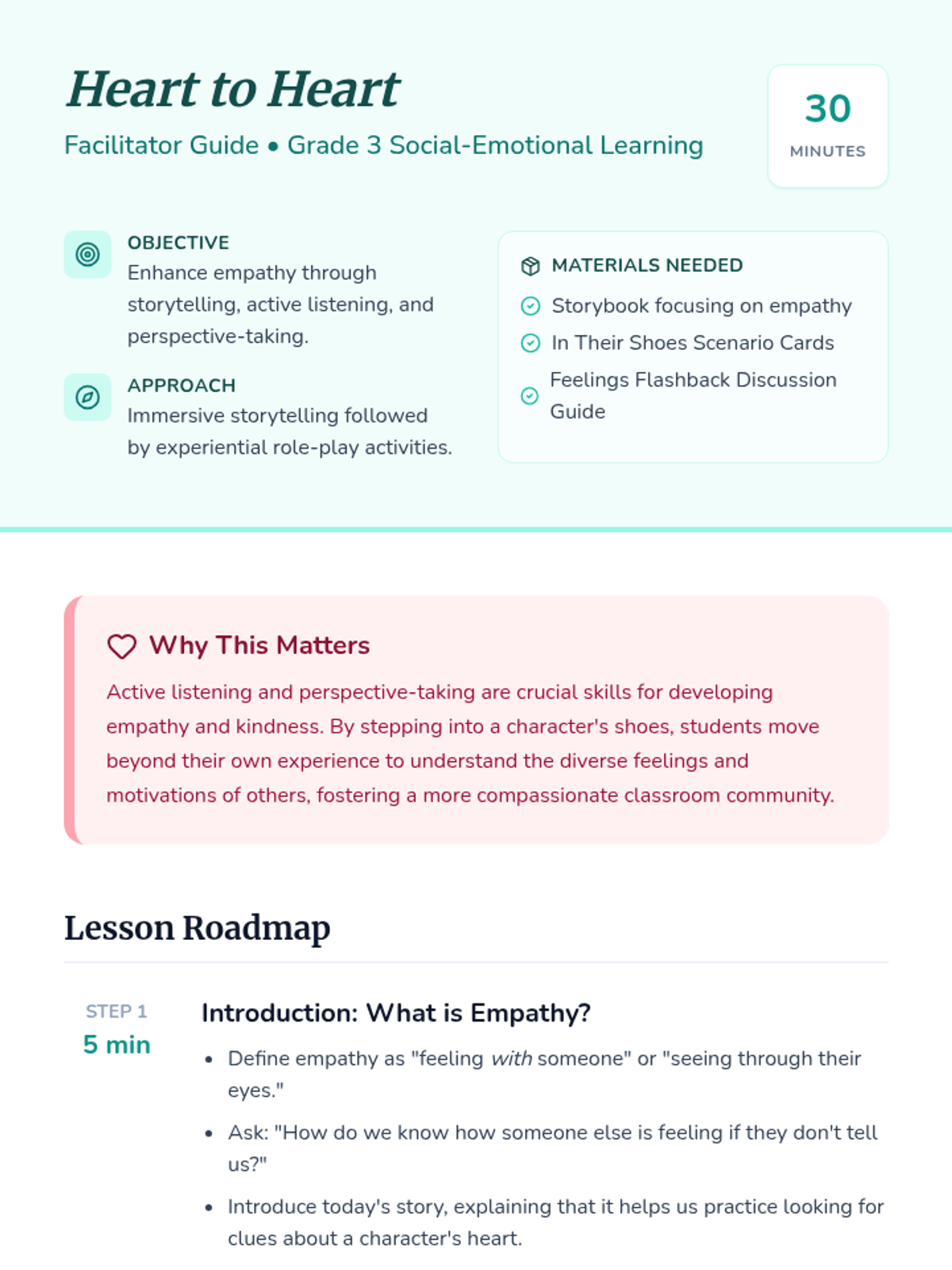 A Grade 3 lesson that uses storytelling and role-playing to help students develop active listening skills and the ability to see the world through others' eyes.