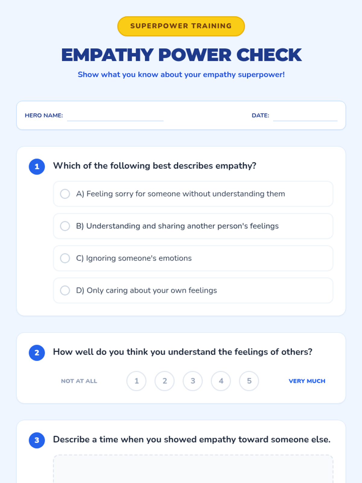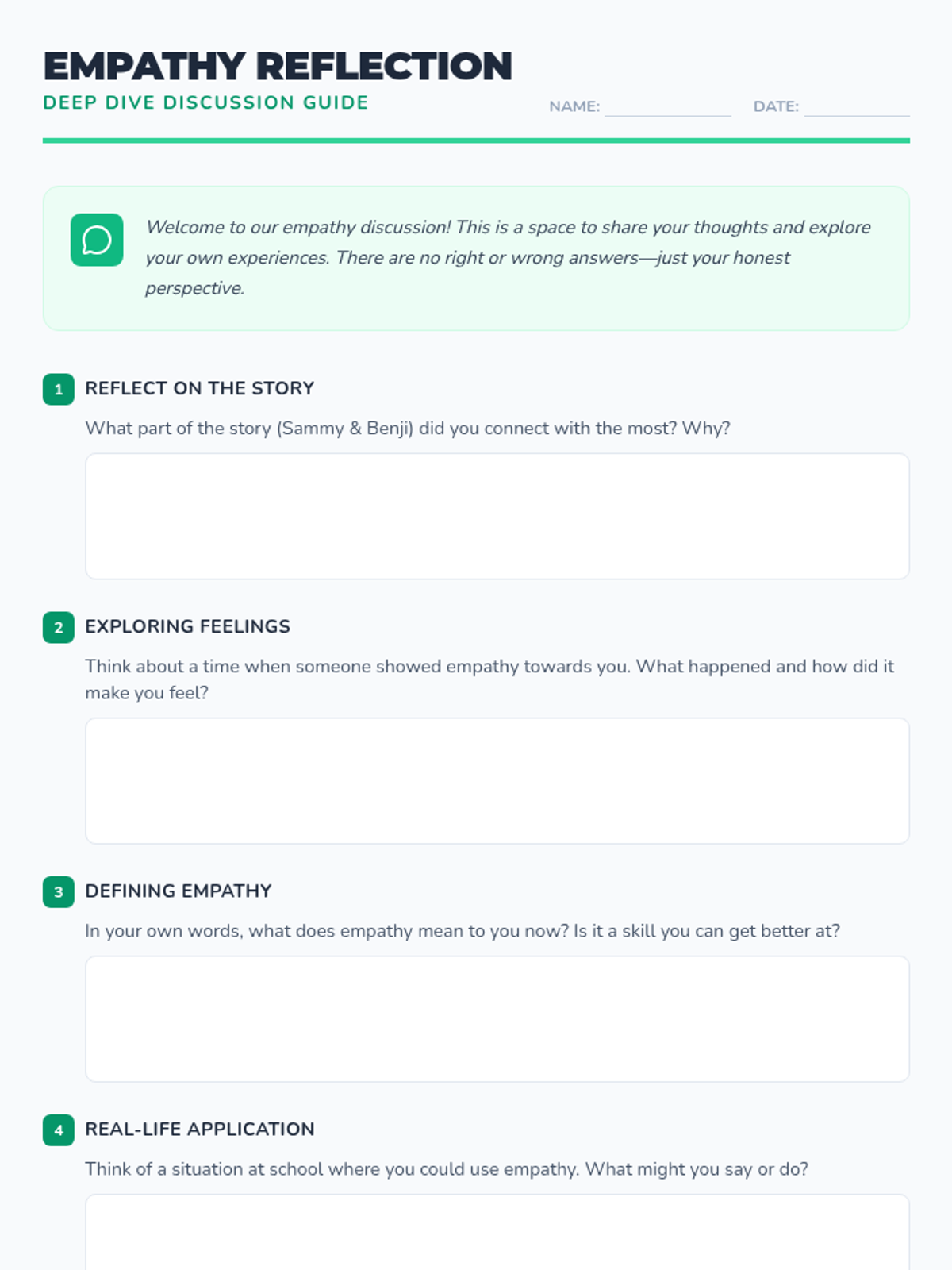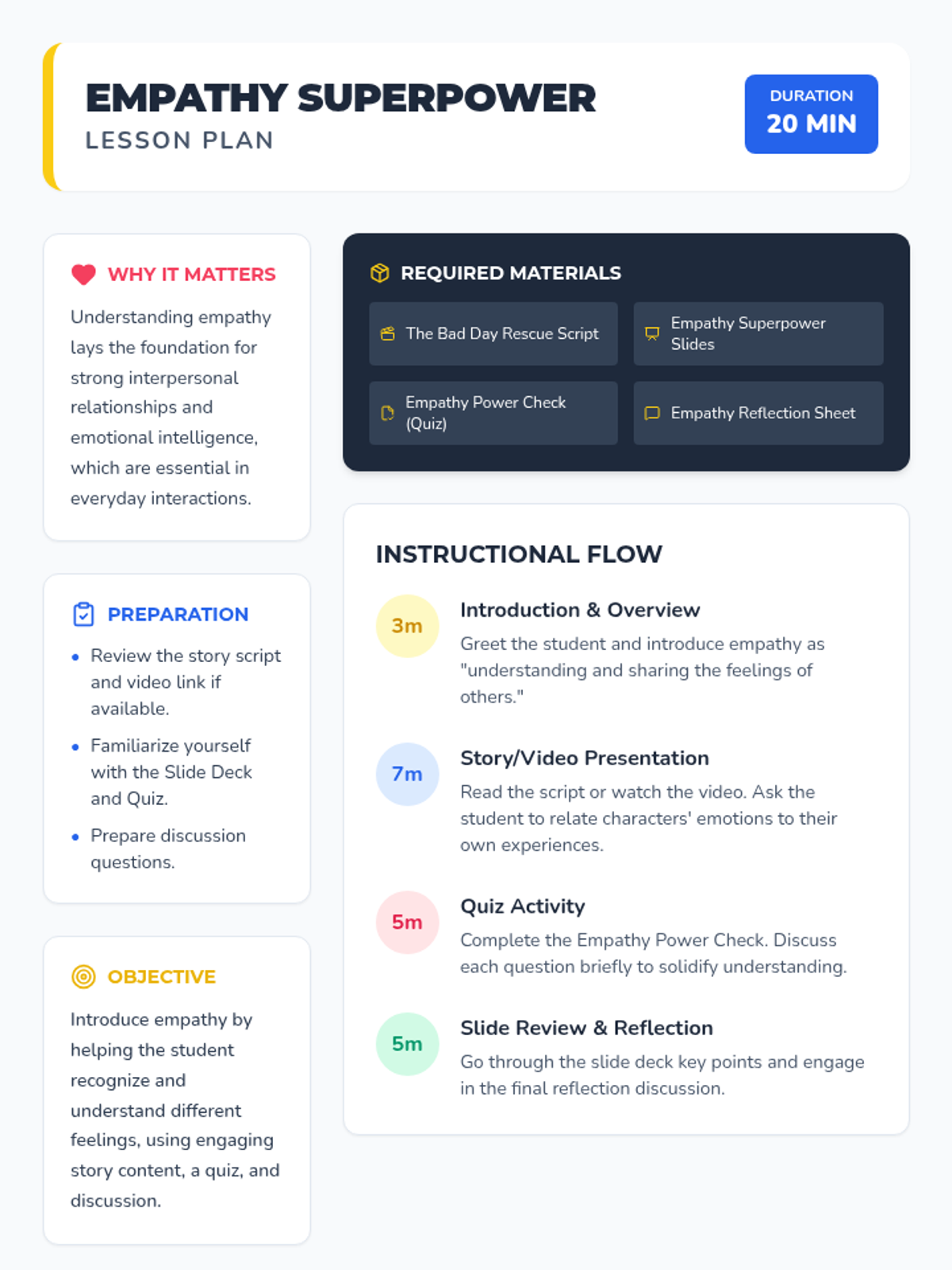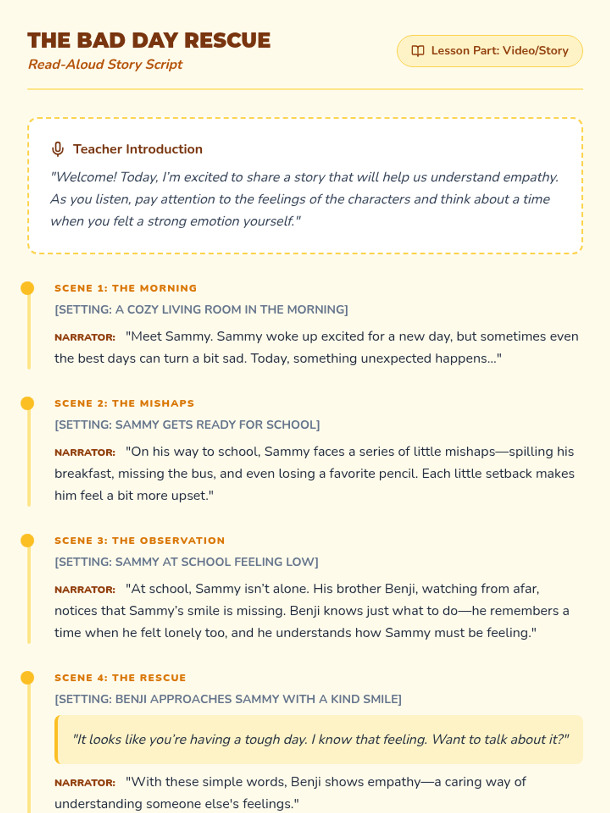 A 20-minute Tier 3 individual lesson designed for 4th graders to develop empathy by recognizing and understanding the feelings of others through stories, slides, and reflection.