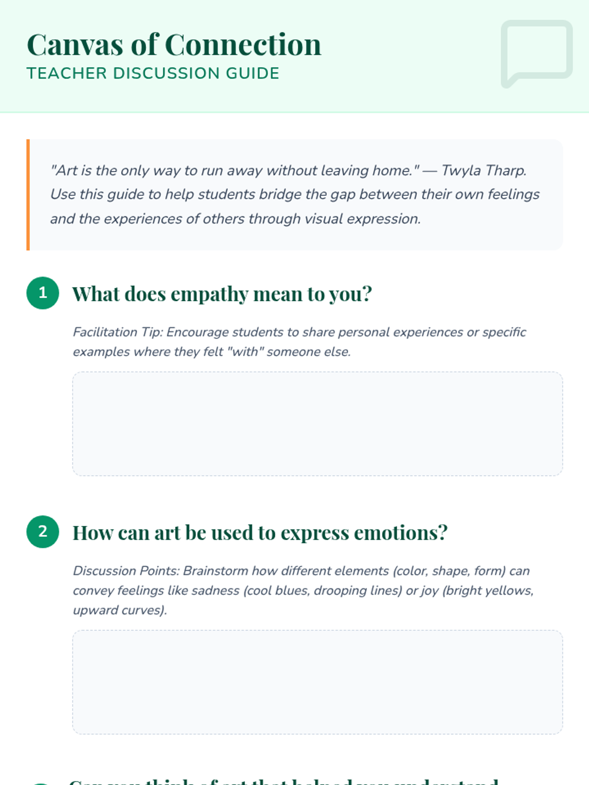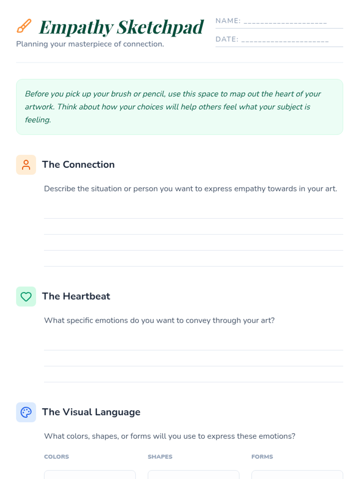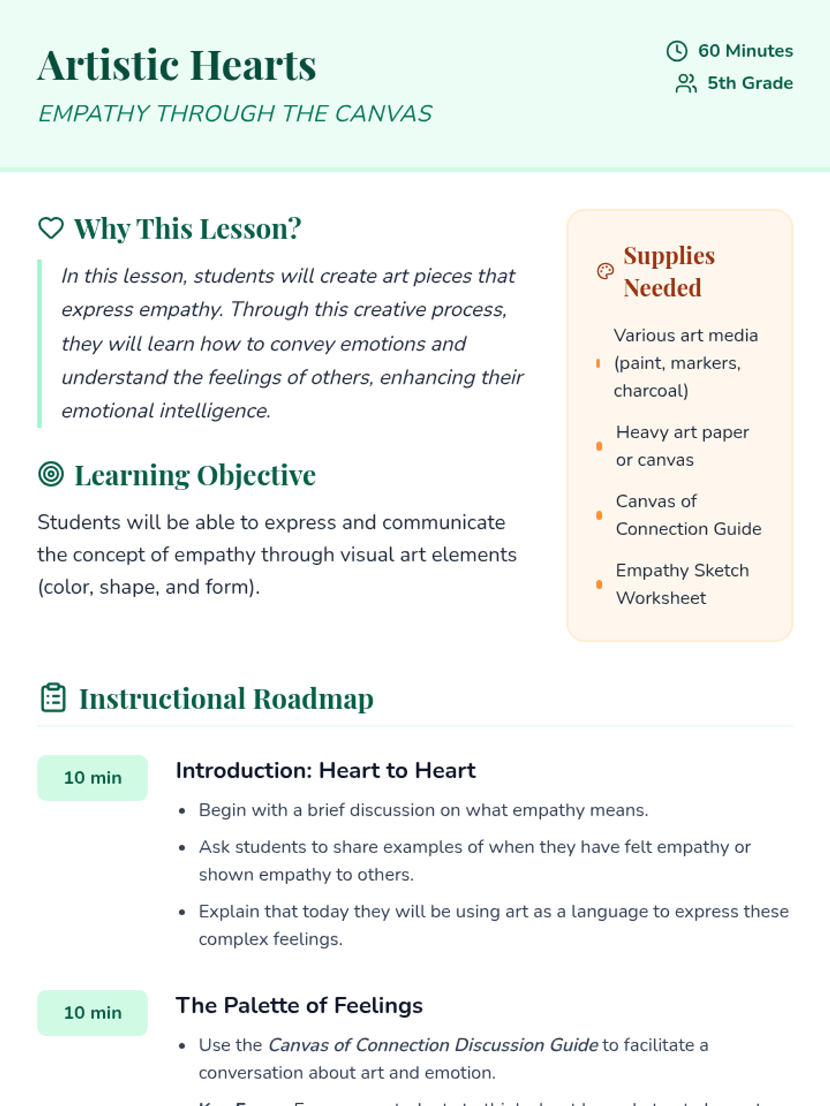 Students explore and express empathy through the creative process of art, learning to convey emotions and understand the perspectives of others using visual elements.