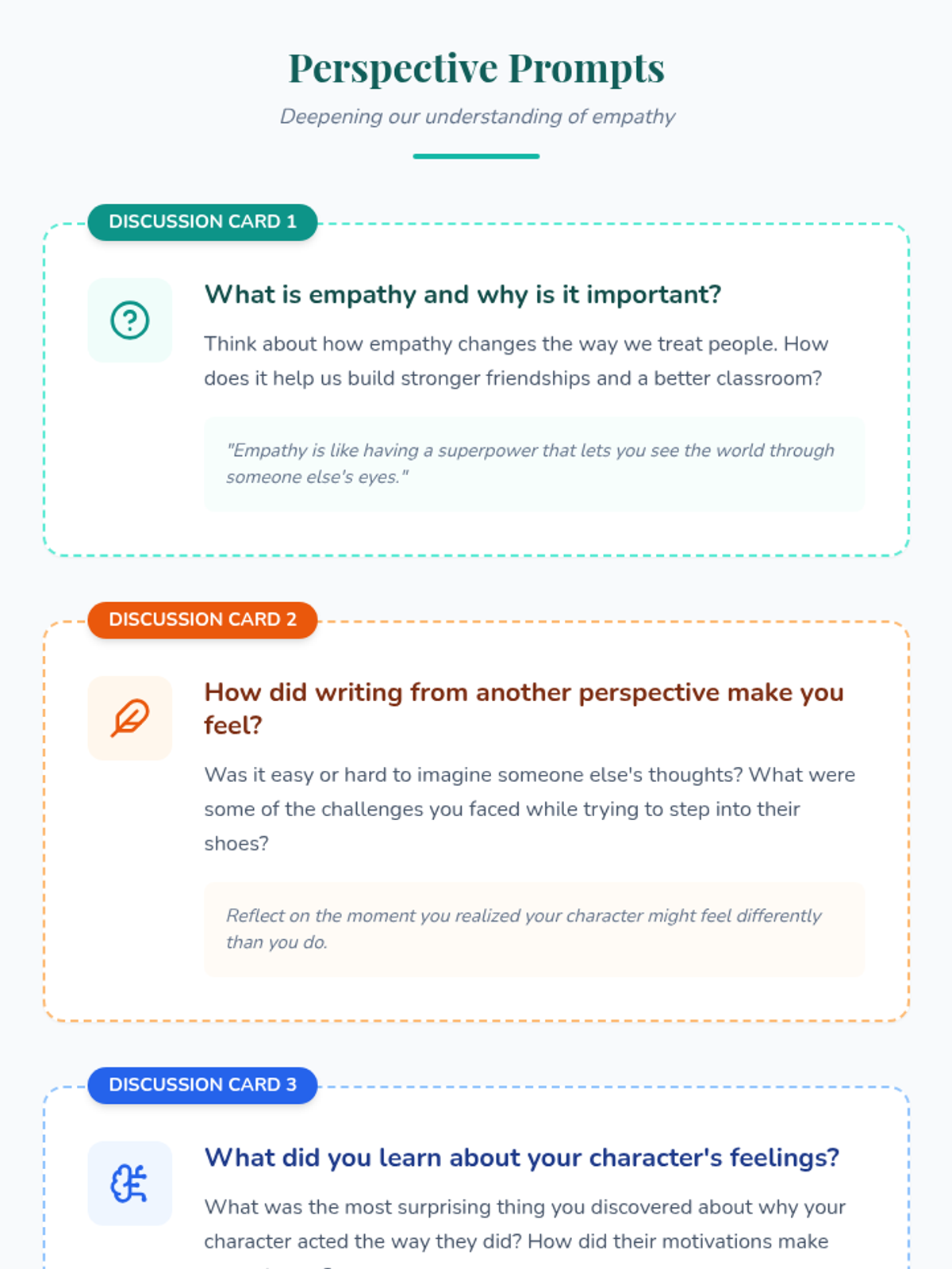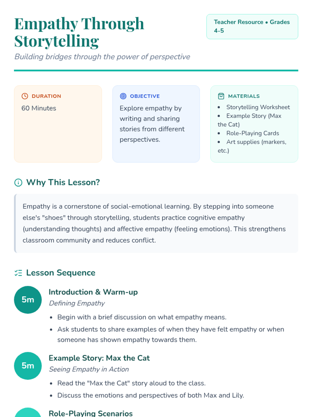 A 60-minute lesson where students develop social-emotional skills by writing and sharing stories from different perspectives to build empathy and community.