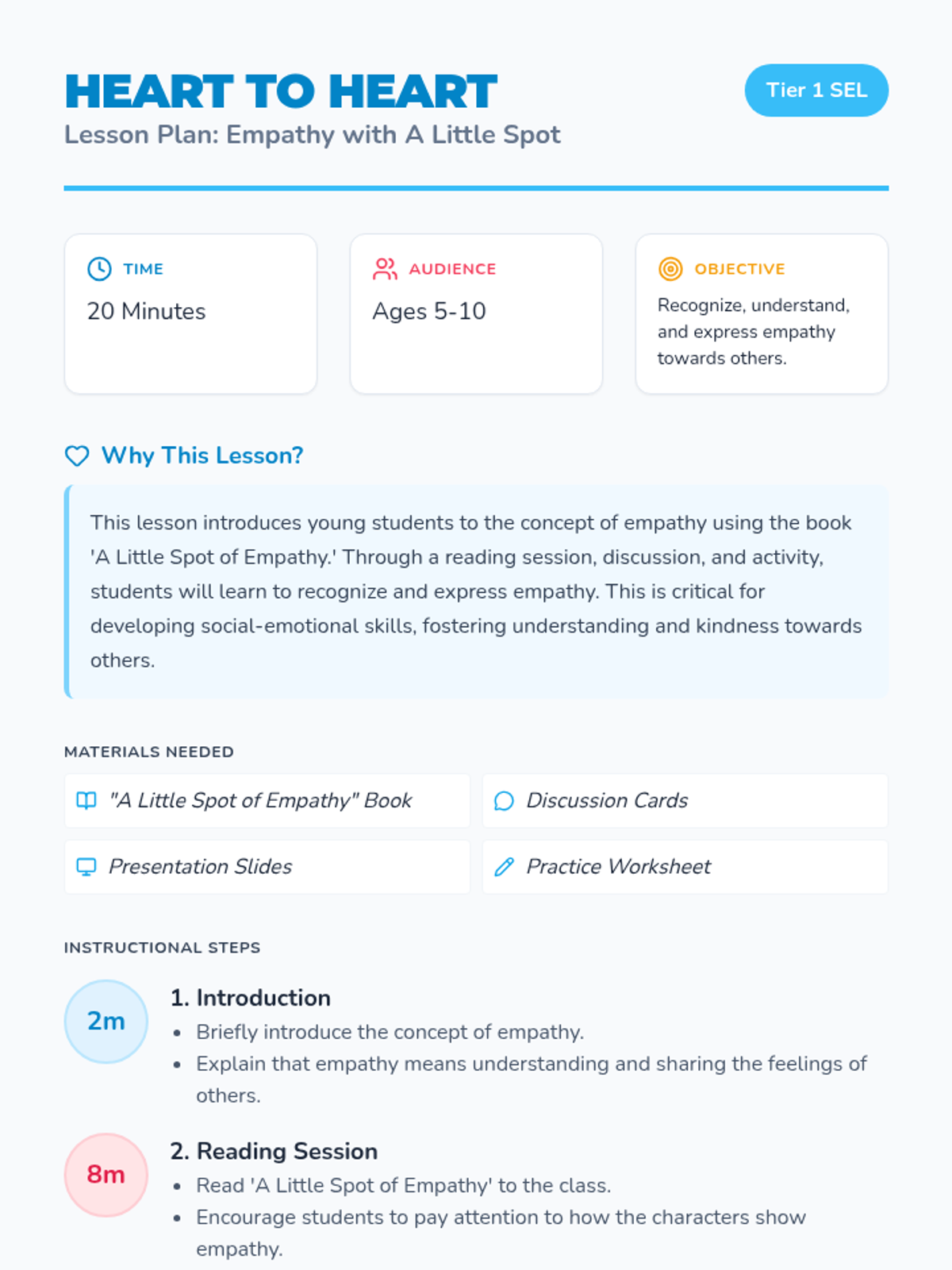 An introductory social-emotional learning lesson for young students based on 'A Little Spot of Empathy' to help them recognize and practice empathy.