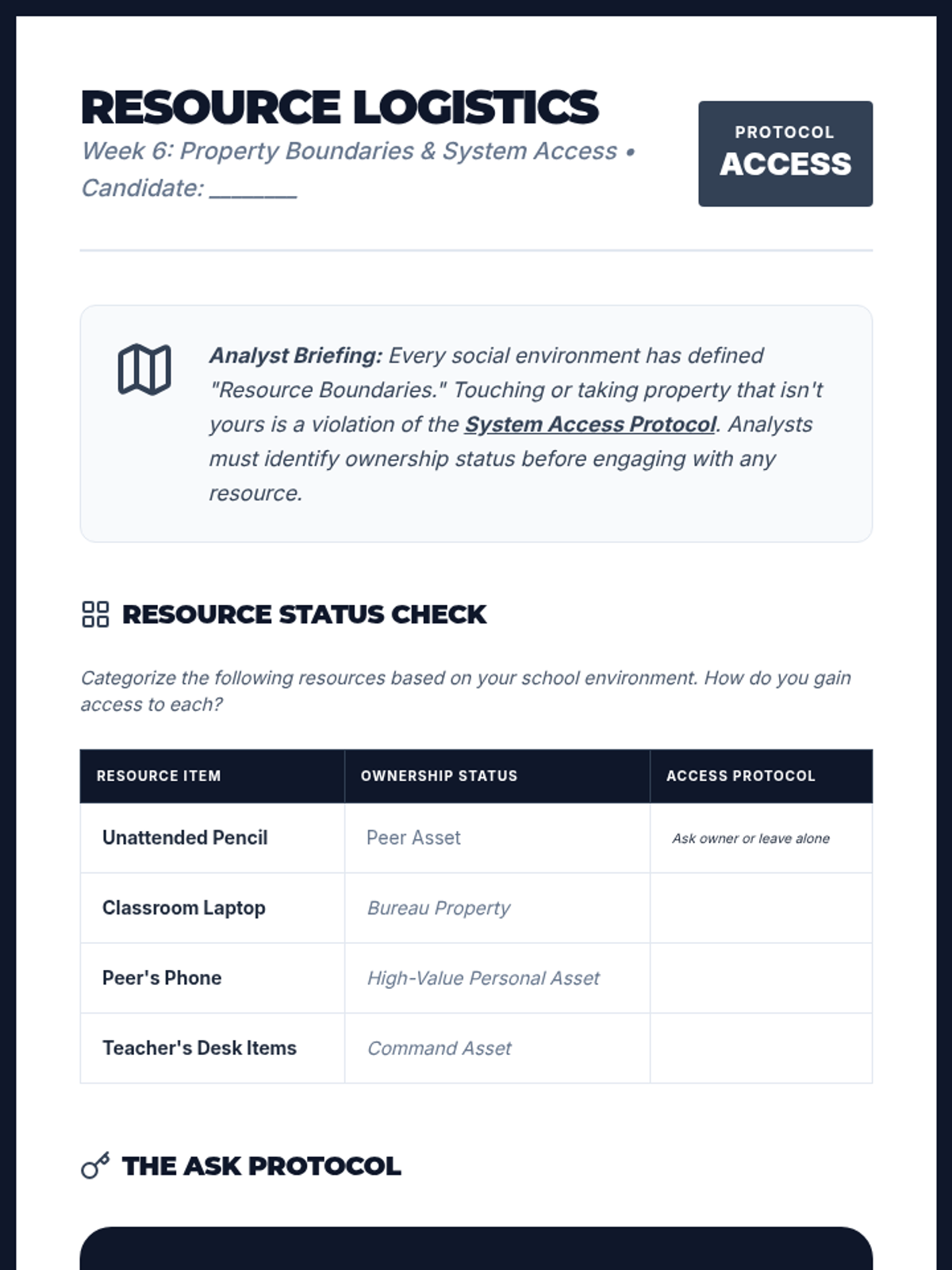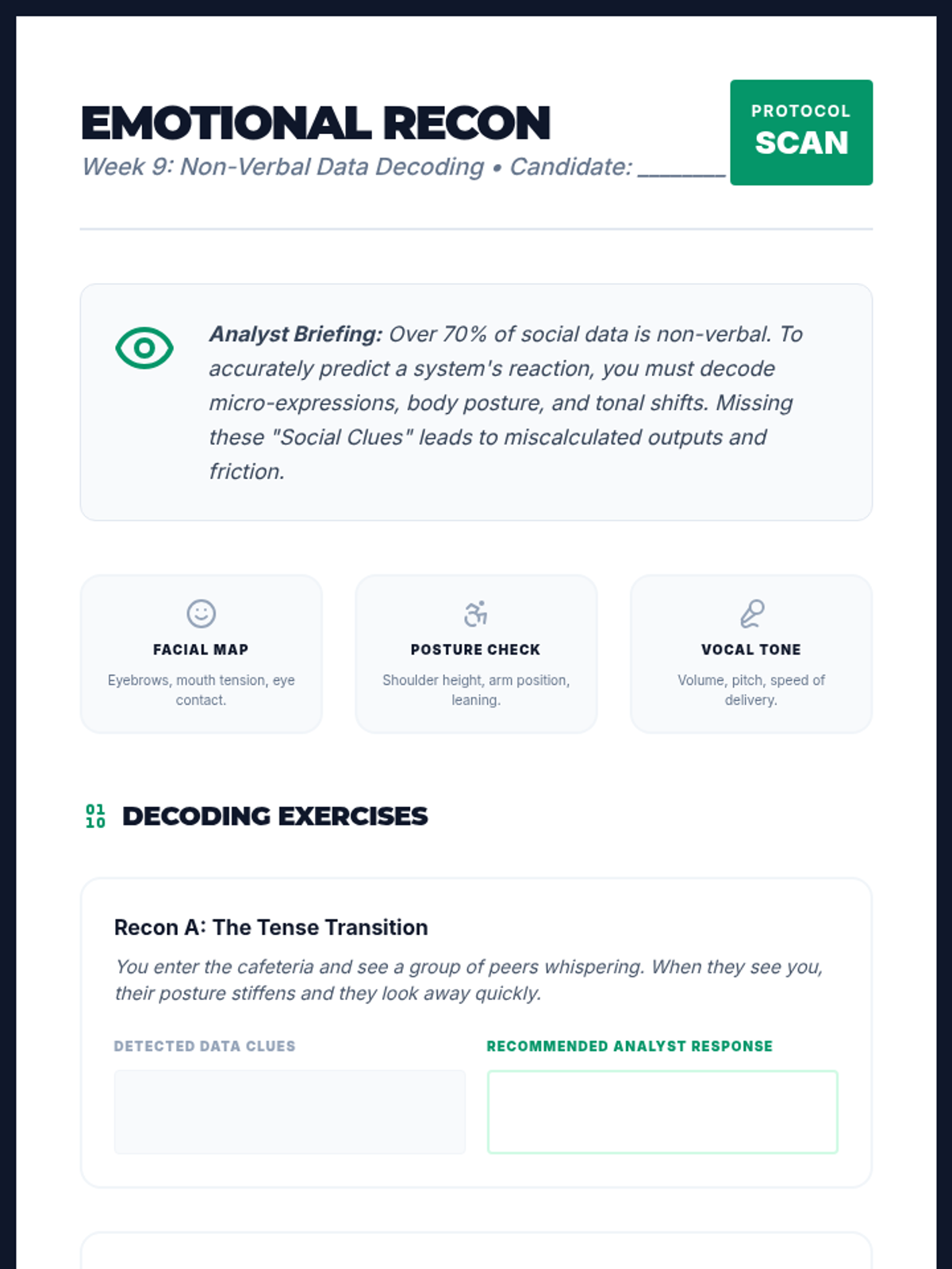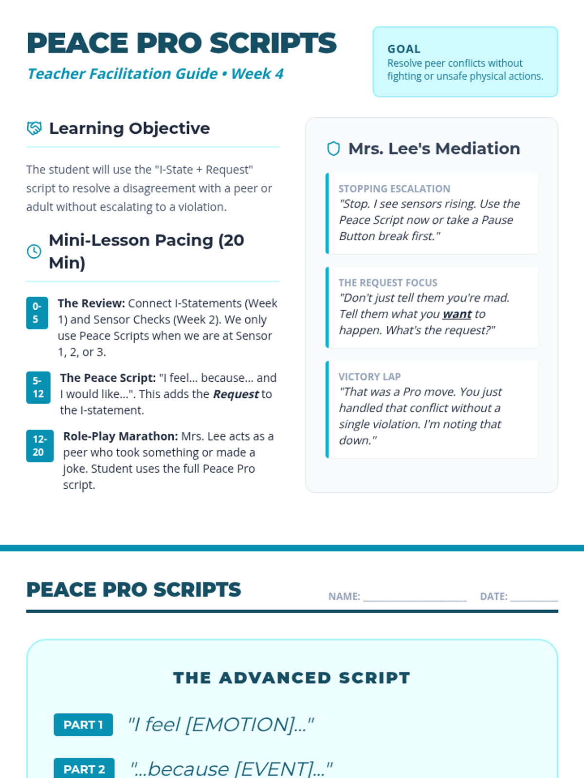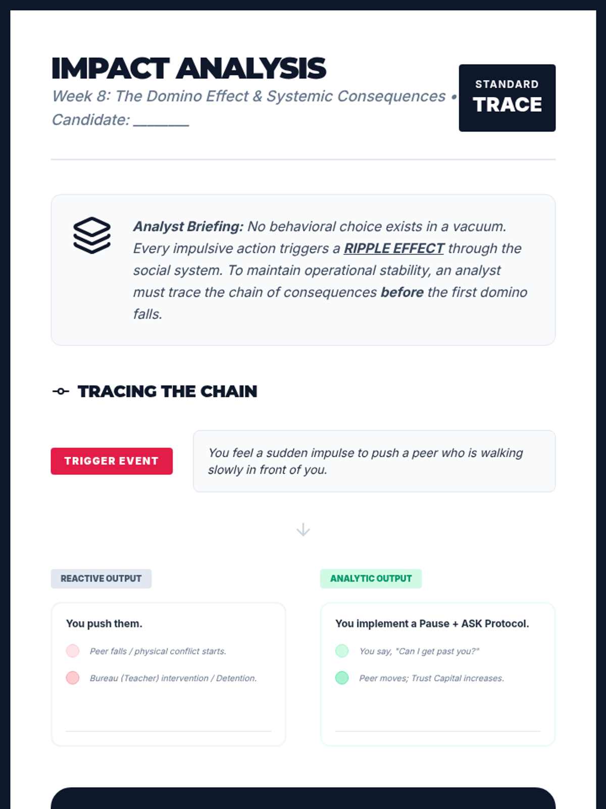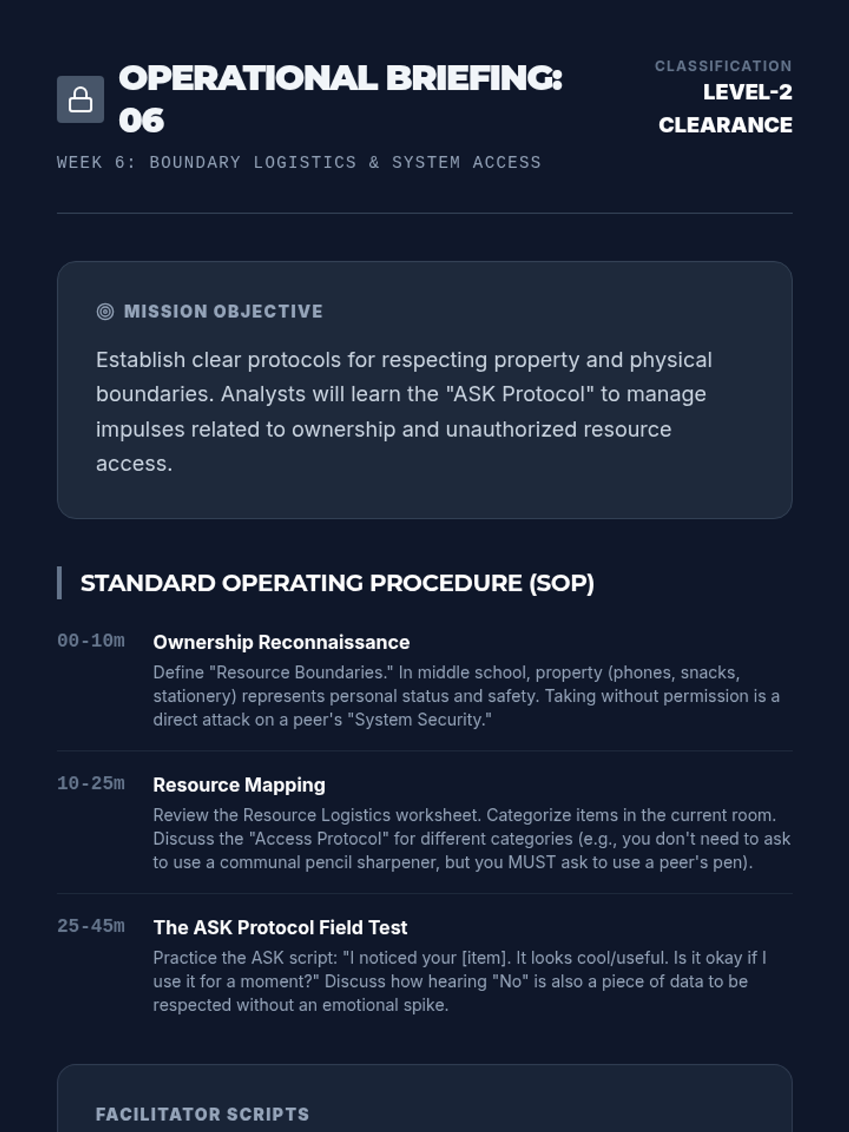 A social-emotional learning lesson designed for students with trauma backgrounds and impulse control challenges. It focuses on 'Scene Scanning'—assuming positive intent and dissecting social interactions through a detective-style lens to improve perspective-taking and reduce reactivity.