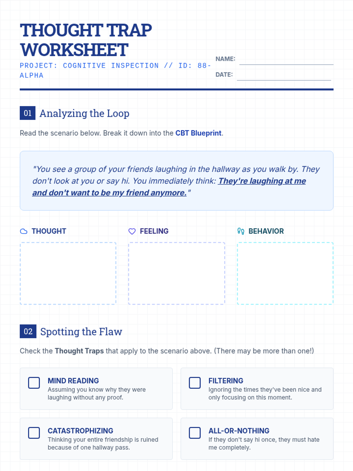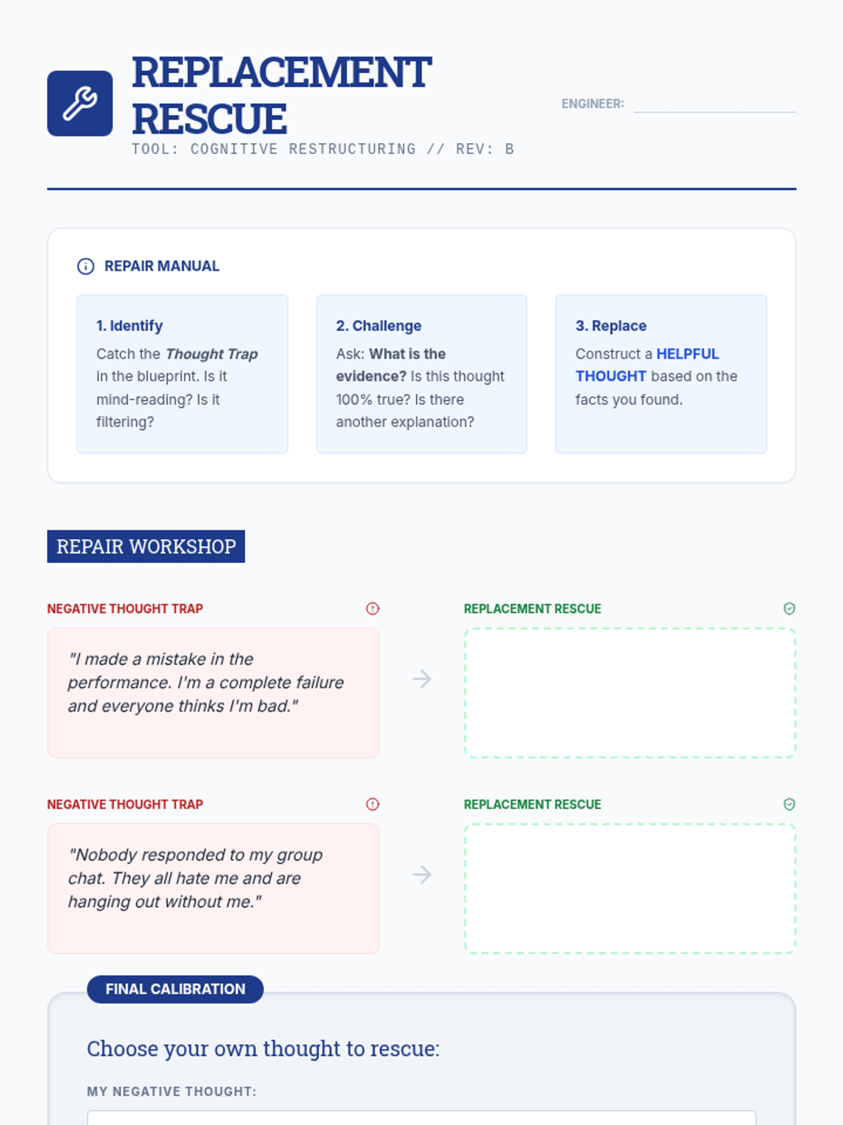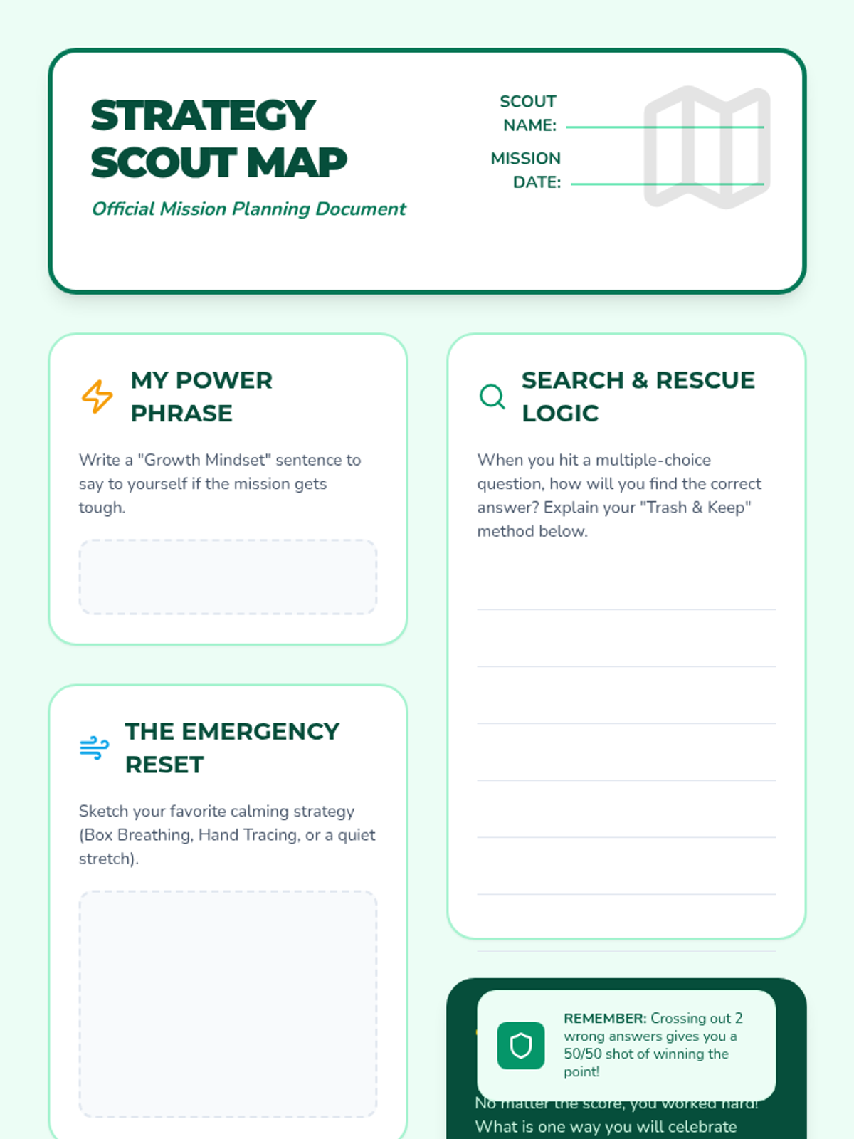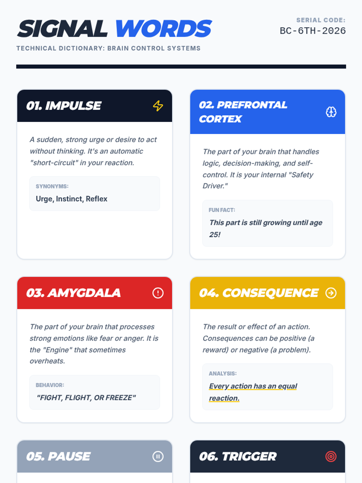 A social-emotional lesson focused on identifying internal signals of anxiety and selecting appropriate self-regulation tools. Students will learn to recognize 'glitches' in their system and deploy 'countermeasures' to stay on track.