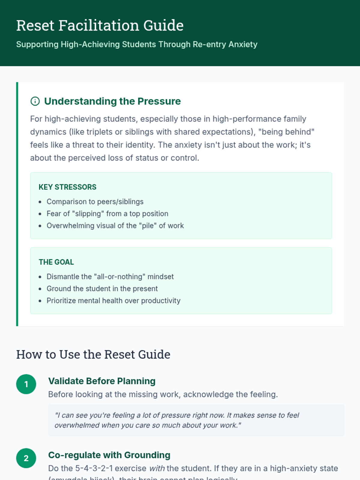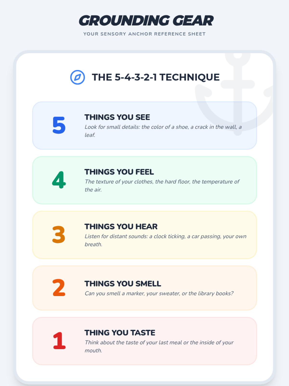 A collection of resources designed to help high-achieving students manage academic anxiety and re-entry stress through mindfulness and grounding.