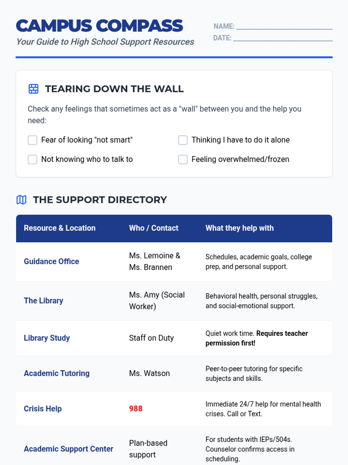 A lesson designed to help middle school students navigate the transition to high school by identifying and accessing academic, mental, and behavioral health supports.