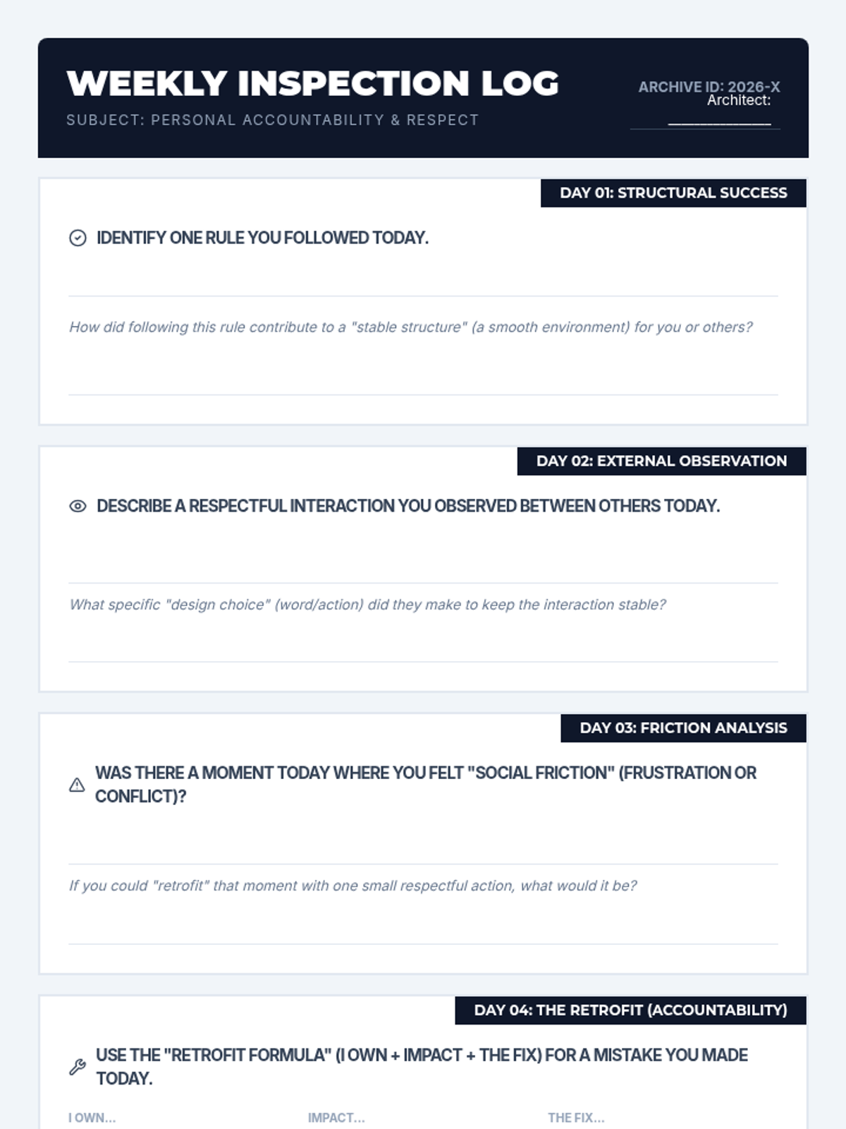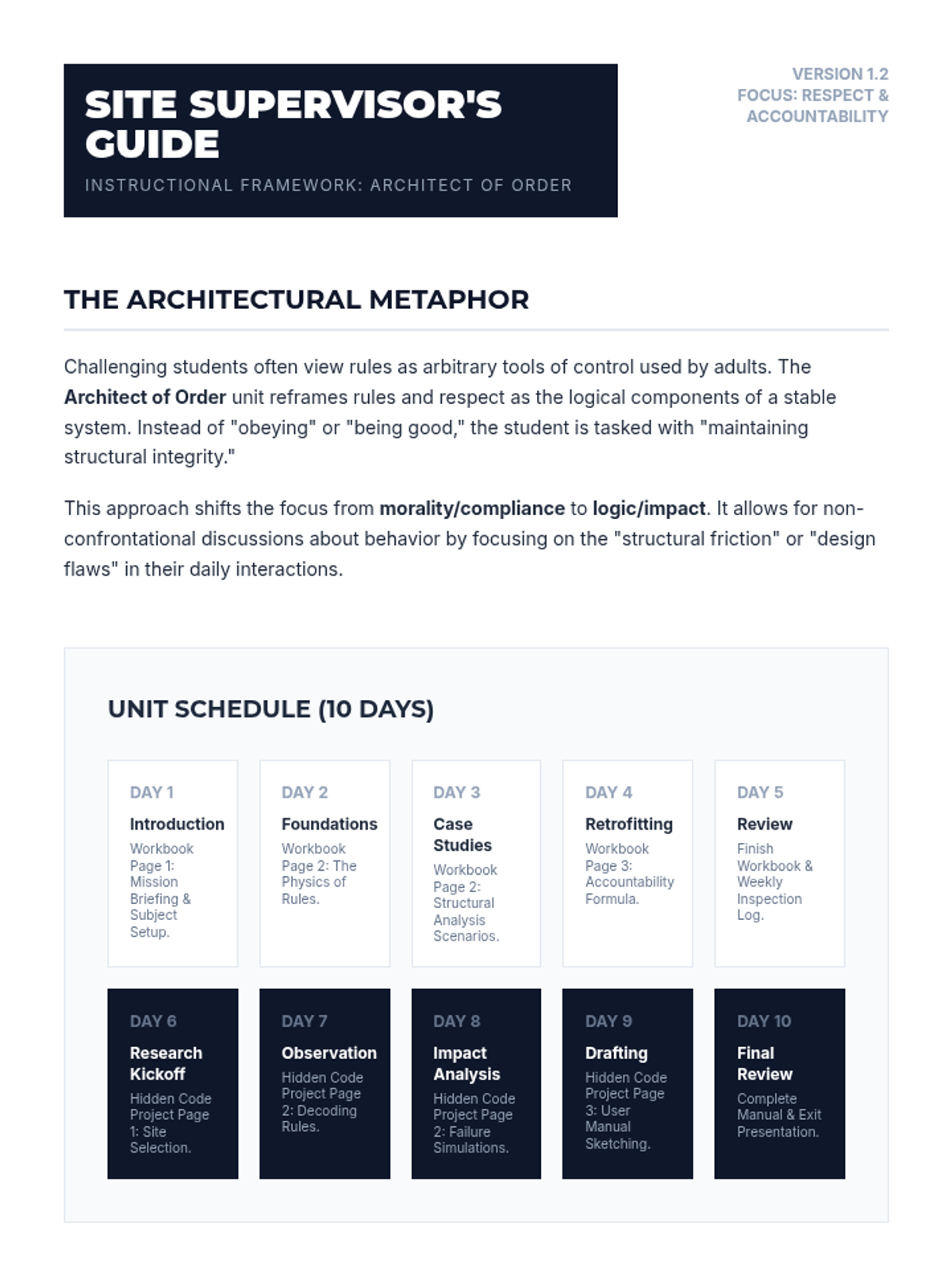 A comprehensive independent study unit for students to explore the logical foundations of respect, rules, and personal accountability through an architectural lens.