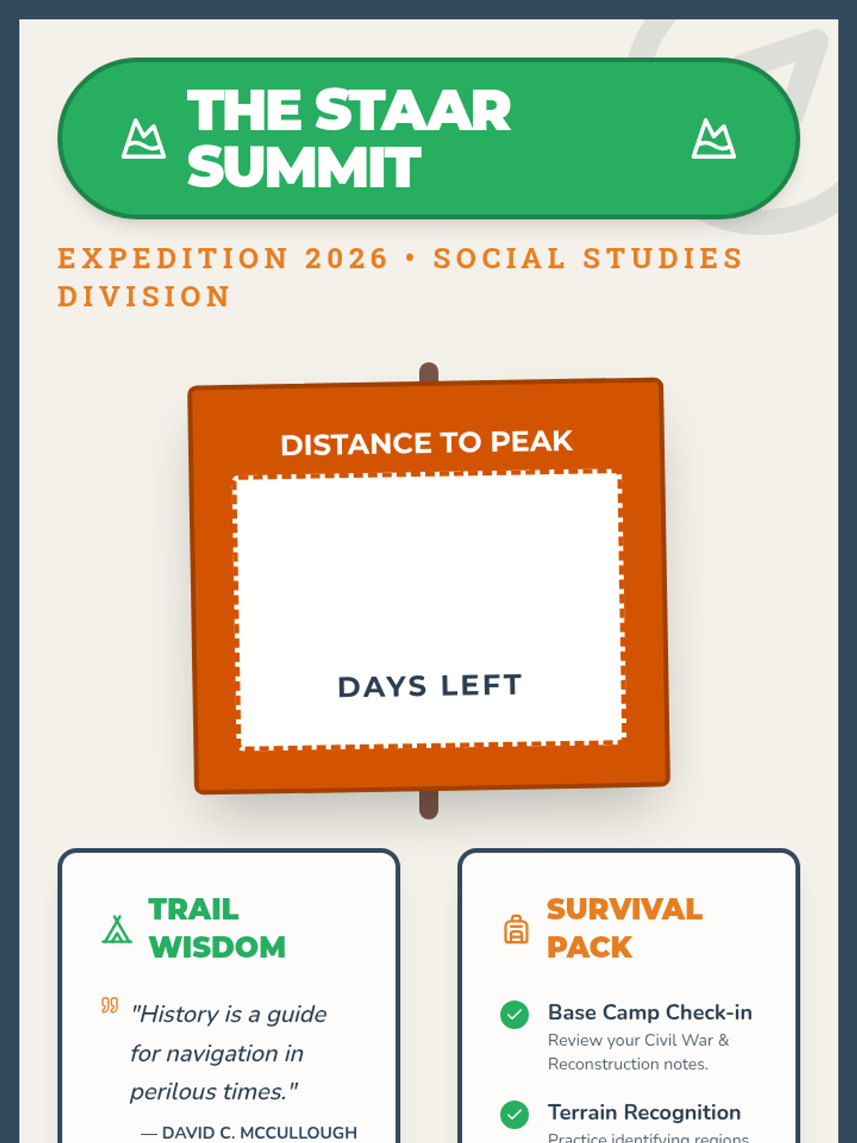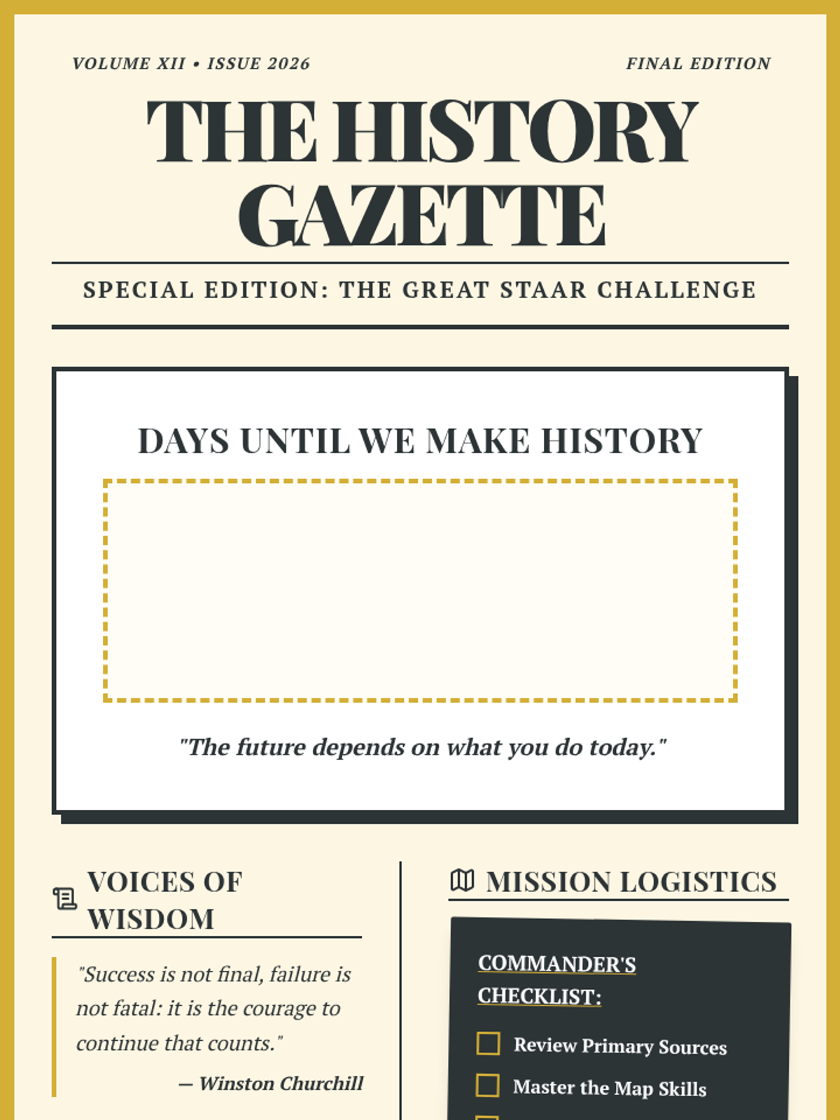 A collection of creative and motivational countdown posters designed for Social Studies classrooms preparing for the STAAR test.